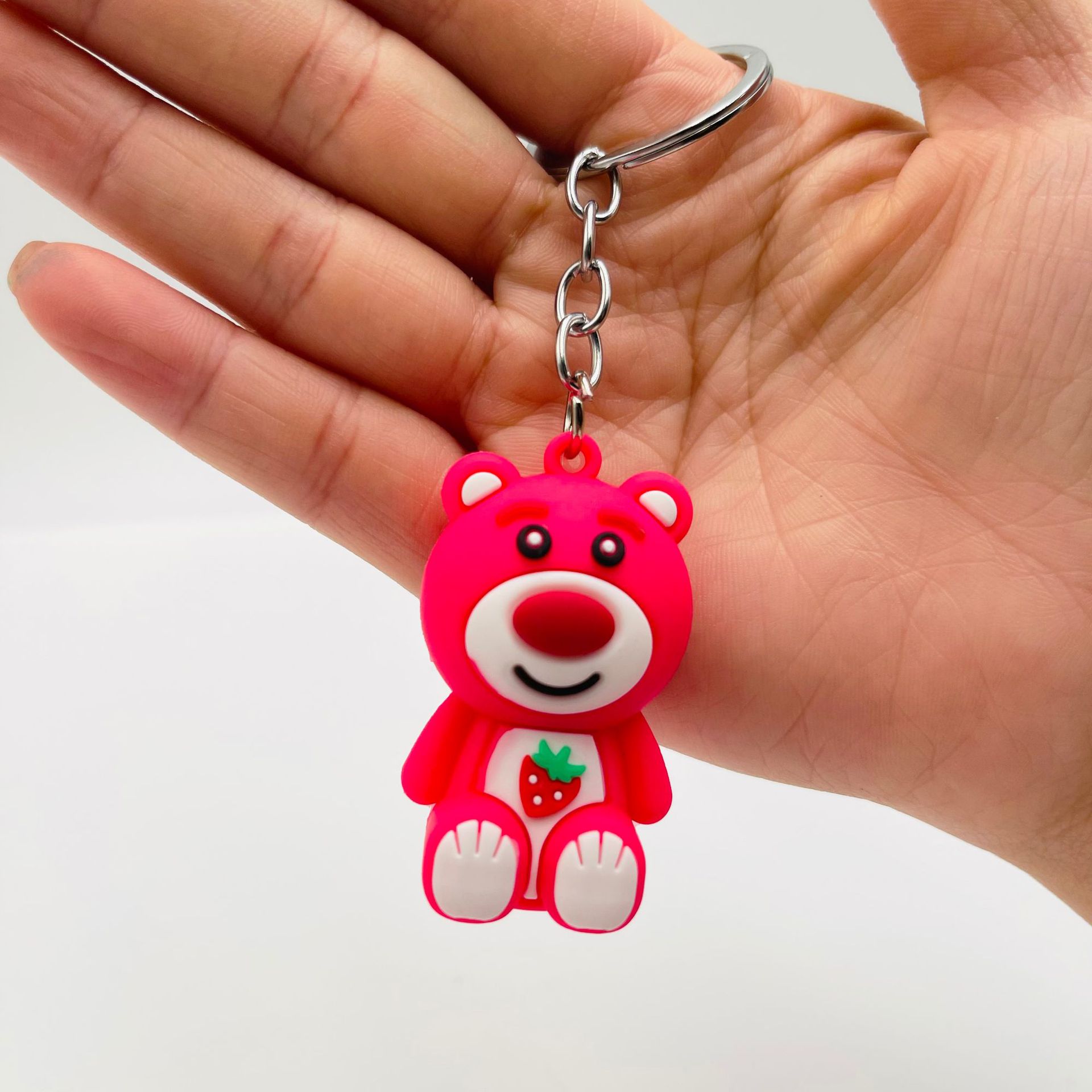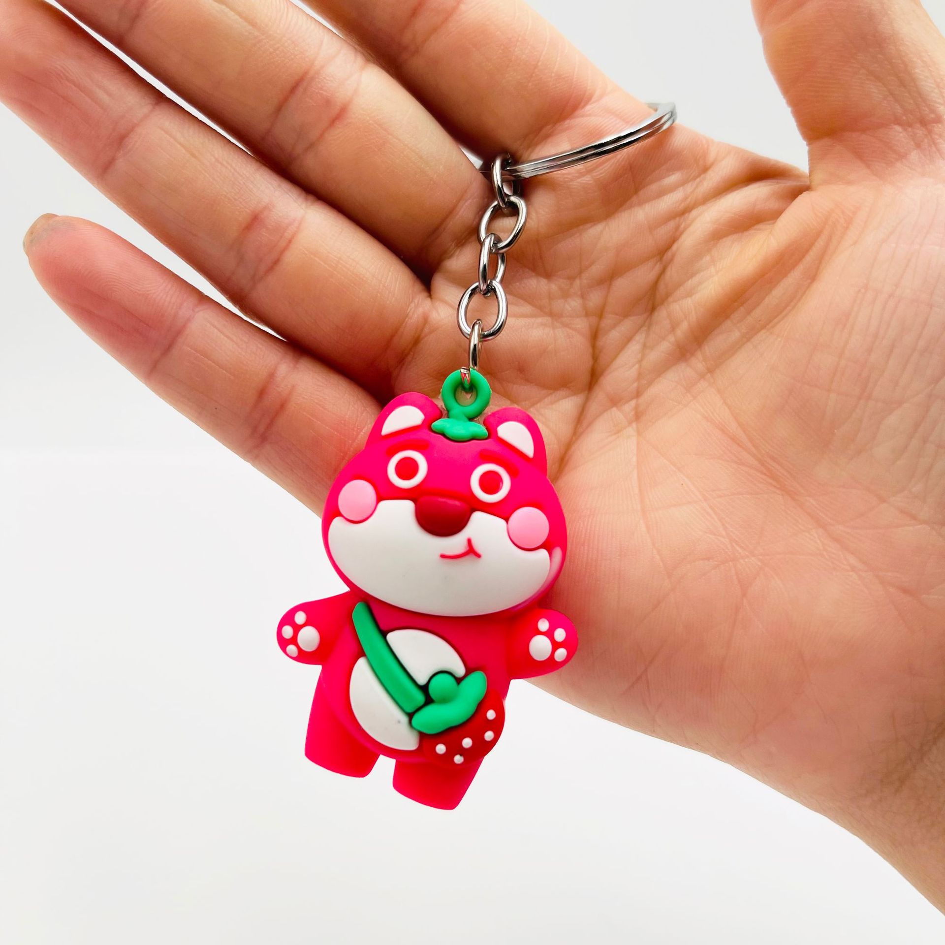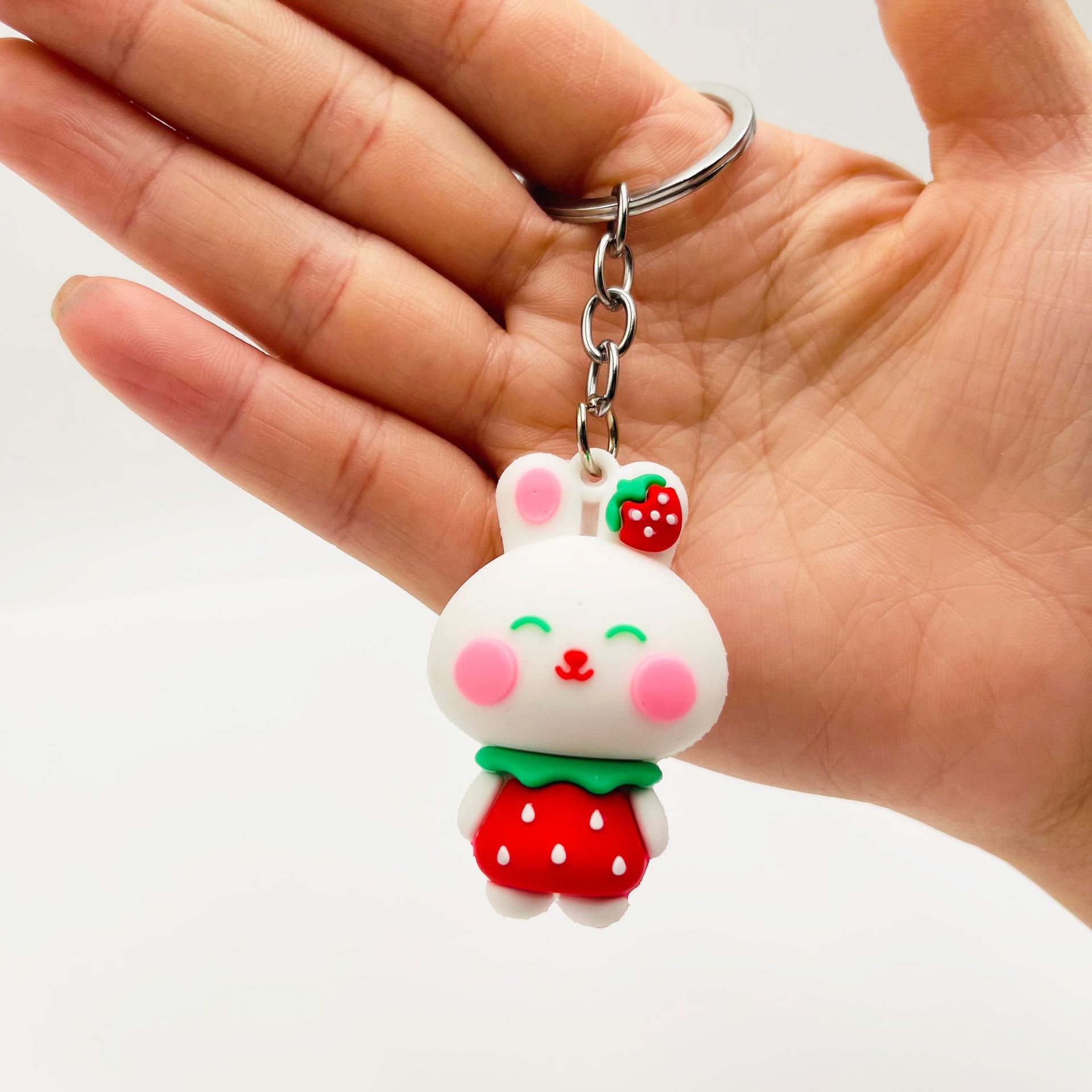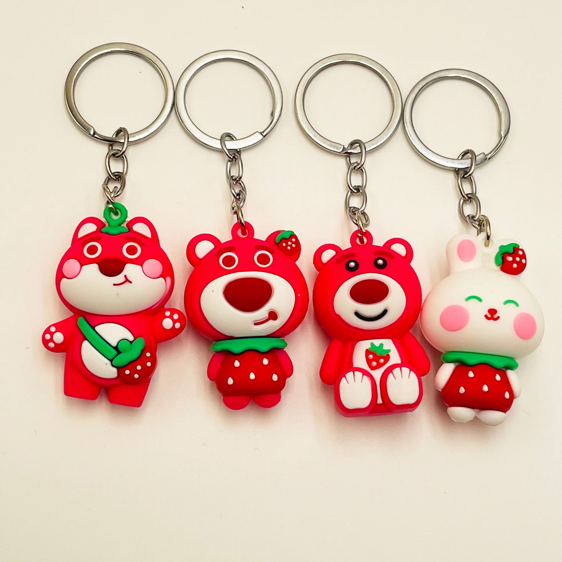 可爱草莓熊钥匙扣挂件立体软胶水果熊草莓兔动物公仔包包挂件礼品