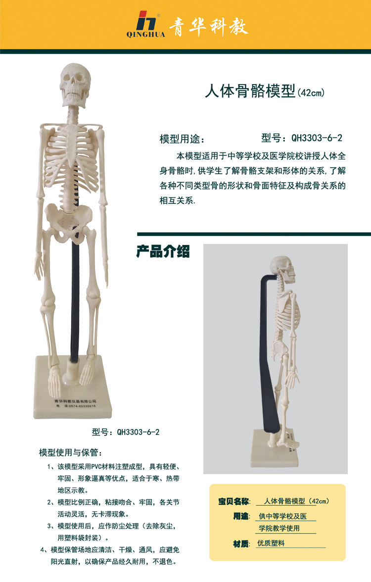 仿真人体骨骼教学模型 42CM可拆卸医学生物 骷髅全身骨架脊椎柱