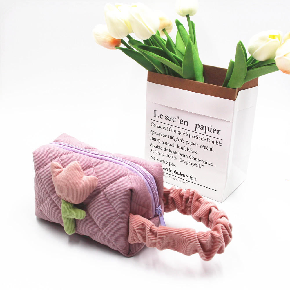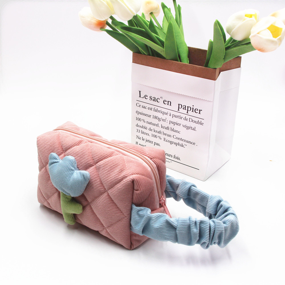 新款灯芯绒大容量ins可爱花朵化妆包女便携洗漱收纳包化妆手提袋