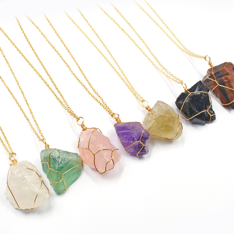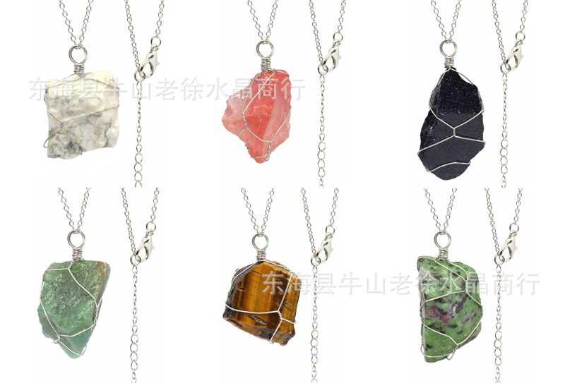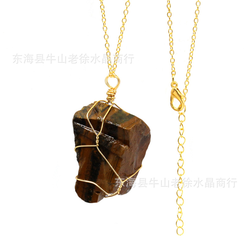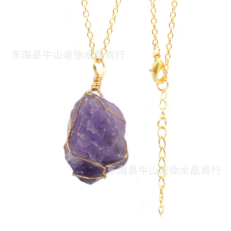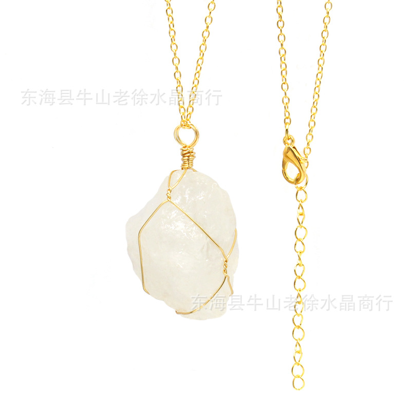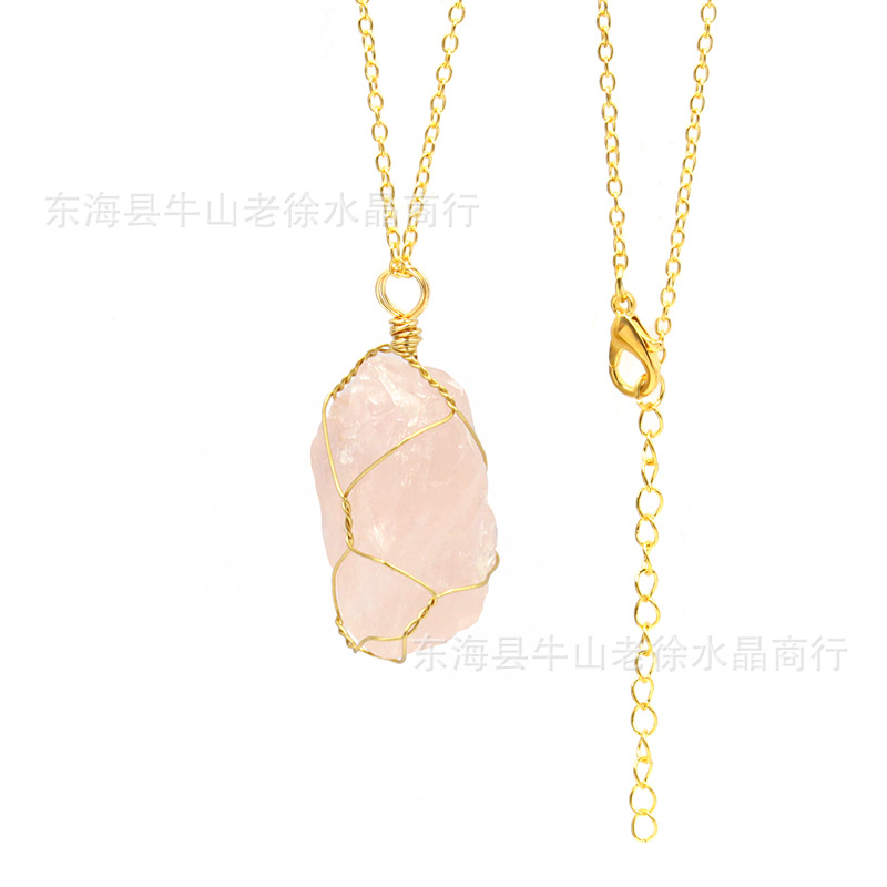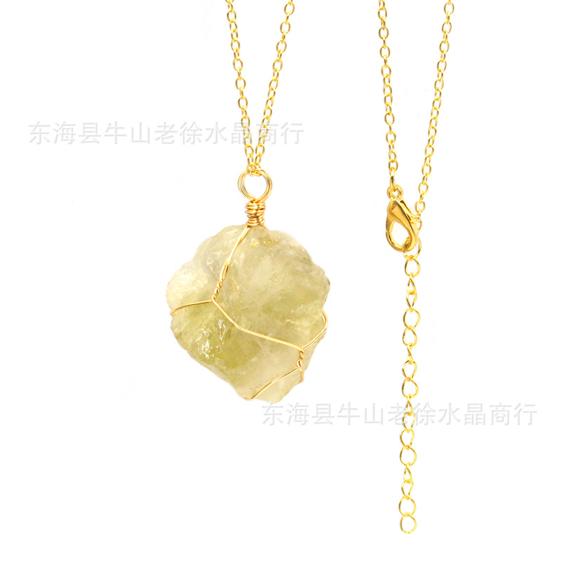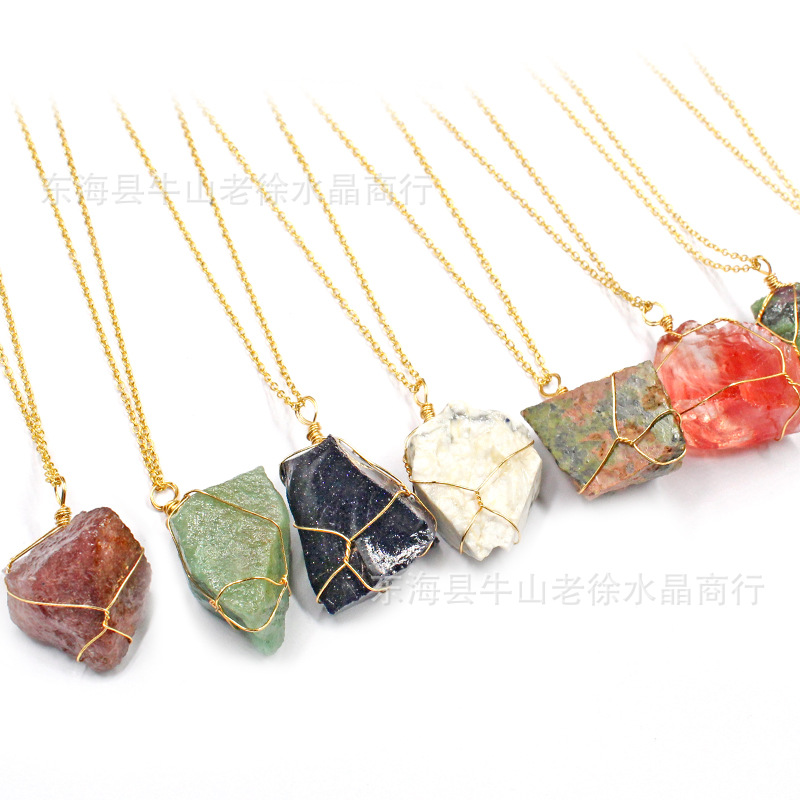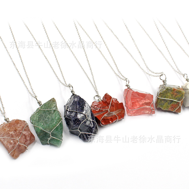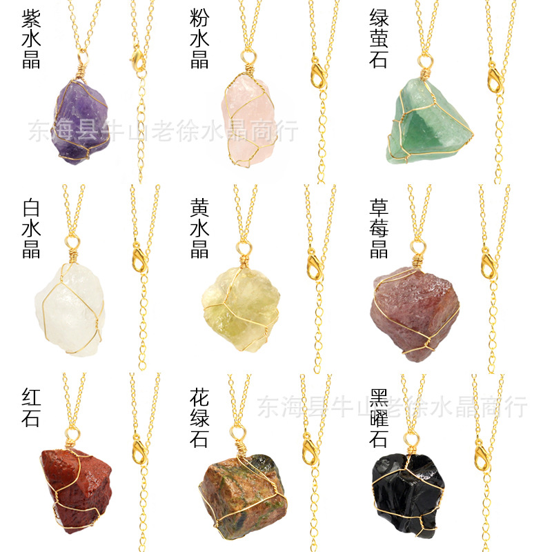 天然水晶项链欧美不规则水晶原石吊坠手工绕丝石头项链饰品批发