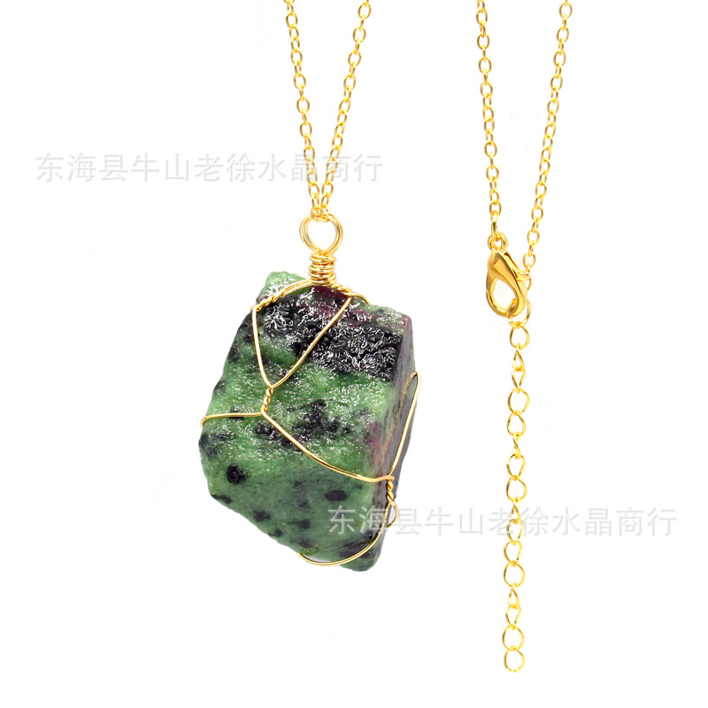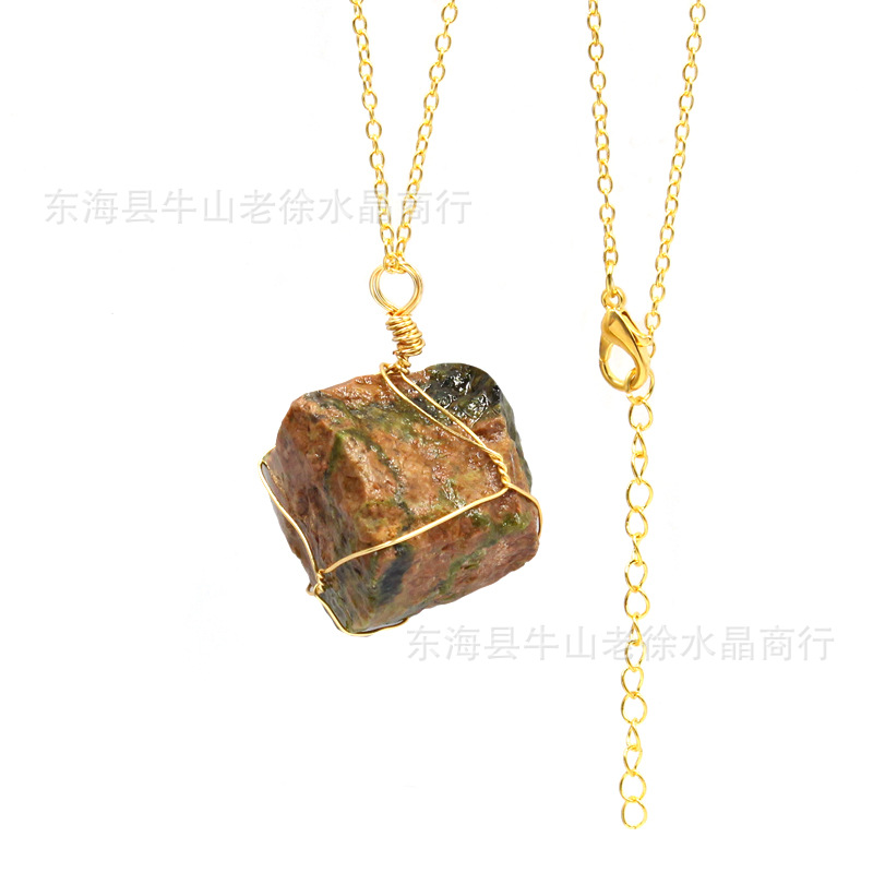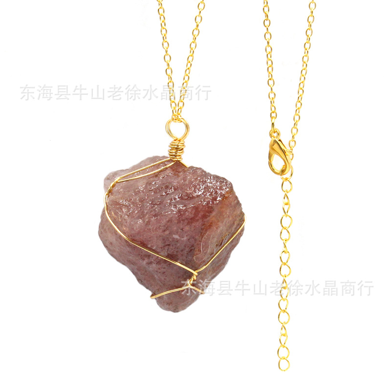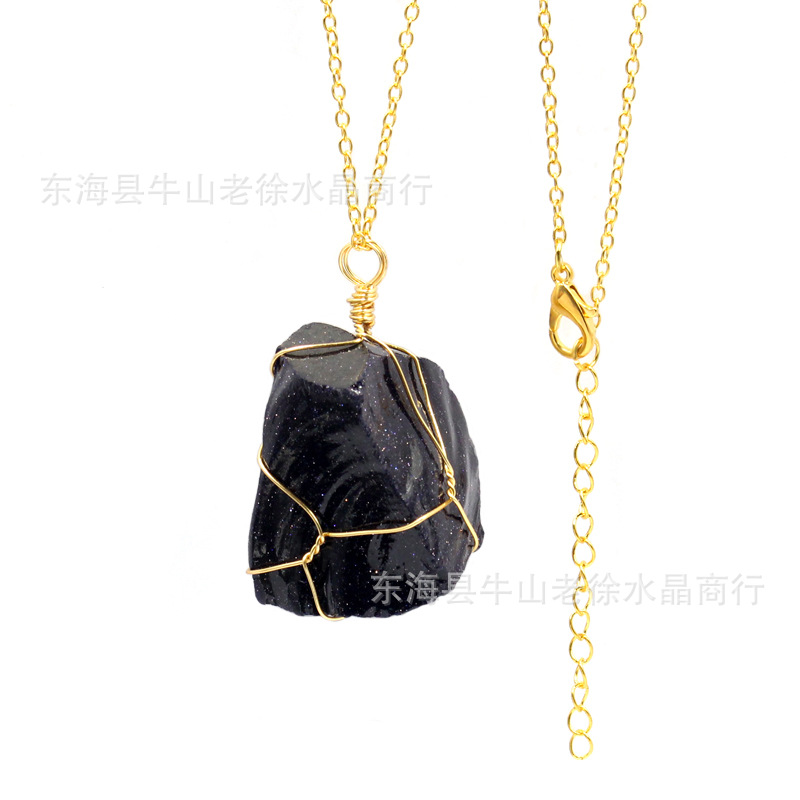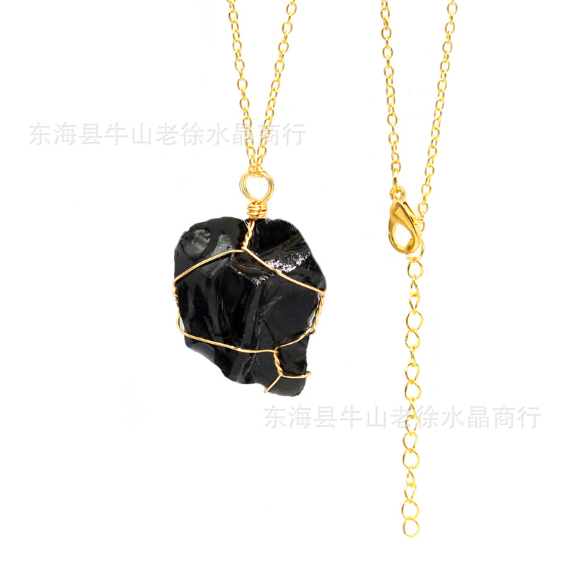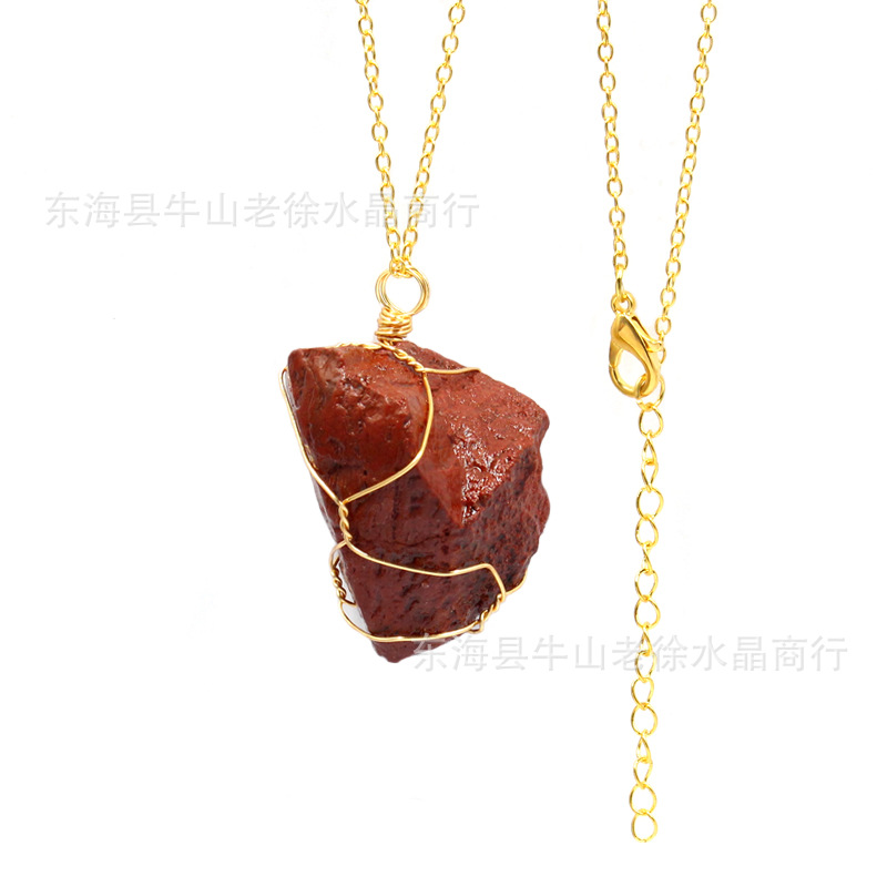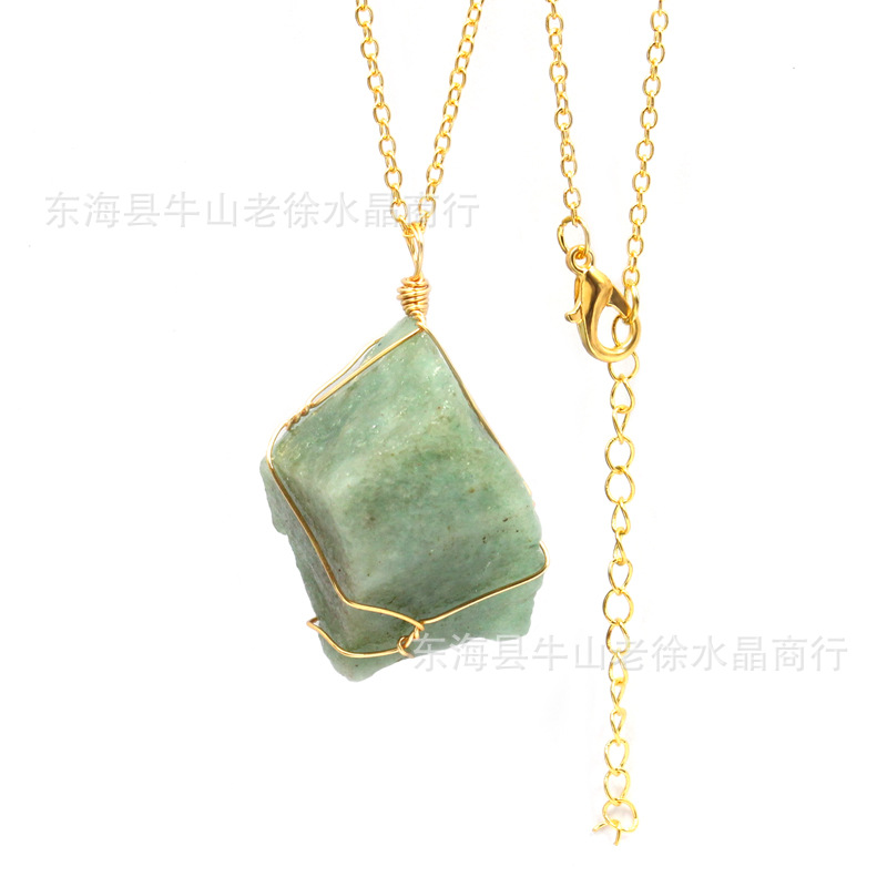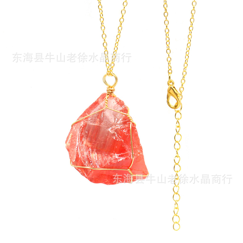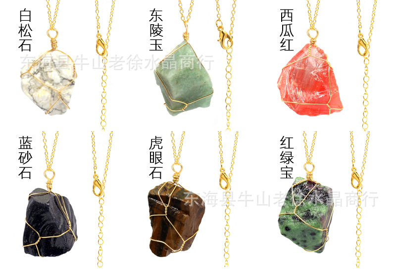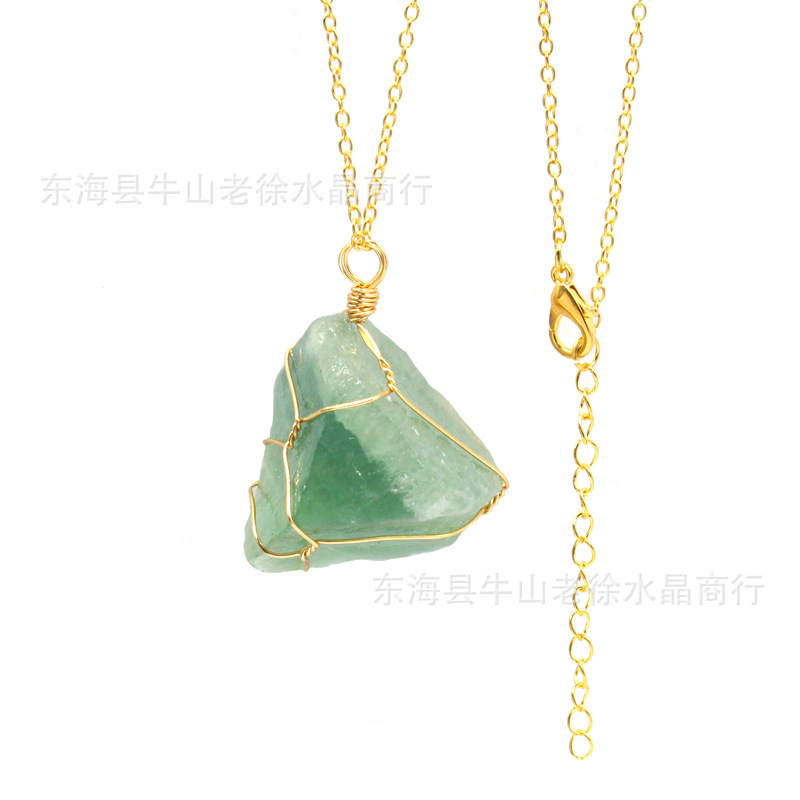 天然水晶项链欧美不规则水晶原石吊坠手工绕丝石头项链饰品批发