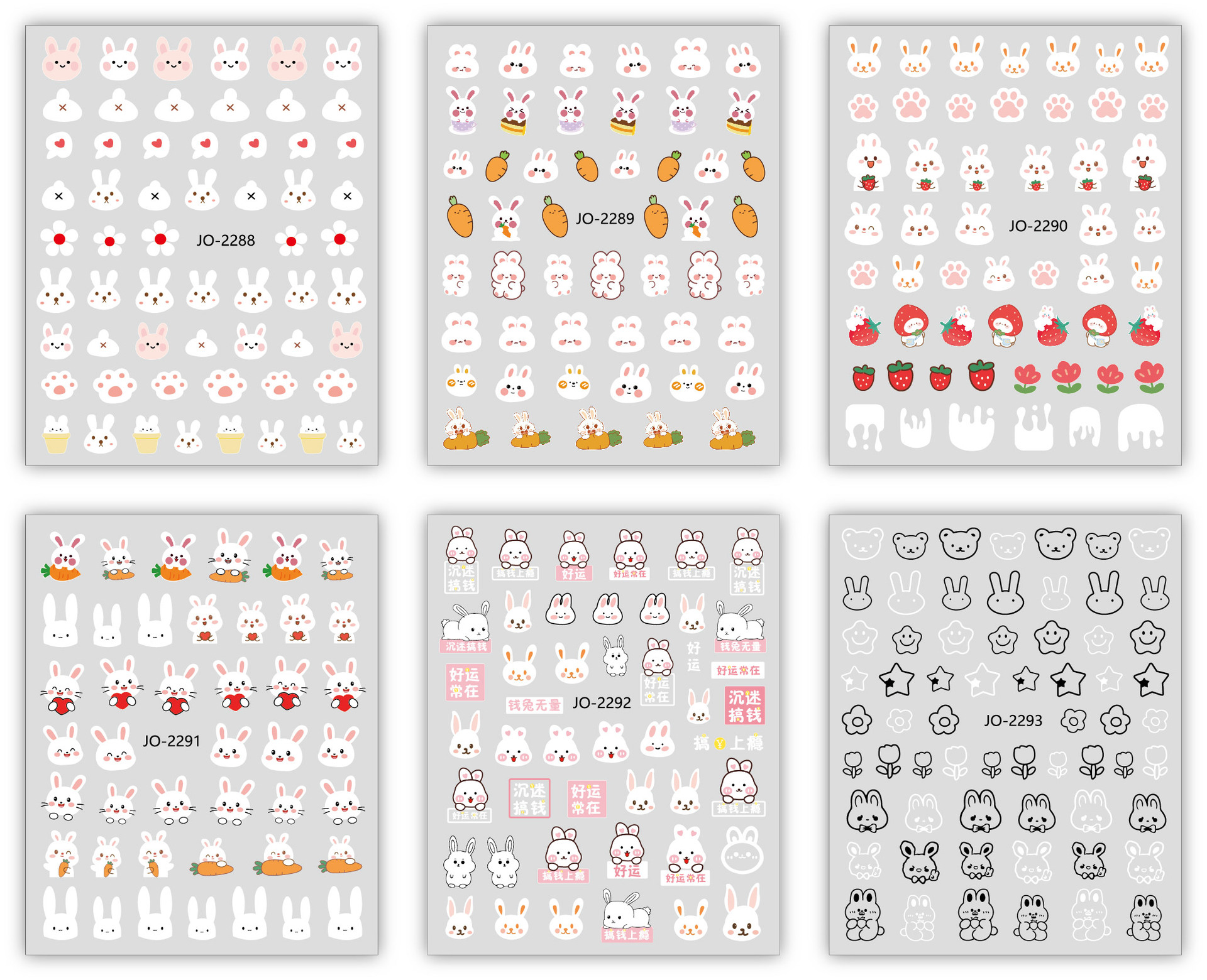 可爱卡通小白兔美甲贴纸胡萝卜草莓指甲装饰小图案3d指甲贴装饰