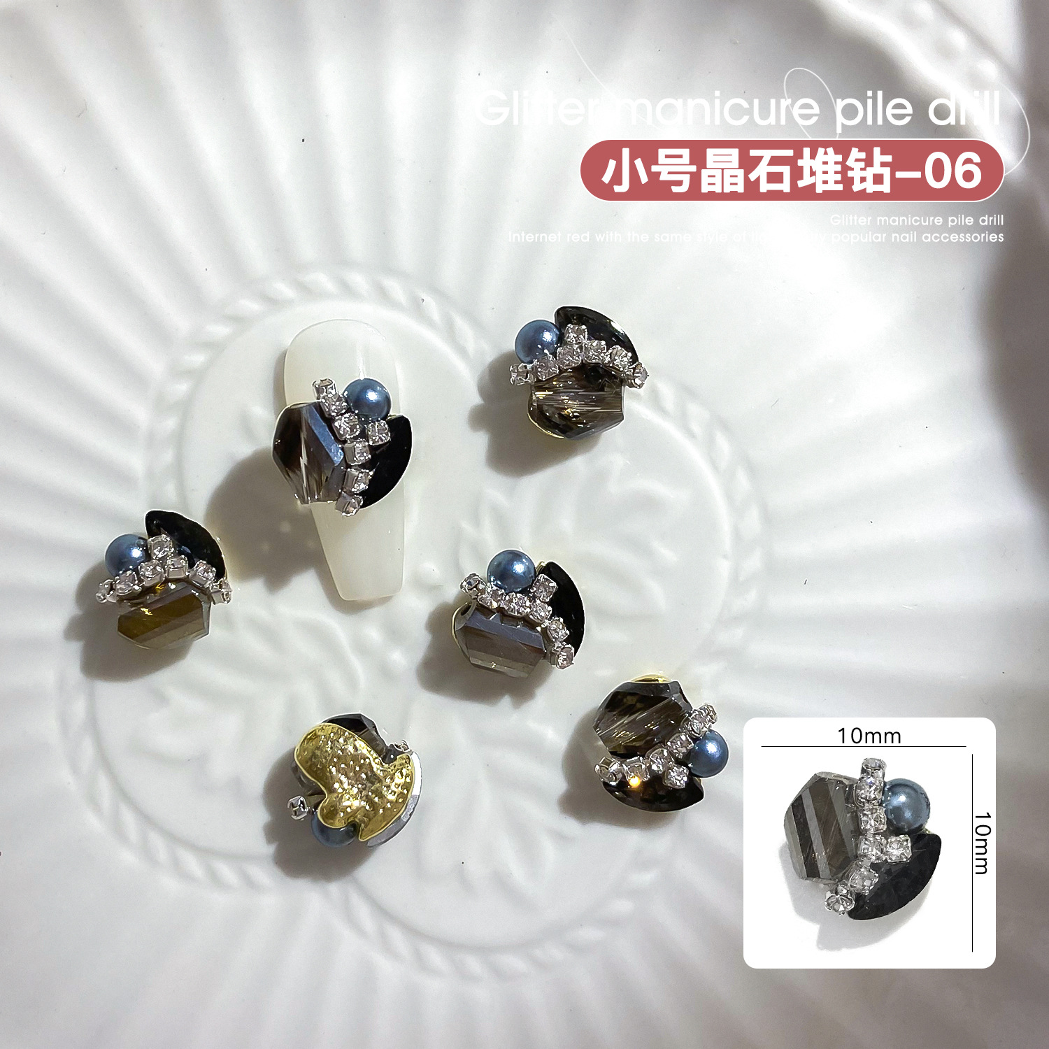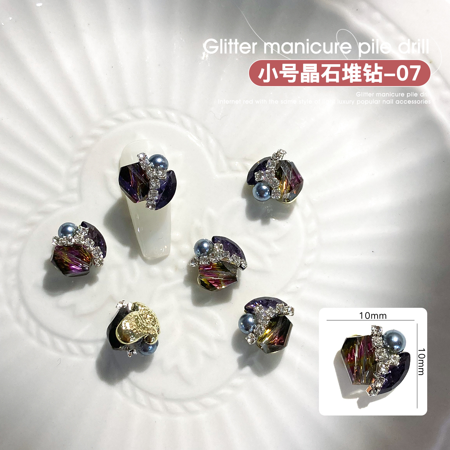 美甲晶石堆钻成品极光冰透链条2022新款菱形水晶微光指甲饰品