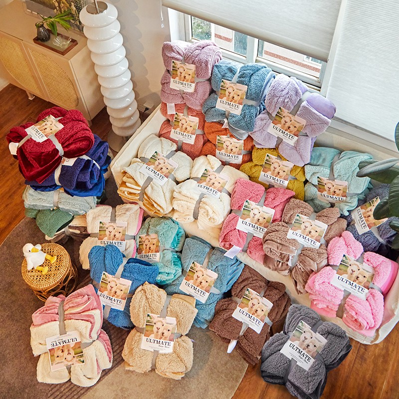 外贸出口厂家直销纯色双层羊羔绒毛毯跨境外贸法莱绒毯子