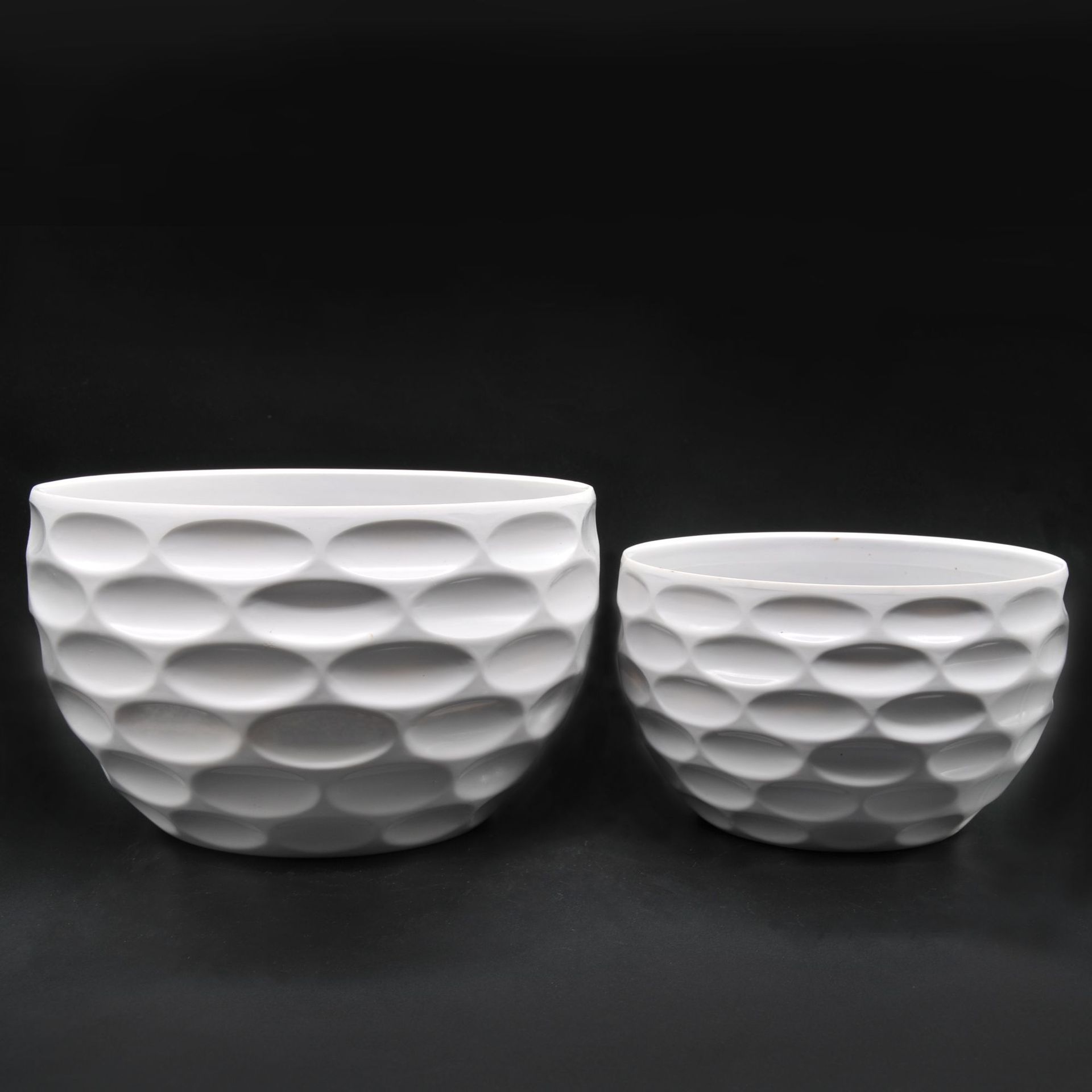 创意简约类编织纹钵体圆形仿陶瓷密胺花盆仿真园艺无孔光面套盆