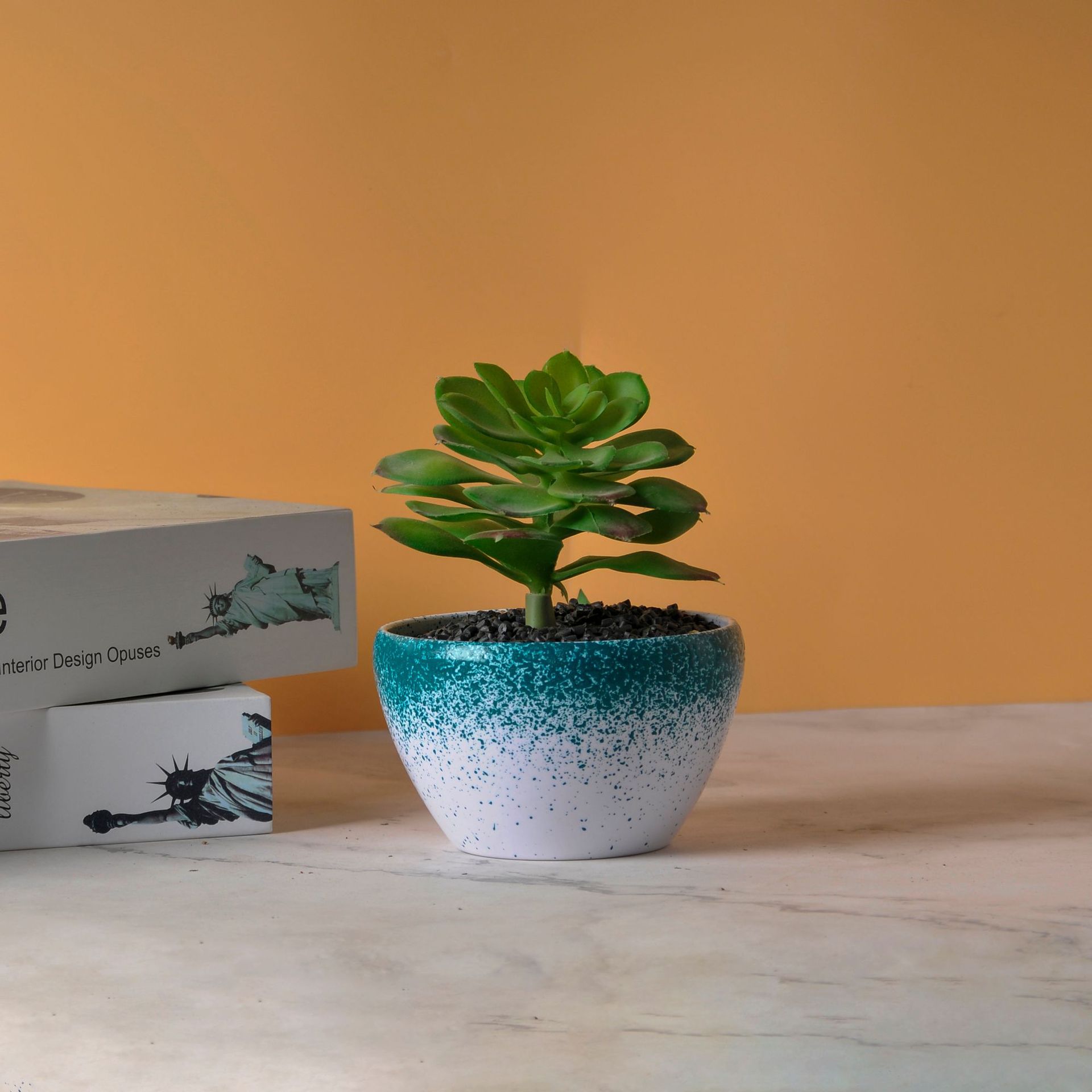 芦荟豆瓣绿种植无孔小尺寸仿瓷假花仿真花双色喷点圆碗形密胺花盆