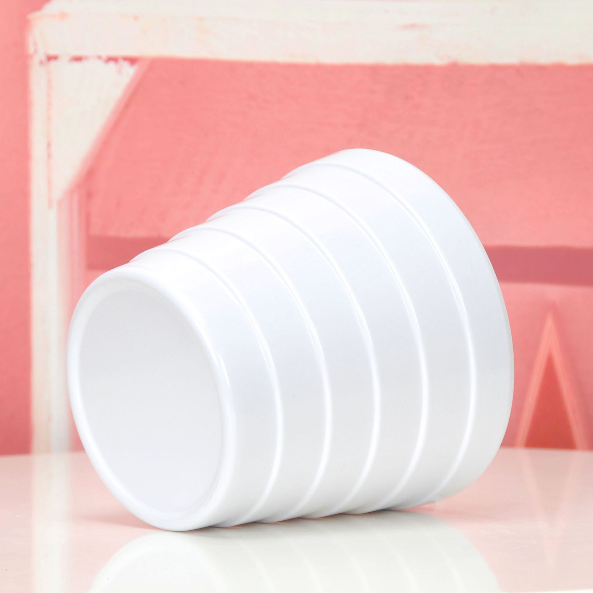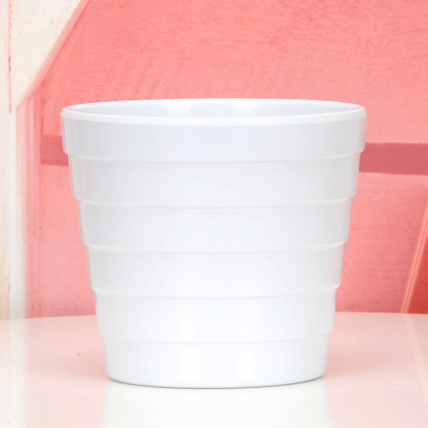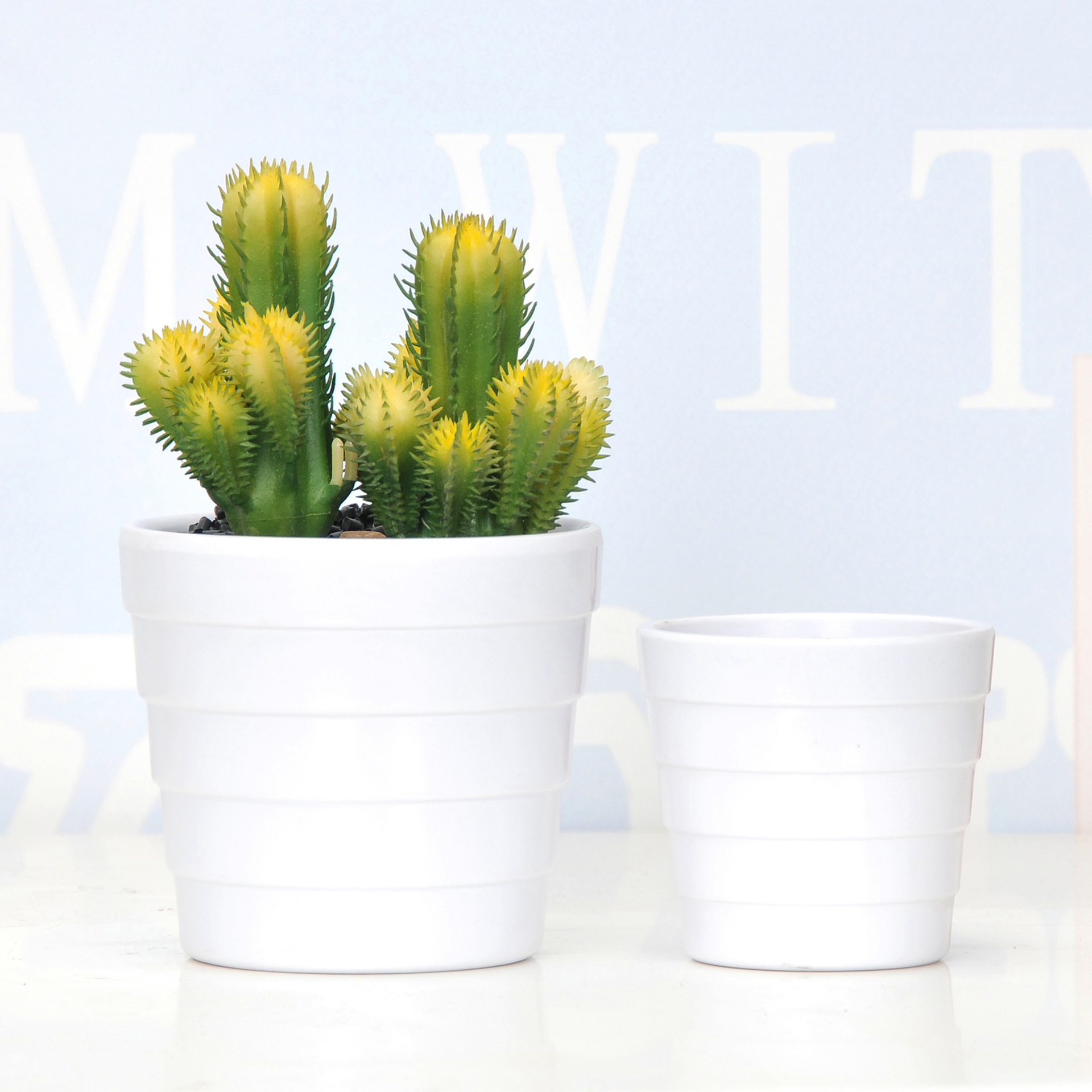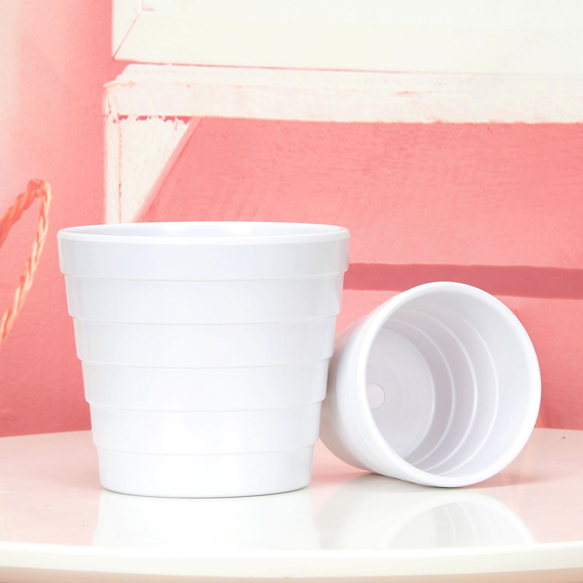 厂家直供批发敞口横条纹美耐皿密胺园艺花盆室内桌面仿真植物套盆
