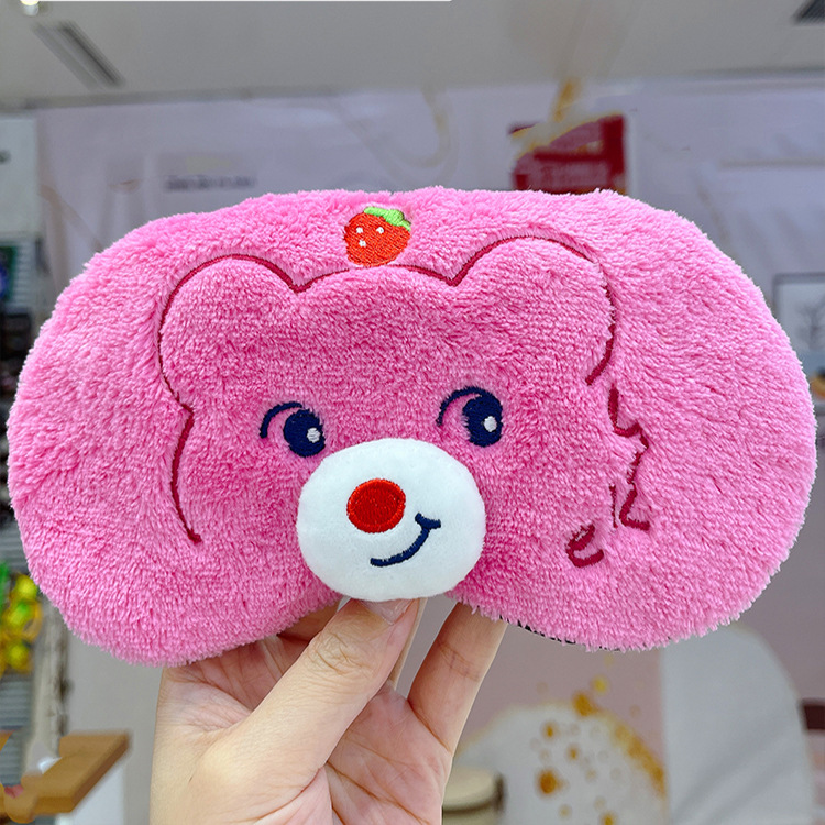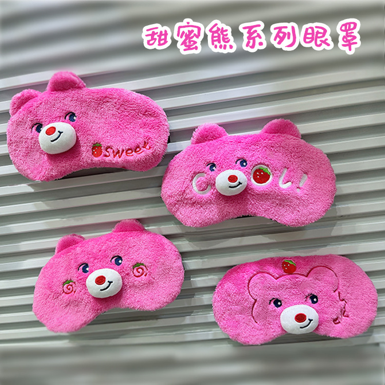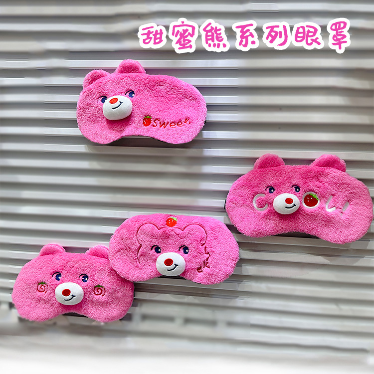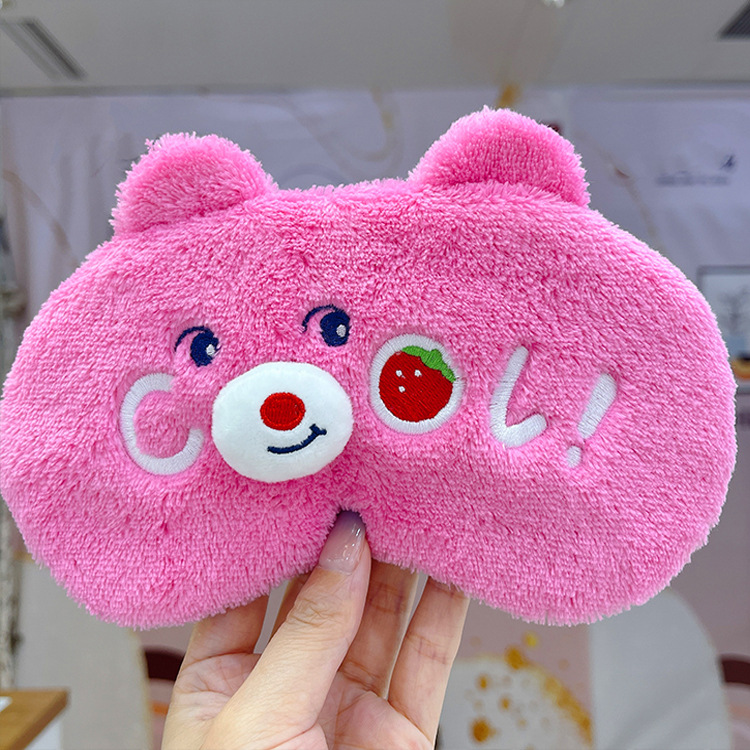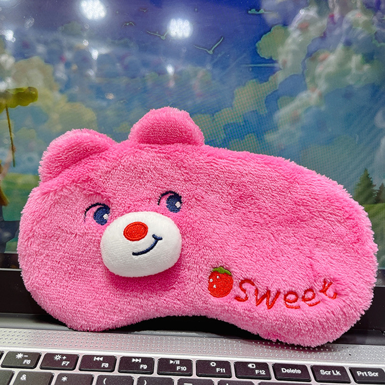 毛绒莓有烦恼草莓小熊眼罩兔毛少女心卡通冰袋凝胶热冷双敷睡眠罩