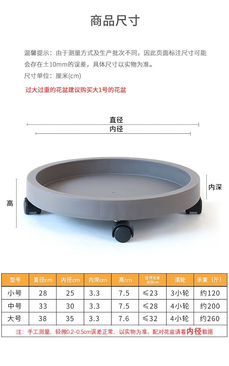 万向轮移动滚轮塑料托盘花盆底座接水阳台室内防漏水圆形底托加厚