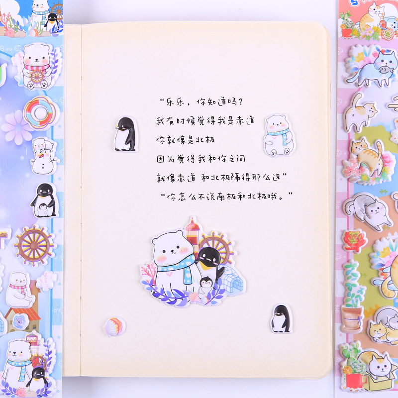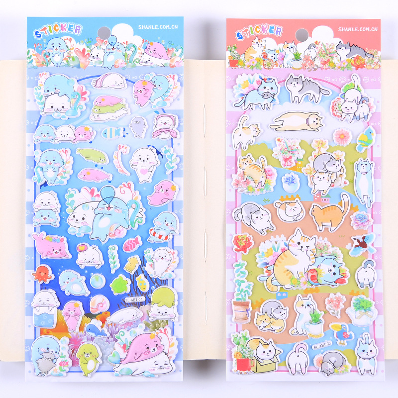 卡通动物贴纸 儿童3D立体泡泡贴可爱熊猫海绵贴画幼儿园奖励粘贴