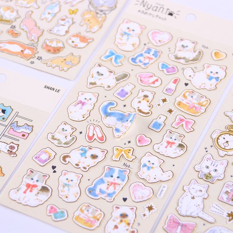 shanle猫咪烫金手账贴纸 和纸手帐素材女孩日记本DIY装饰贴画批发