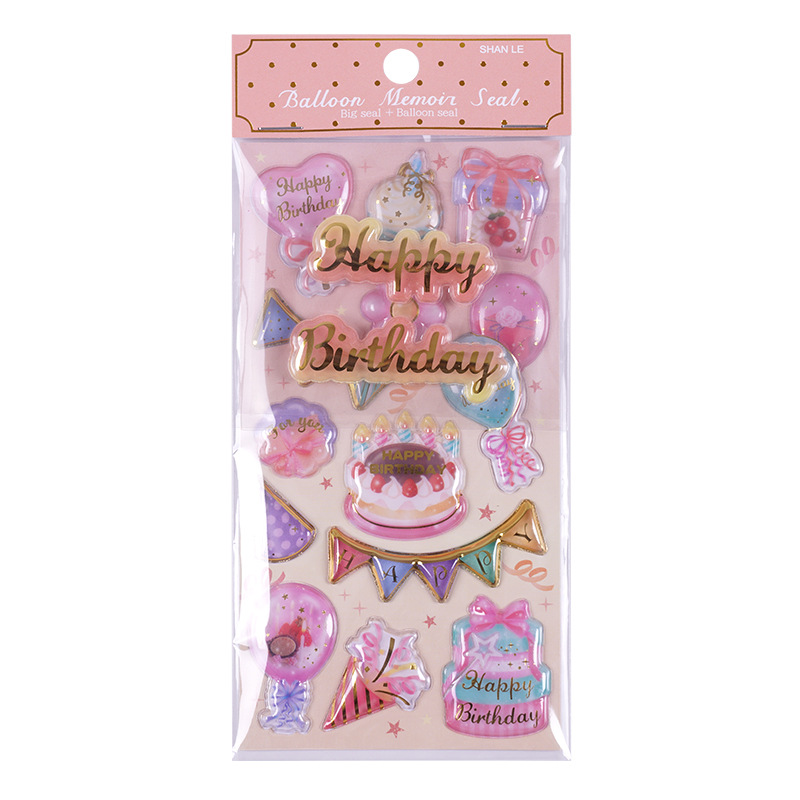 创意新款气球记忆密封贴happybirthday生日派对彩旗蛋糕装饰贴画