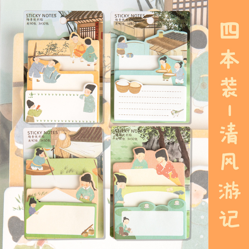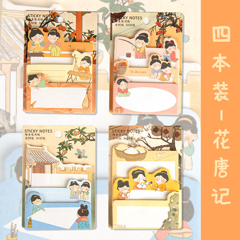 国风卡通便利贴彩色可爱便签贴办公文具便签本可撕学生创意便签纸