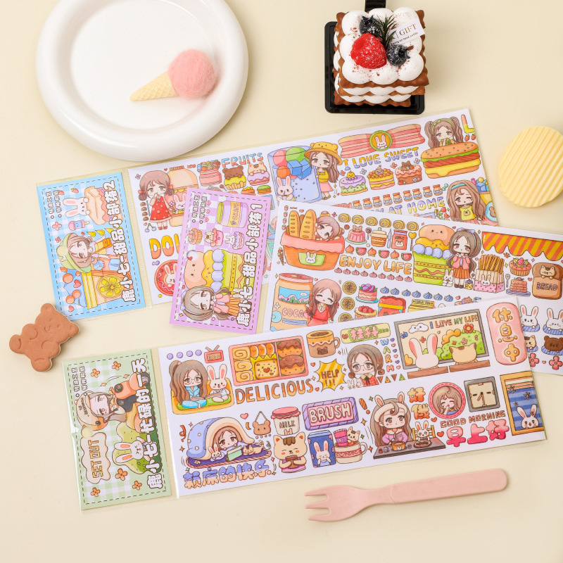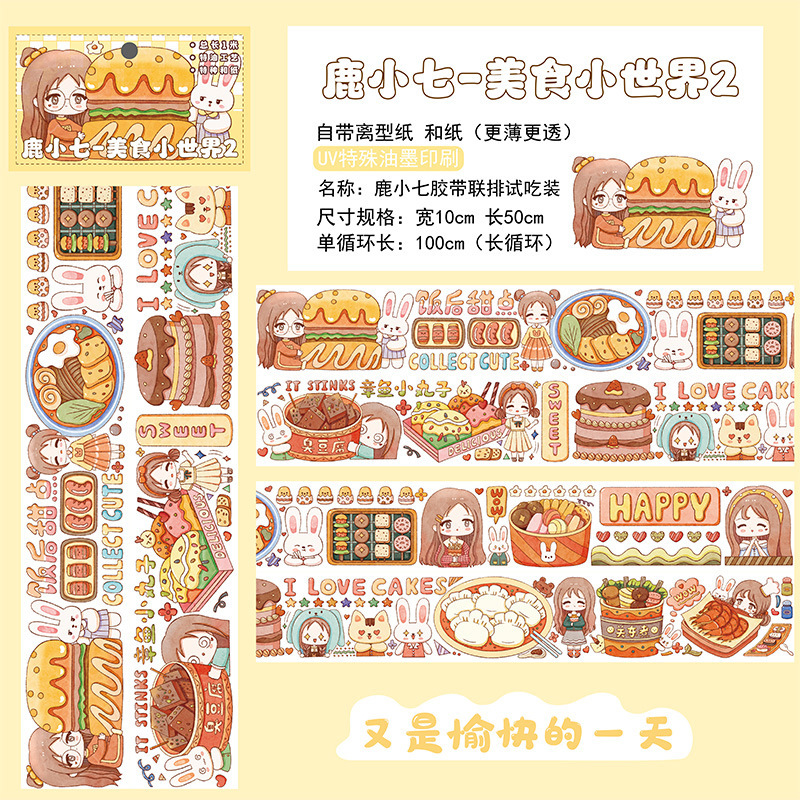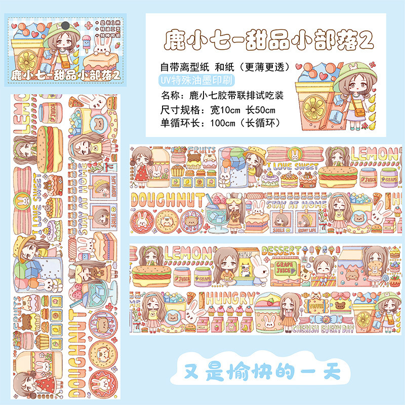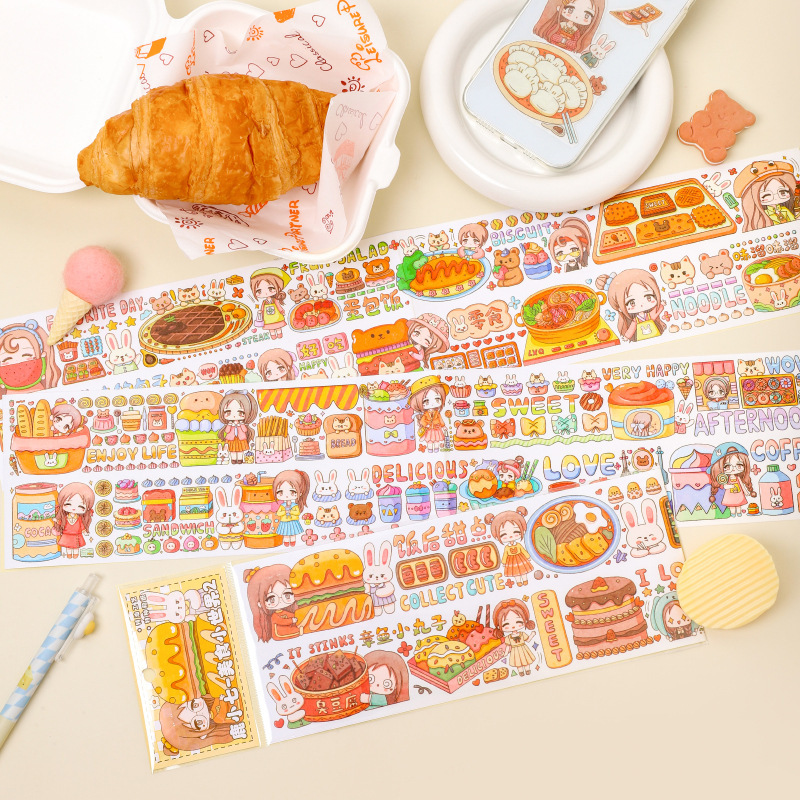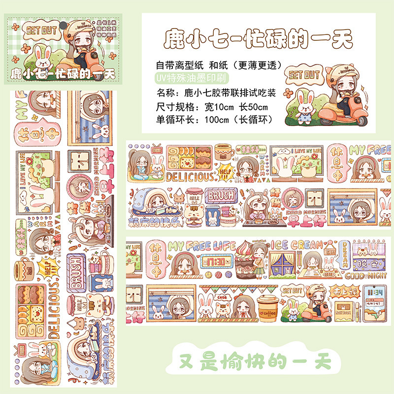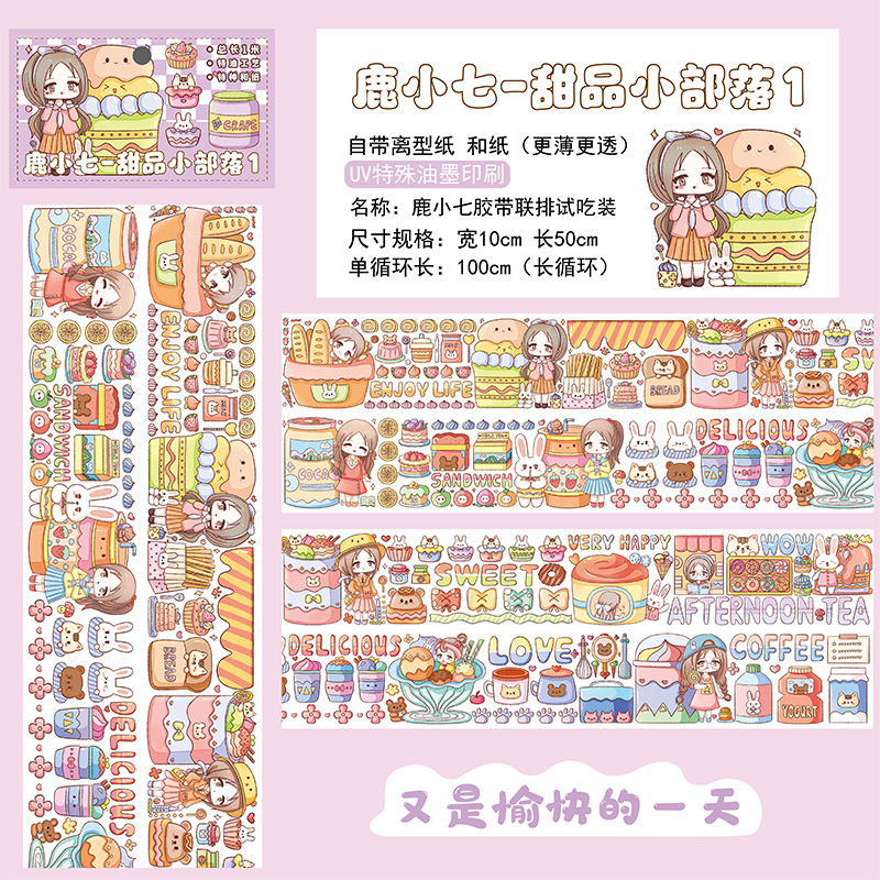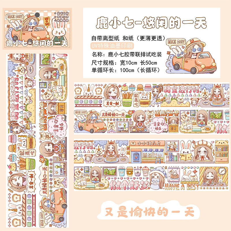 特油和纸胶带联排试吃装长条贴纸可爱少女手账装饰拼贴贴画