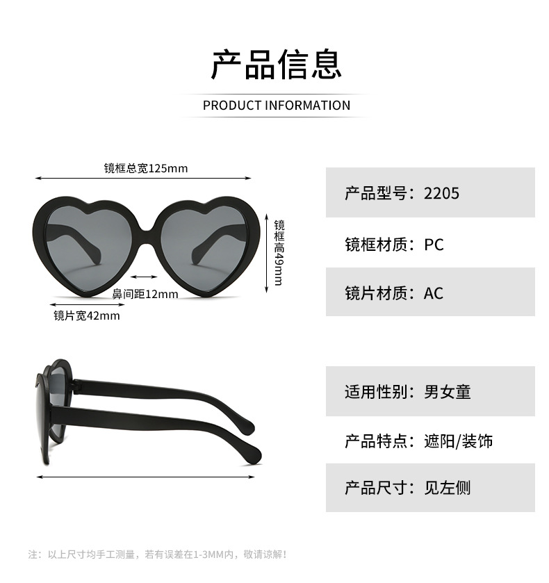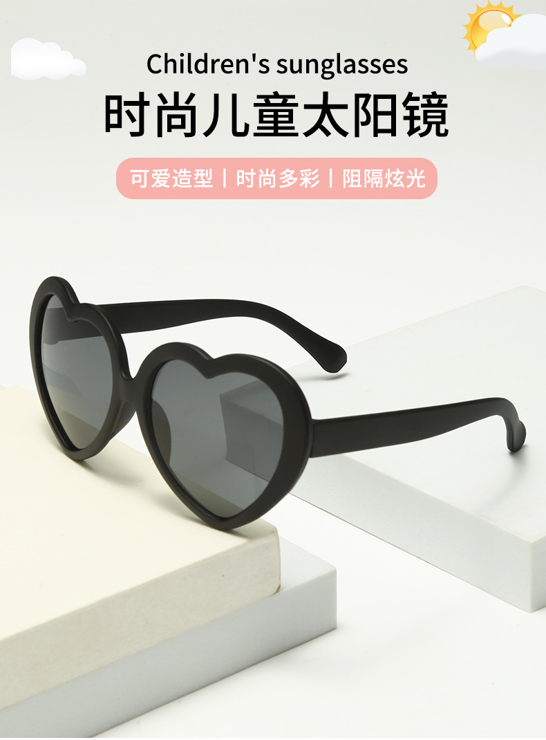 新款时尚爱心儿童太阳镜潮个性可爱男女童3-9岁遮阳防紫外线眼镜