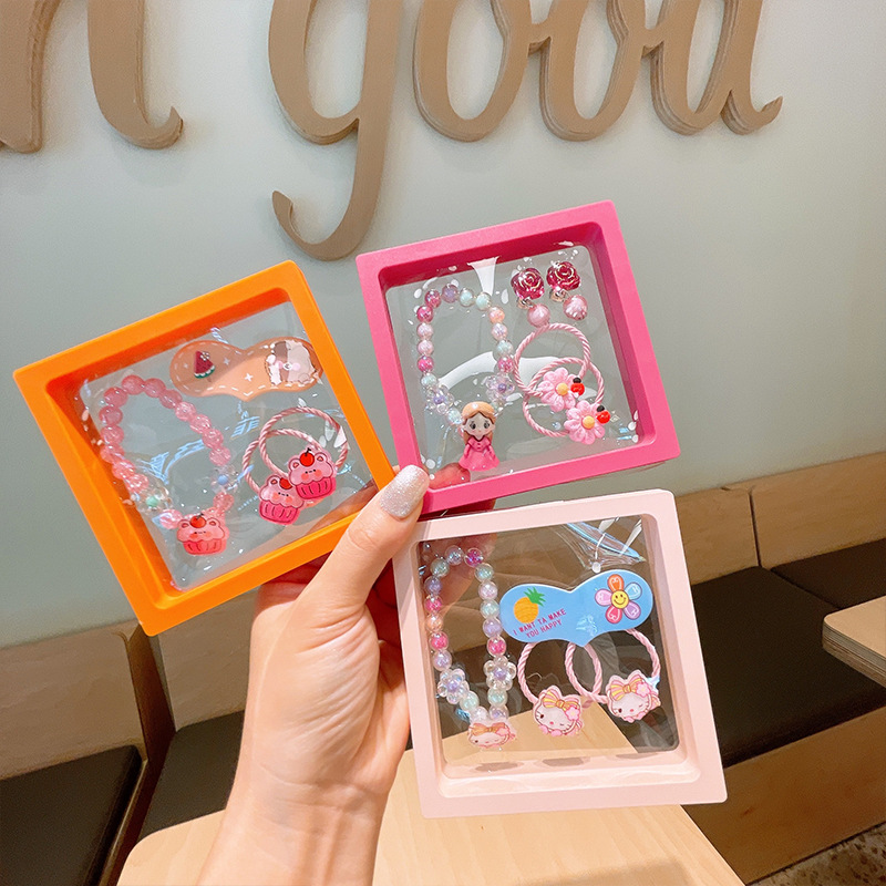 儿童卡通公主串珠手链套装可爱宝宝发夹皮筋耳环饰品礼盒女童配饰