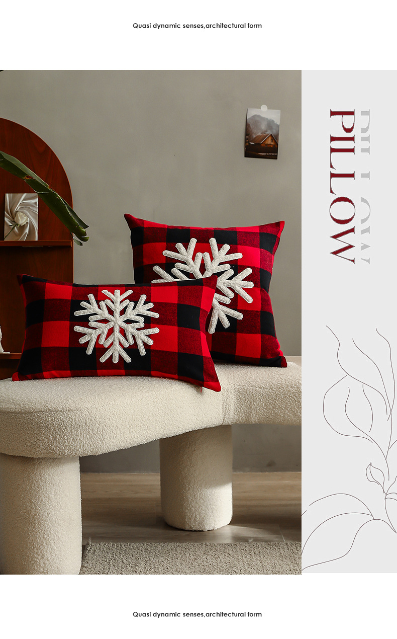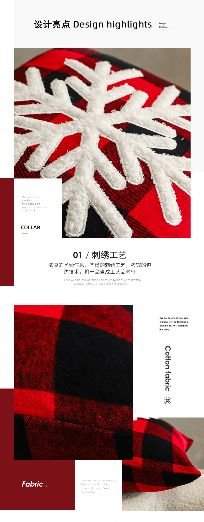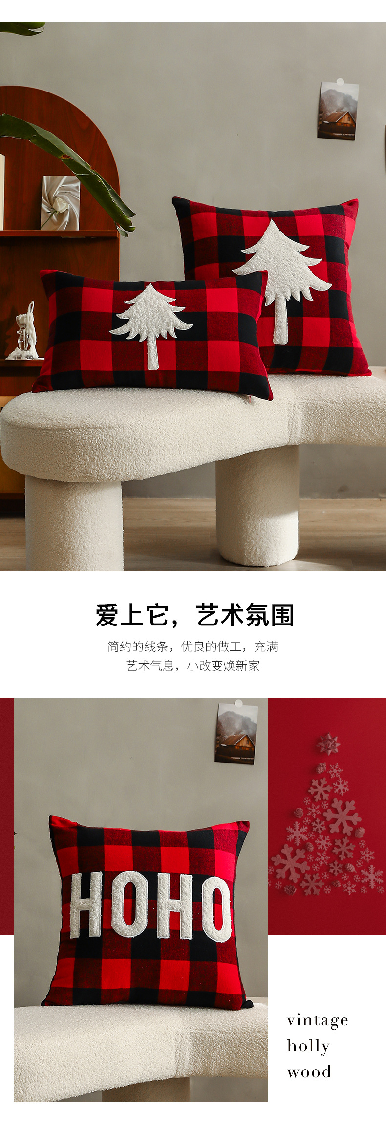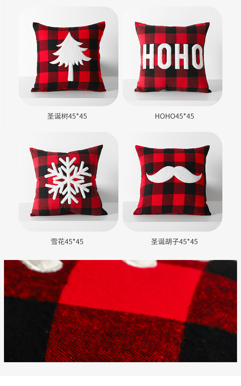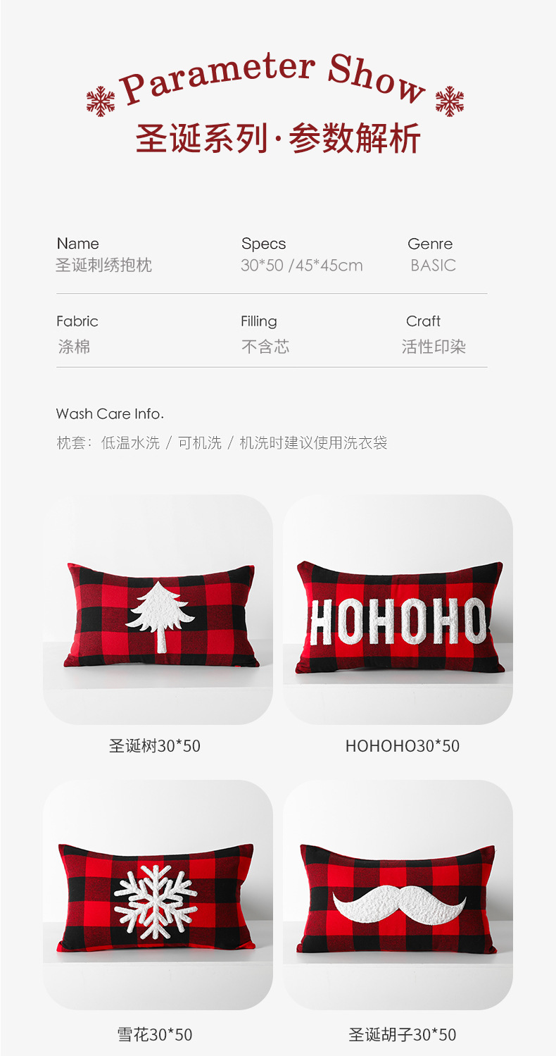 圣诞红黑格子刺绣抱枕靠枕靠垫套圣诞风格卧室客厅抱枕不含芯
