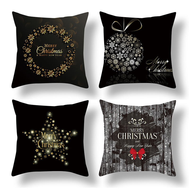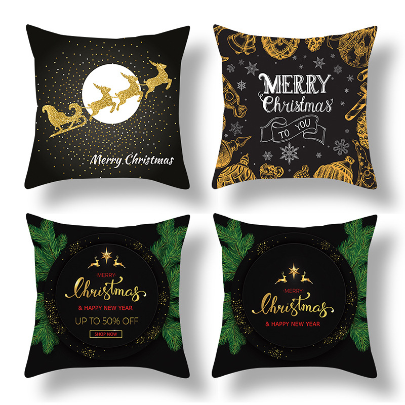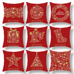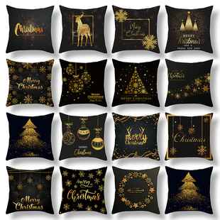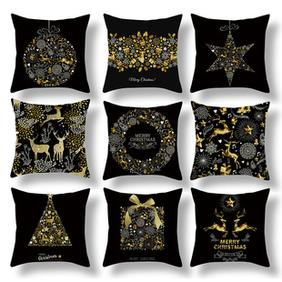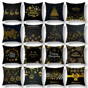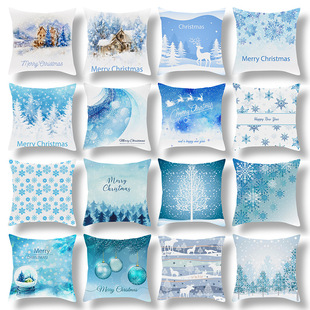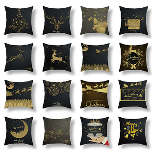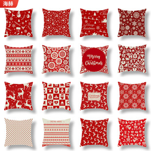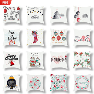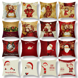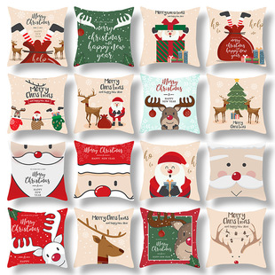 跨境新款卡通印花圣诞节抱枕套圣诞老人麋鹿节日抱枕居家沙发靠垫