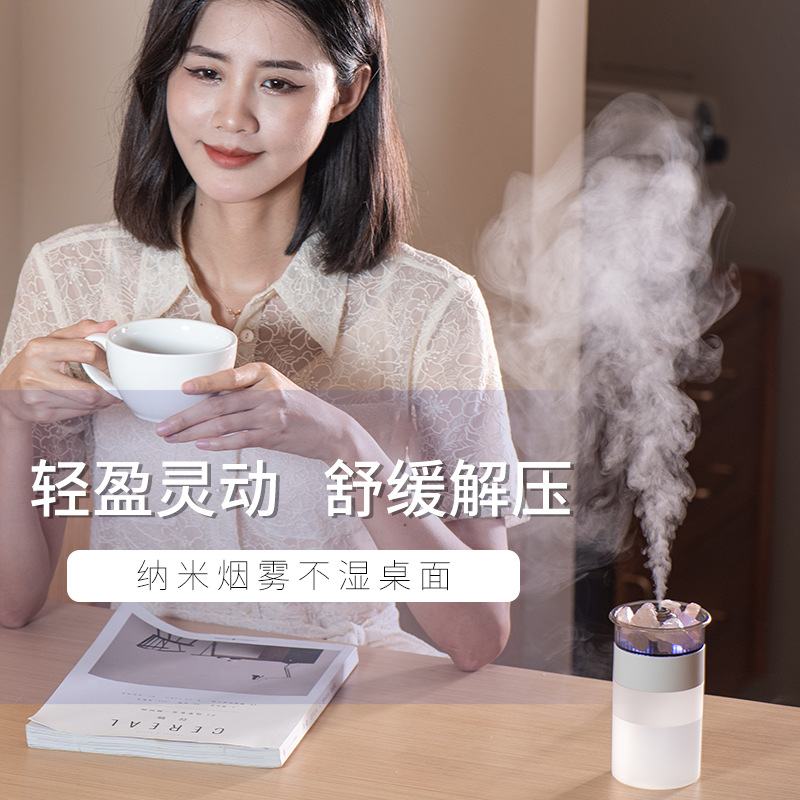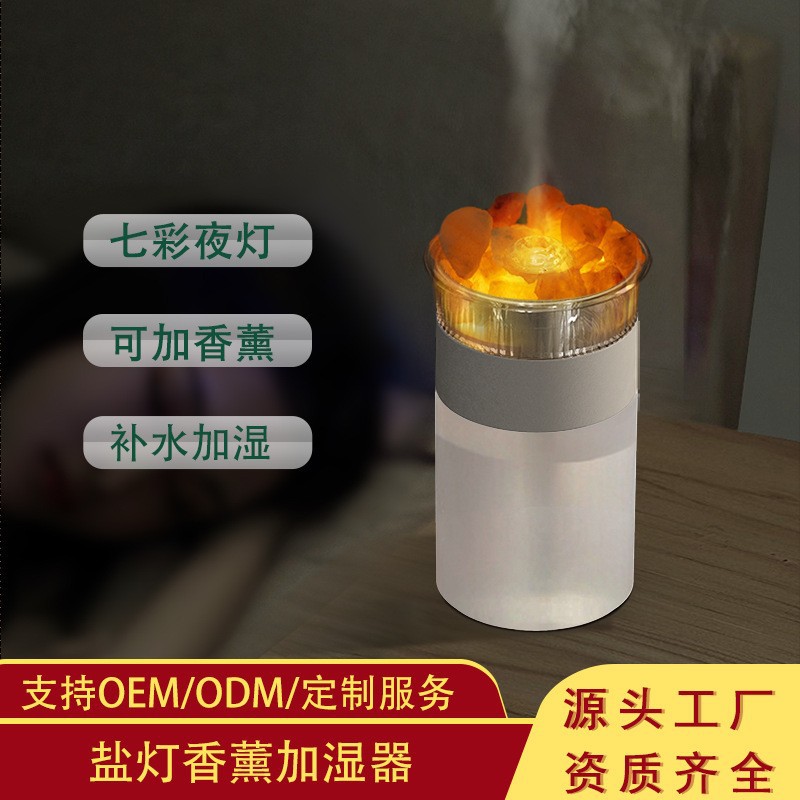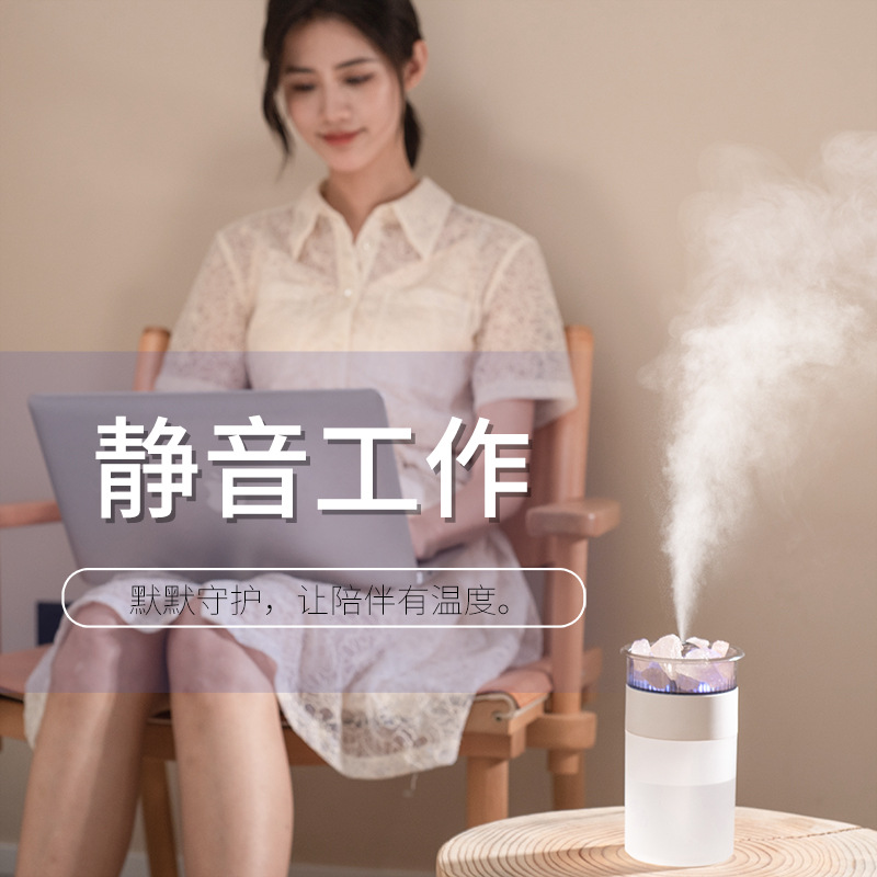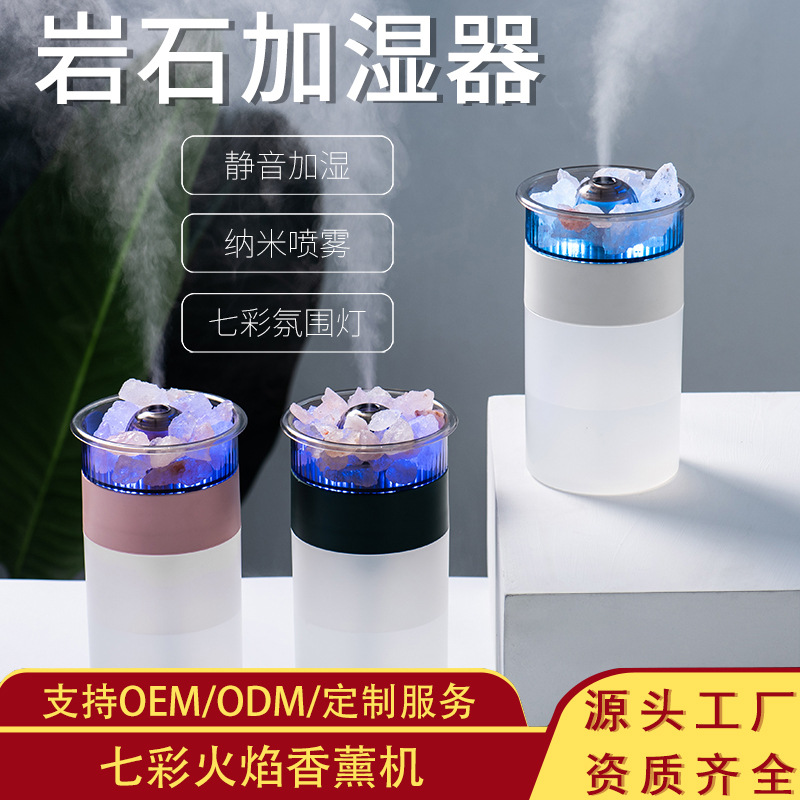 2022新款迷你加湿器家用车载桌面七彩灯水晶盐石香薰机加湿器跨境