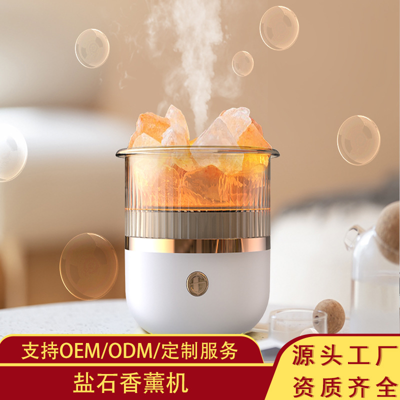 2025新款迷你加湿器家用车载桌面七彩灯水晶盐石香薰机加湿器跨境