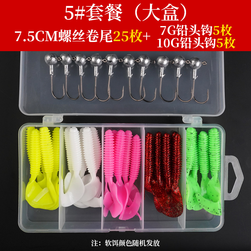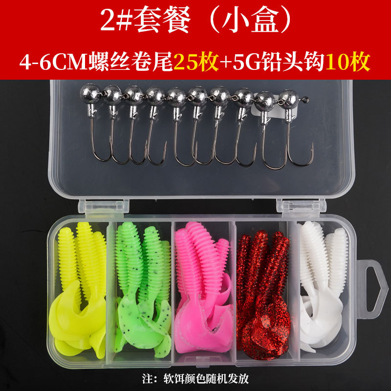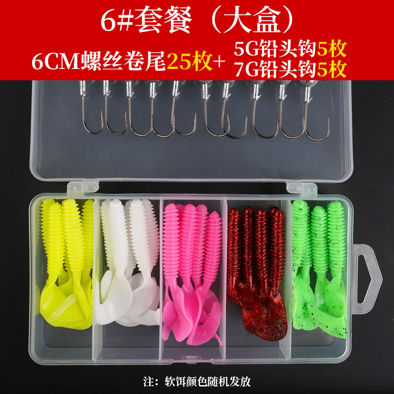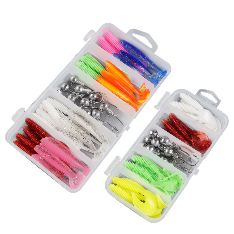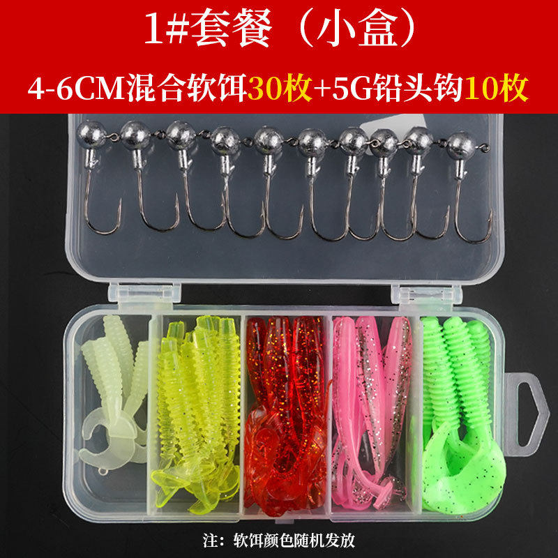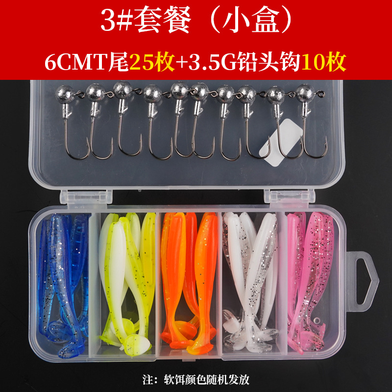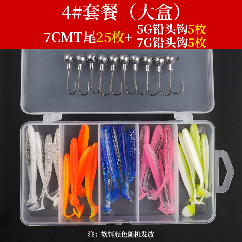 厂家直供远投路亚饵套装T尾软饵软虫铅头钩鳜鱼鲈鱼翘嘴盒装假饵