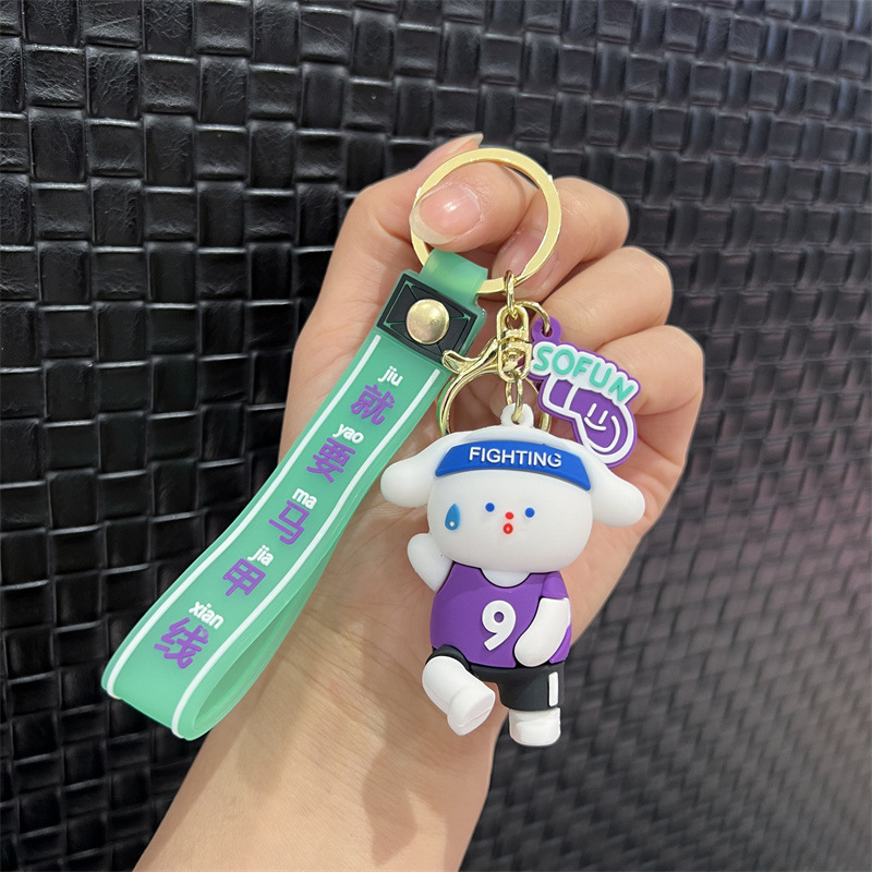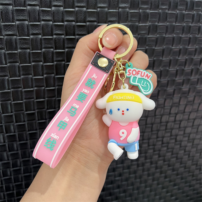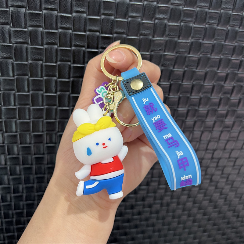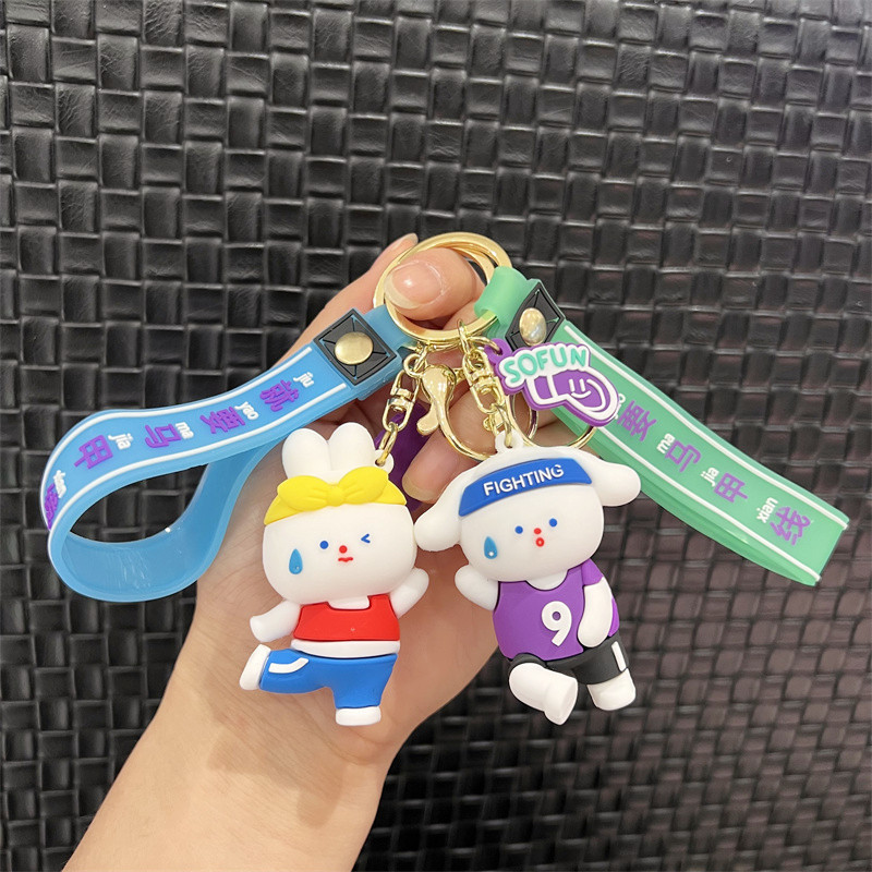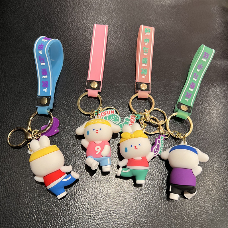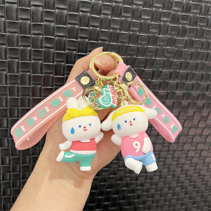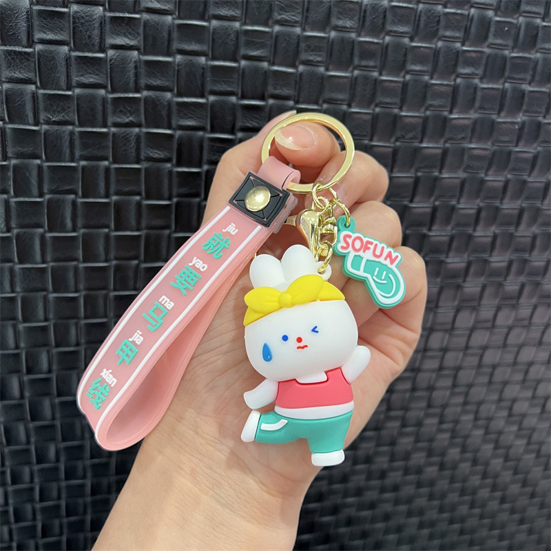 创意健身小兔钥匙扣可爱运动兔瑜伽兔兔pvc公仔男女包包挂饰