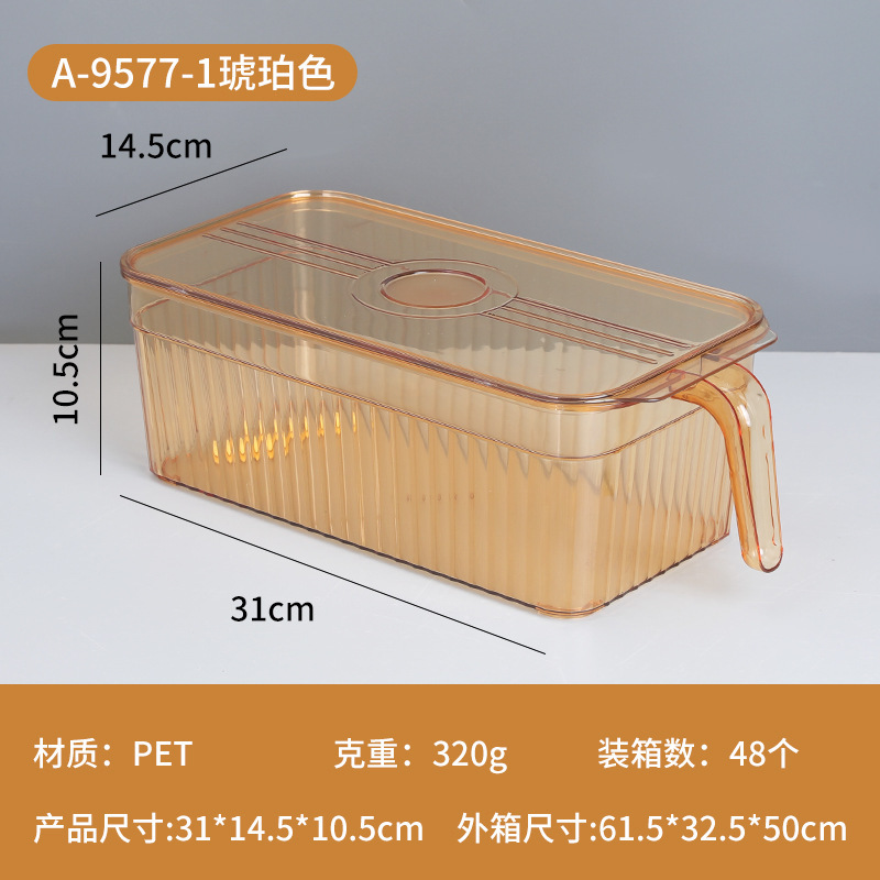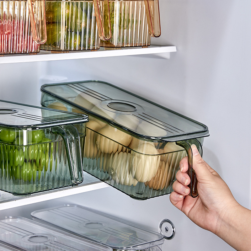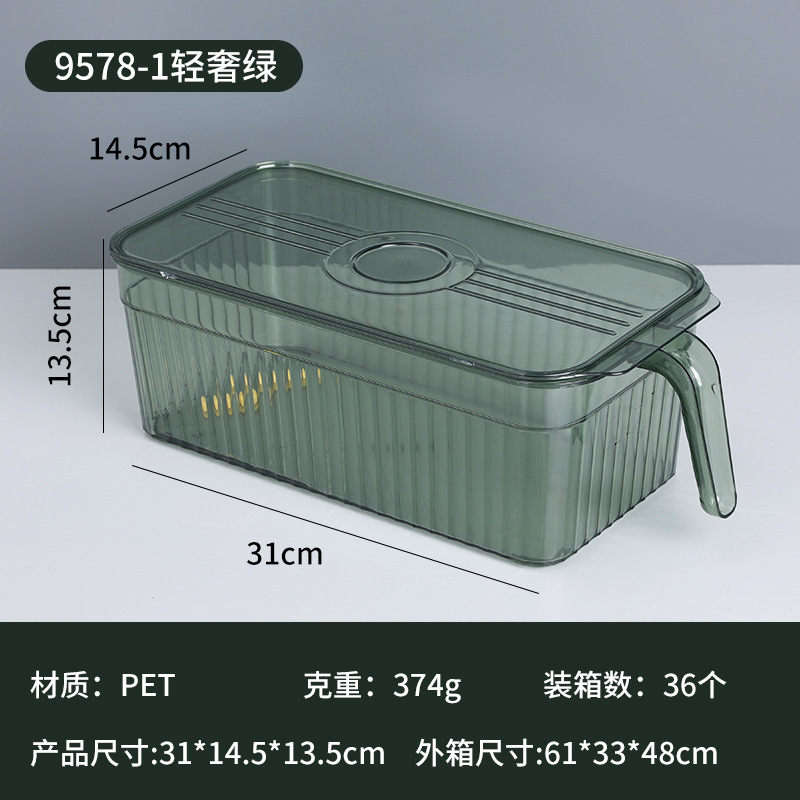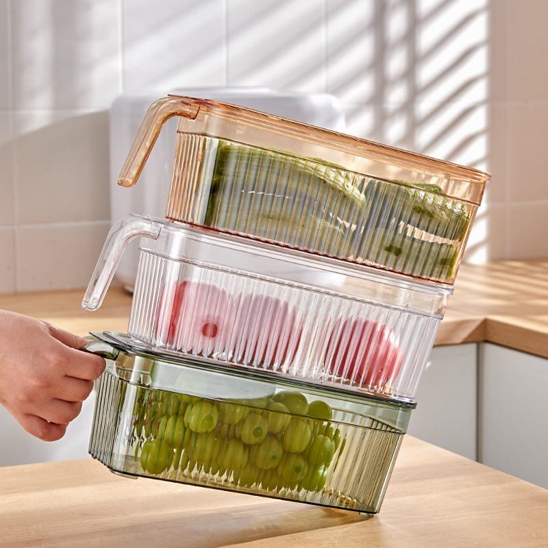 带手柄冰箱收纳盒食品级厨房蔬菜水果收纳塑料透明冰箱收纳保鲜盒