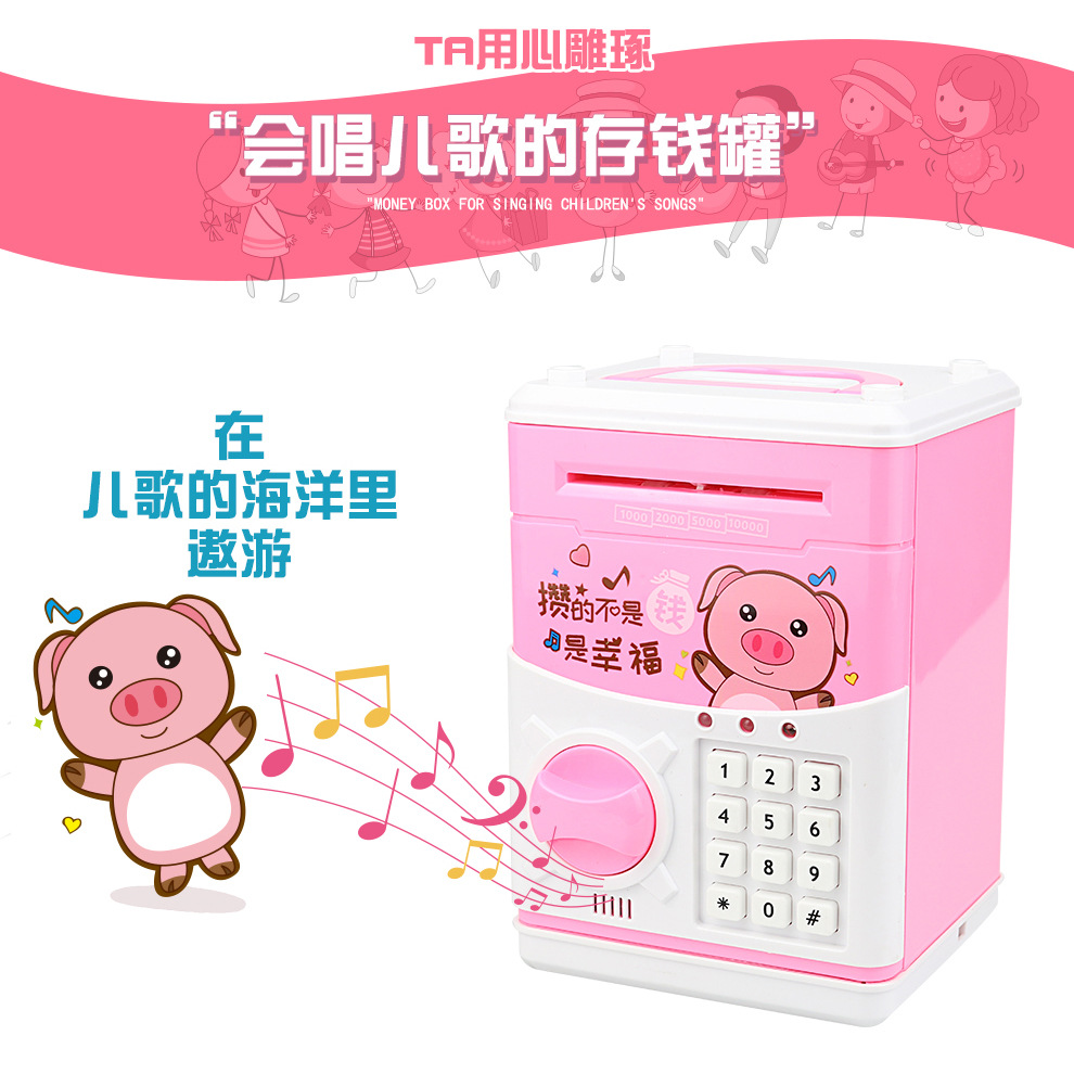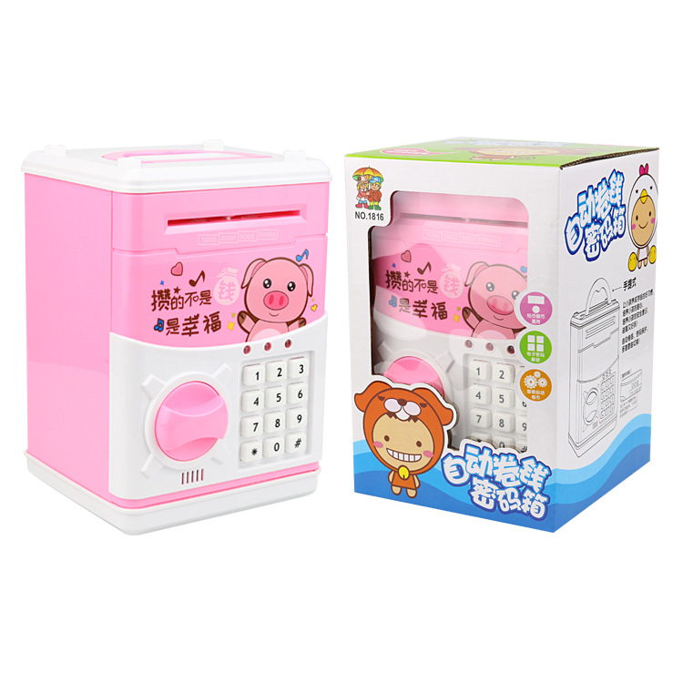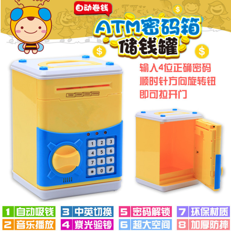 批发创意电动儿童生日礼品自动卷钱ATM密码箱存钱罐卡通保险柜