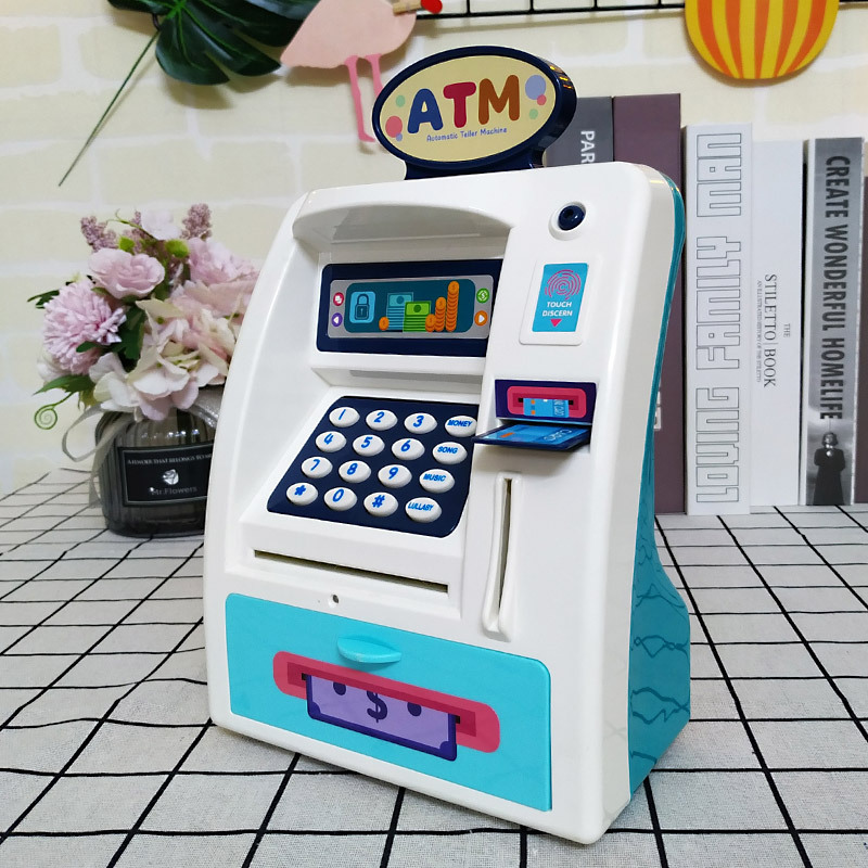 新款英文atm机存钱罐 创意儿童卡通智能密码自动卷币储蓄罐跨境