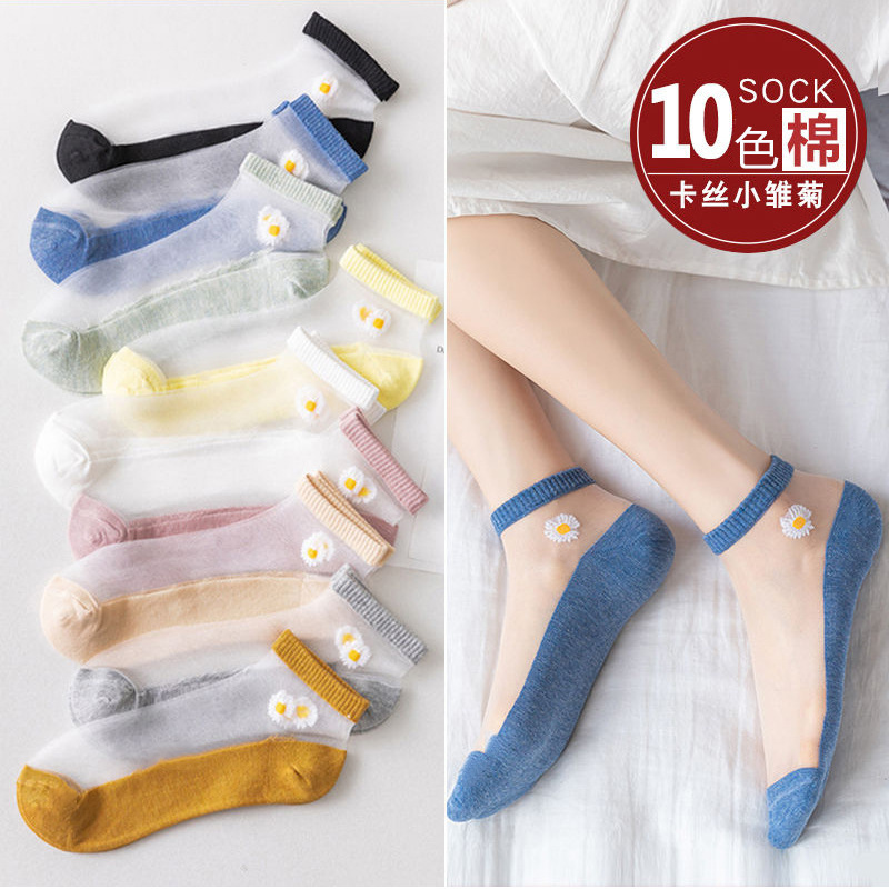 小雏菊水晶船袜女ins潮短筒袜网红夏季卡丝袜女士薄款袜厂家批发
