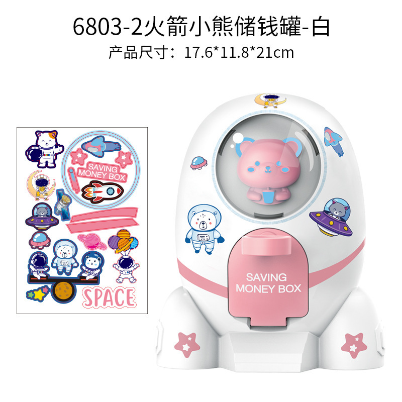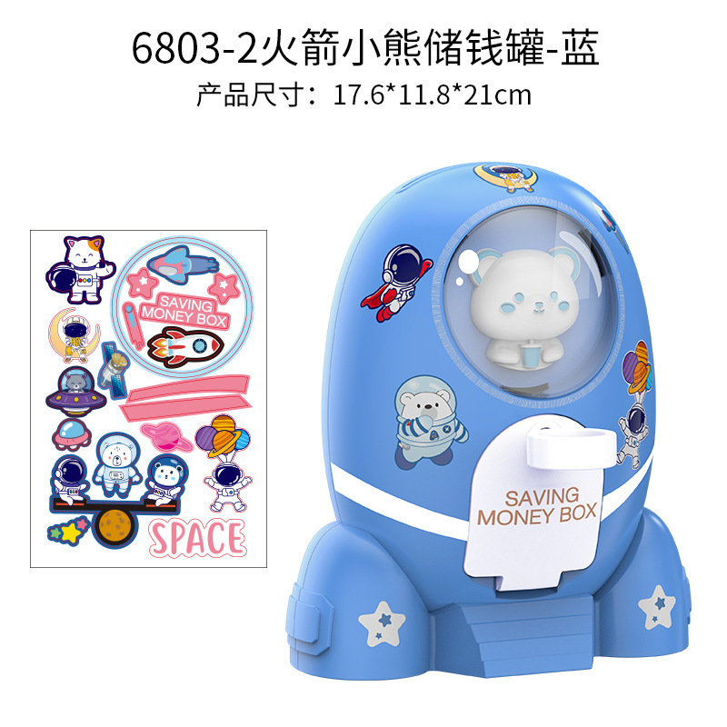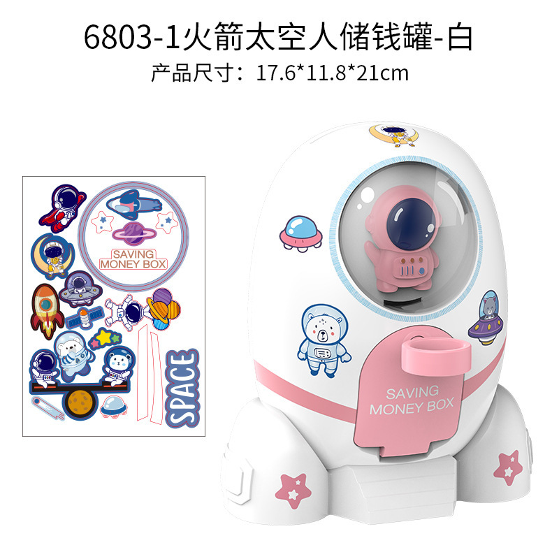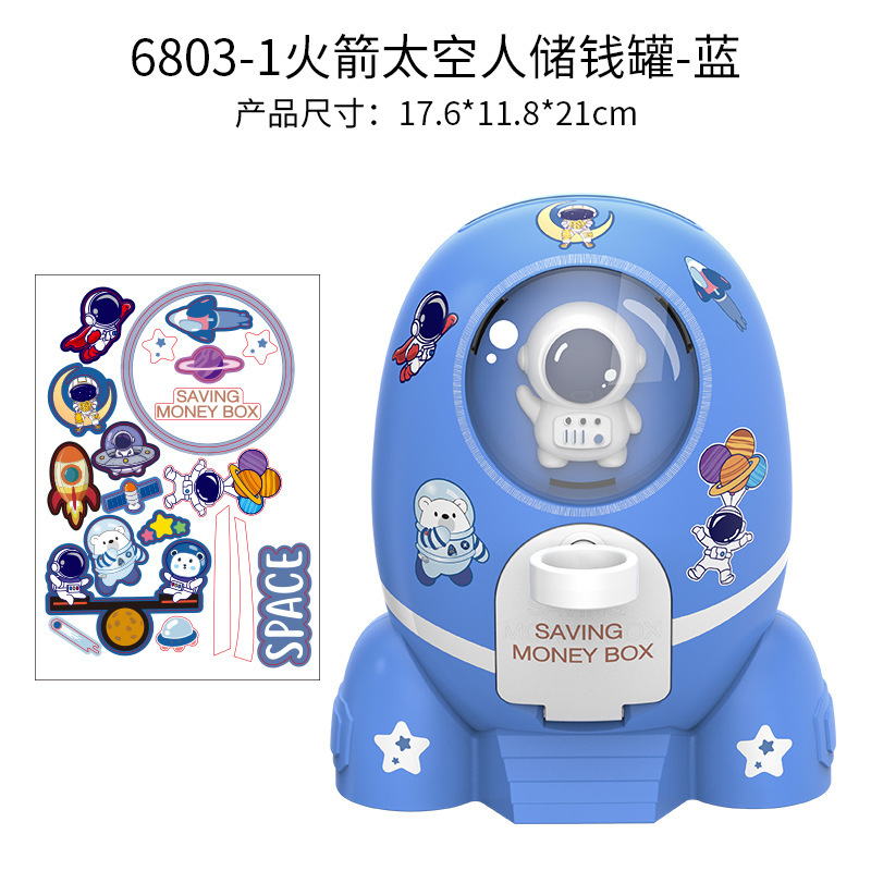 新款火箭太空人储钱罐卡通贴纸手动存币可投硬币儿童存钱罐玩具