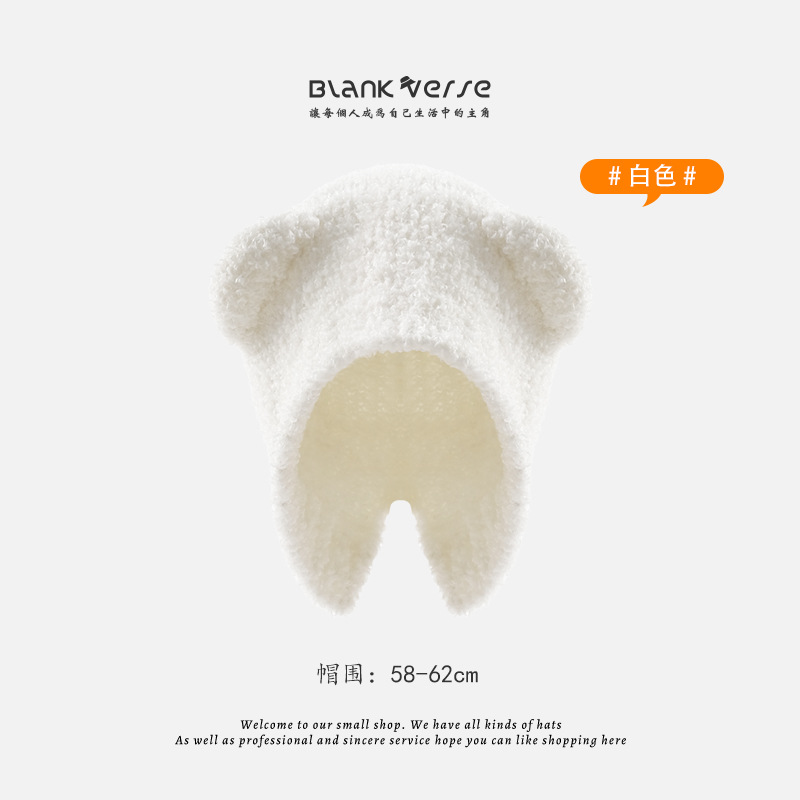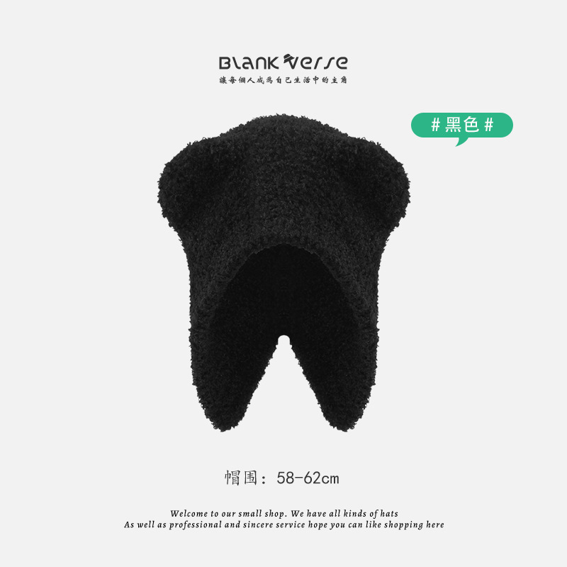 韩版秋冬潮流小熊耳朵毛绒帽子女可爱加绒保暖护耳帽柔软出游冬帽