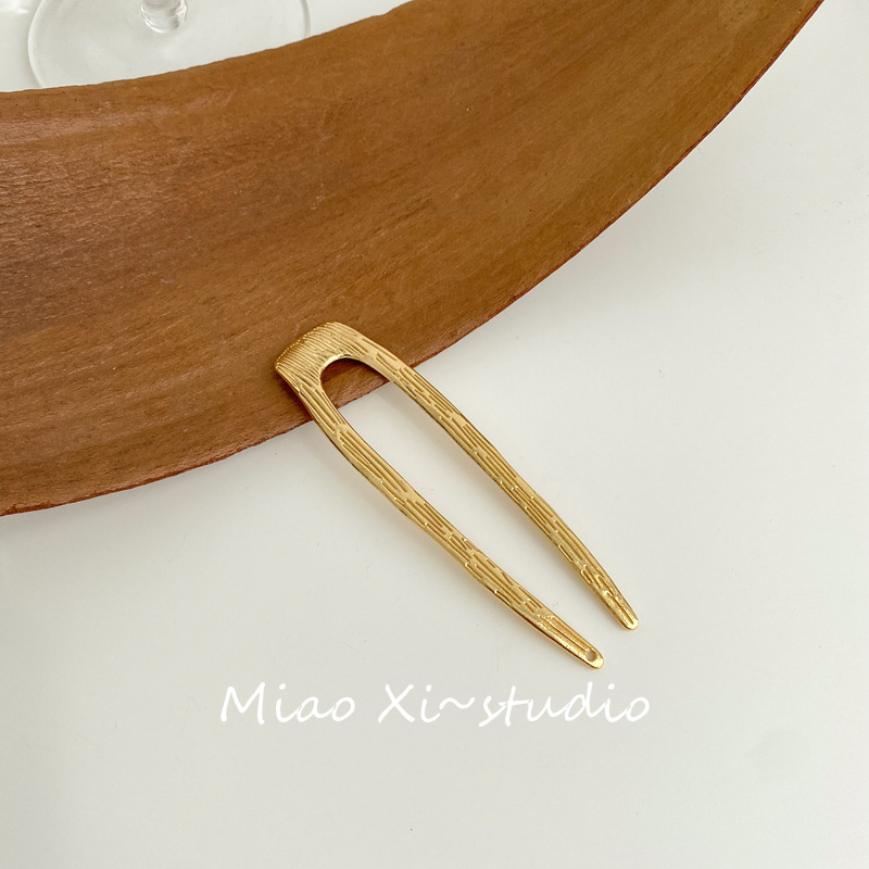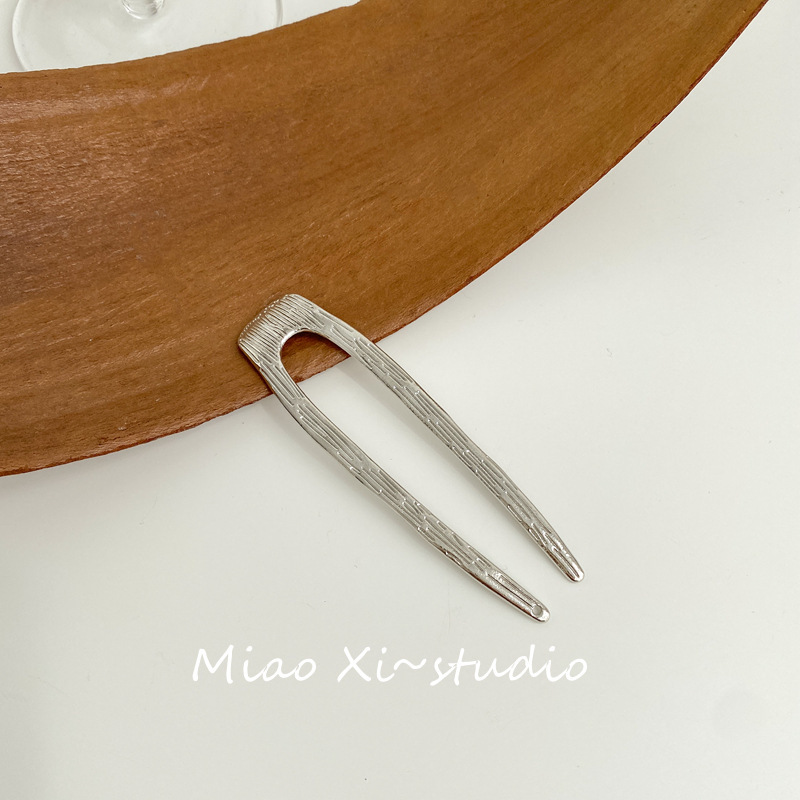 韩式金属u形发簪简约现代盘发簪子高级感纹理发插发饰新款