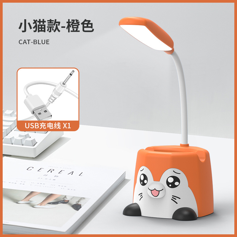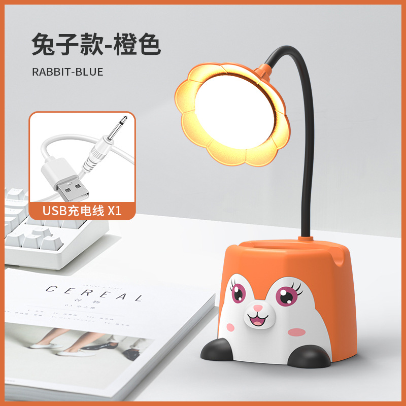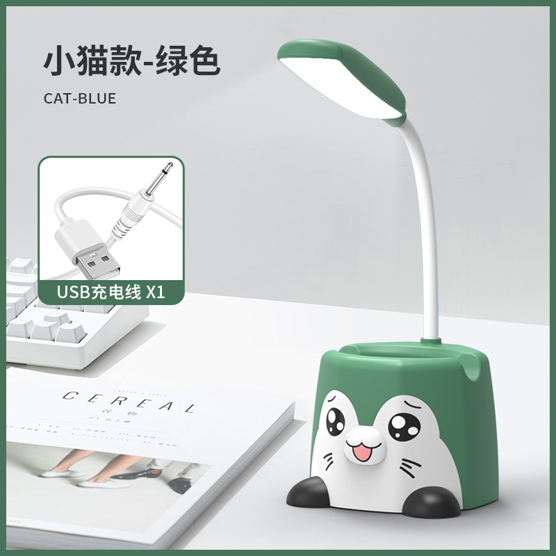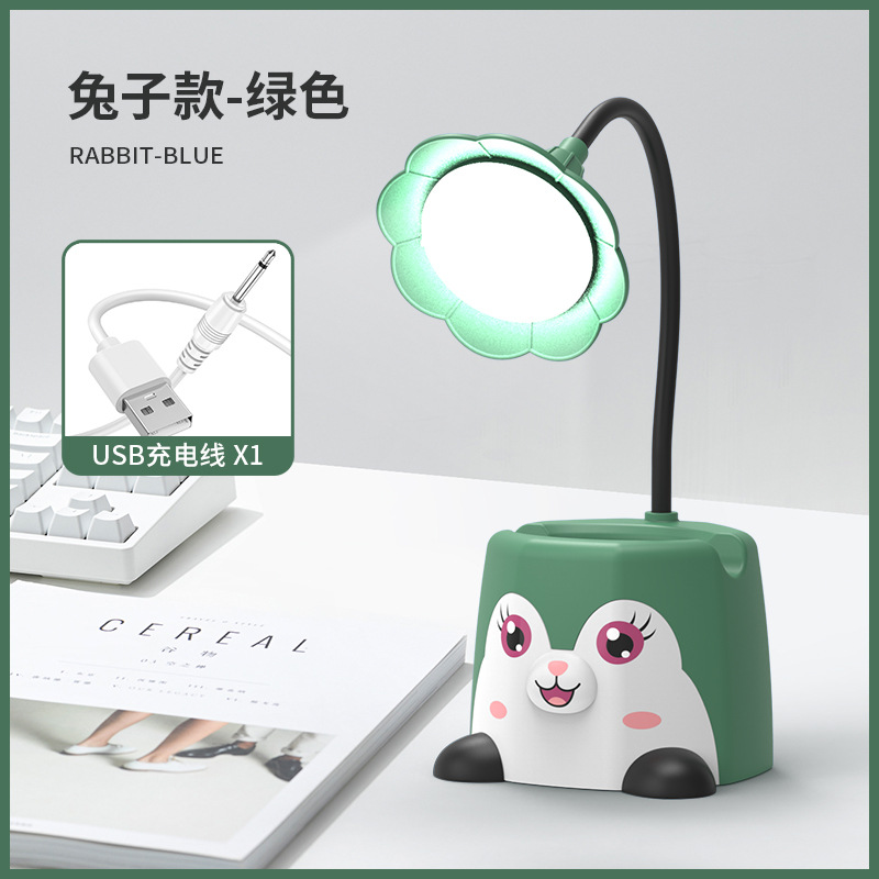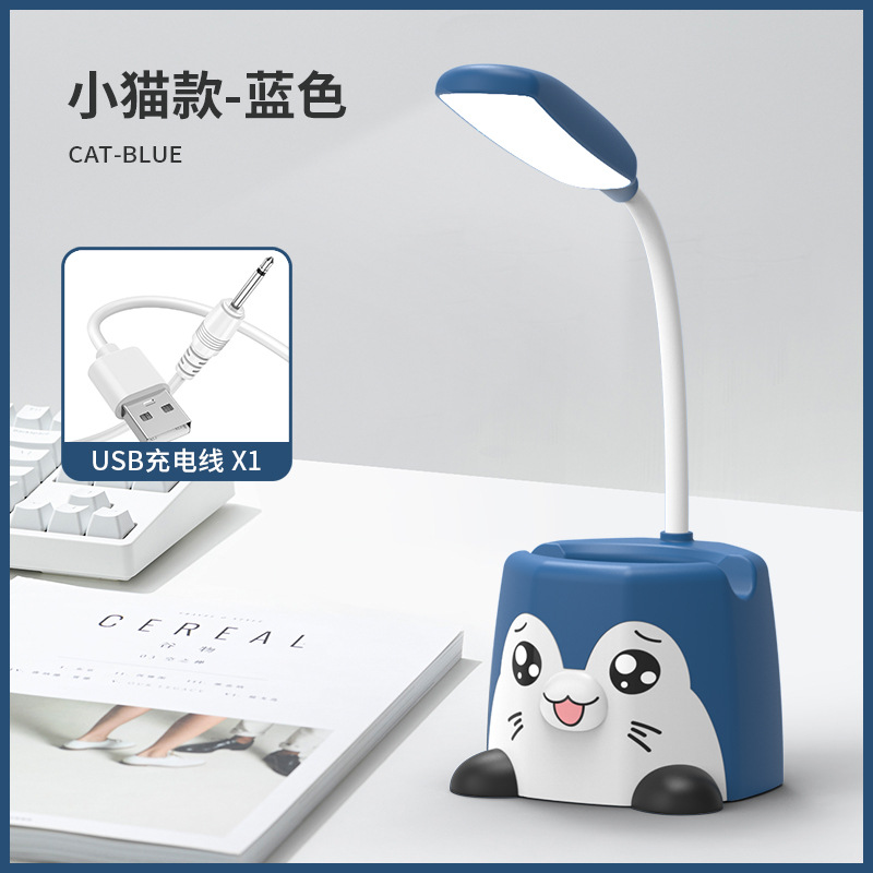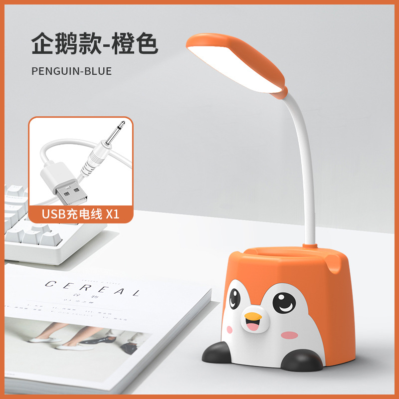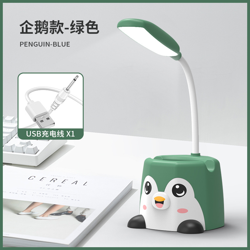 新品卡通笔筒台灯可放手机架企鹅台灯萌兔小猫桌面小夜灯USB充电