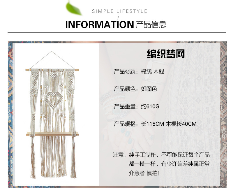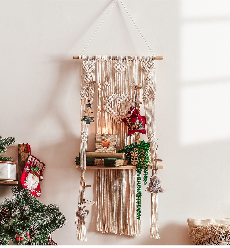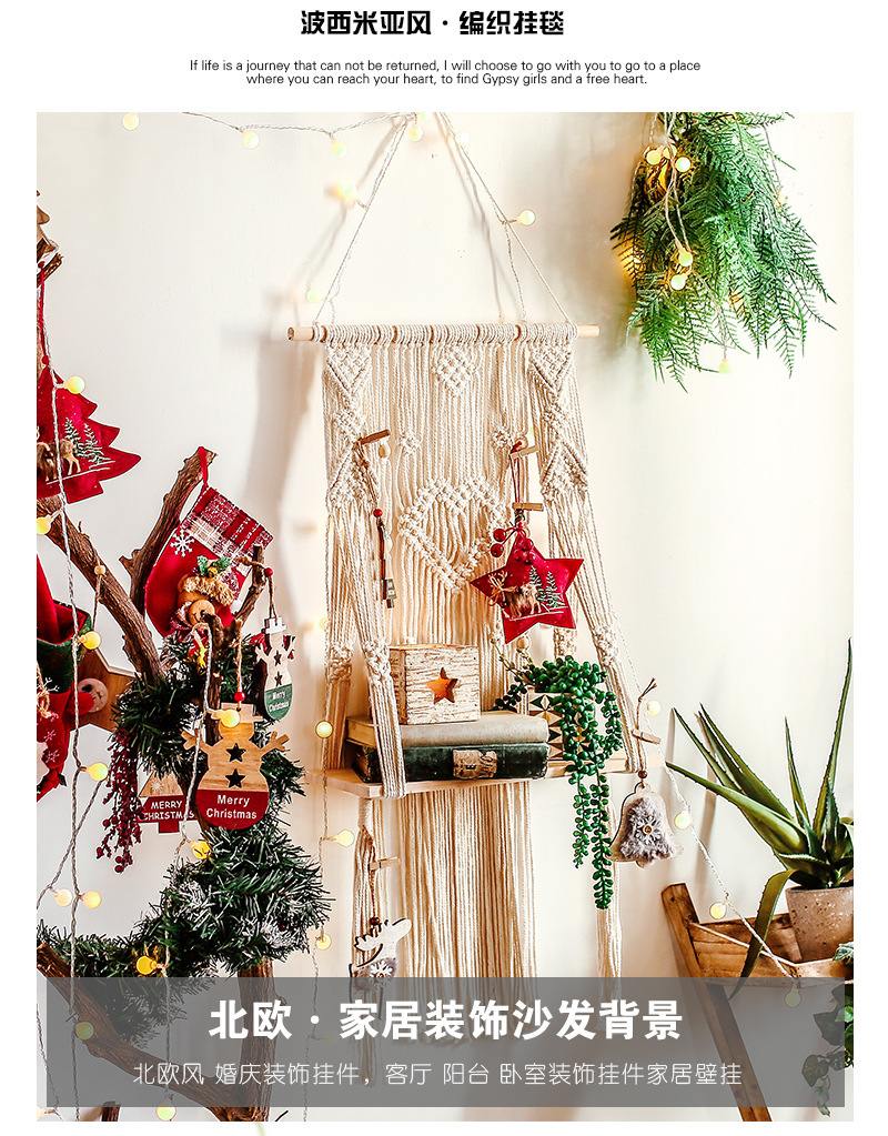 隔板编织挂毯置物架北欧卧室书房客厅壁挂墙饰ins风墙壁挂饰GT126