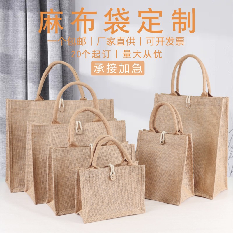厂家现货批发黄麻手提袋化妆品购物袋时尚麻布包亚麻布袋可印logo