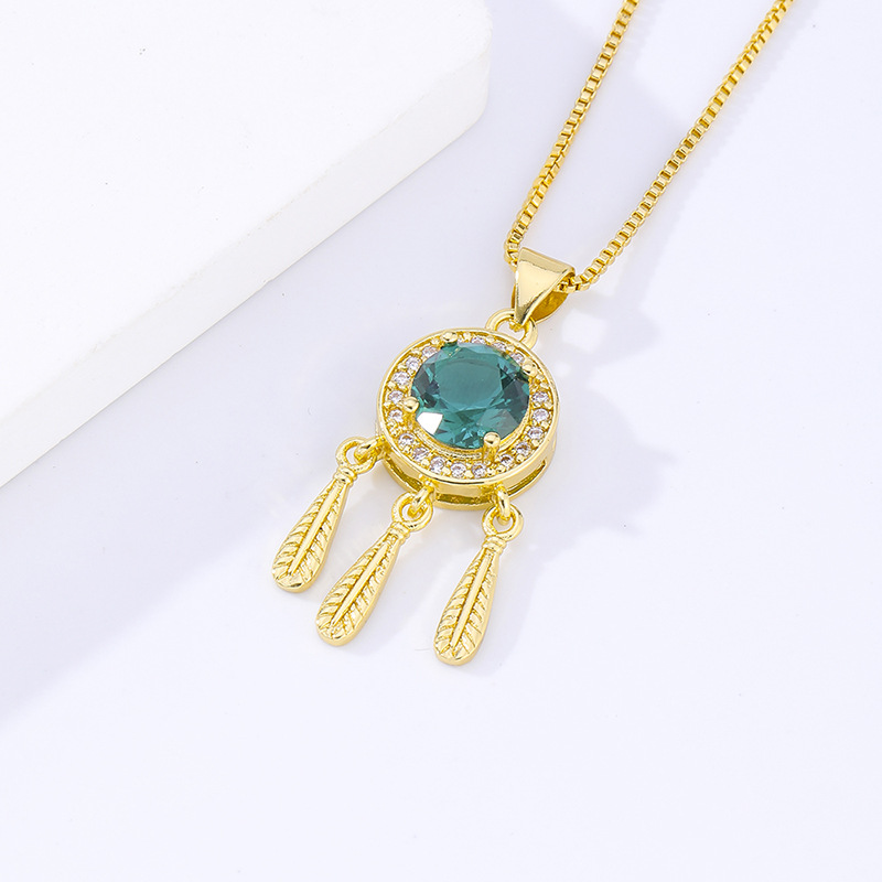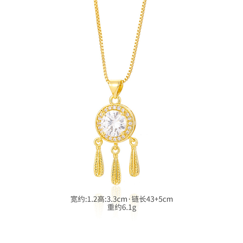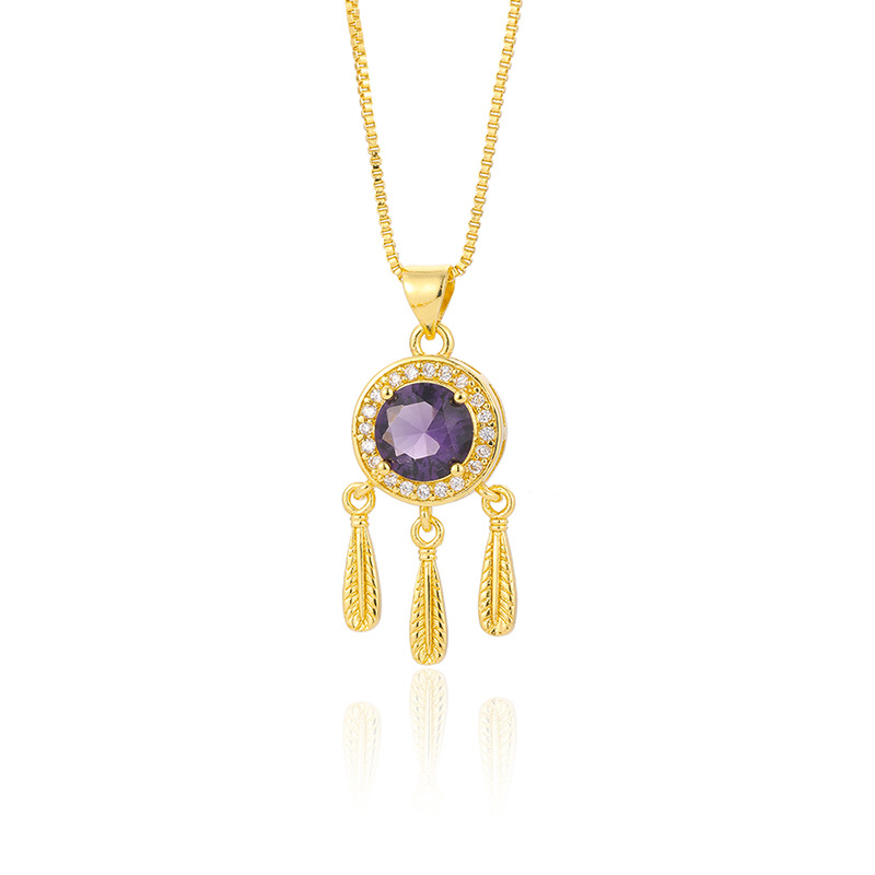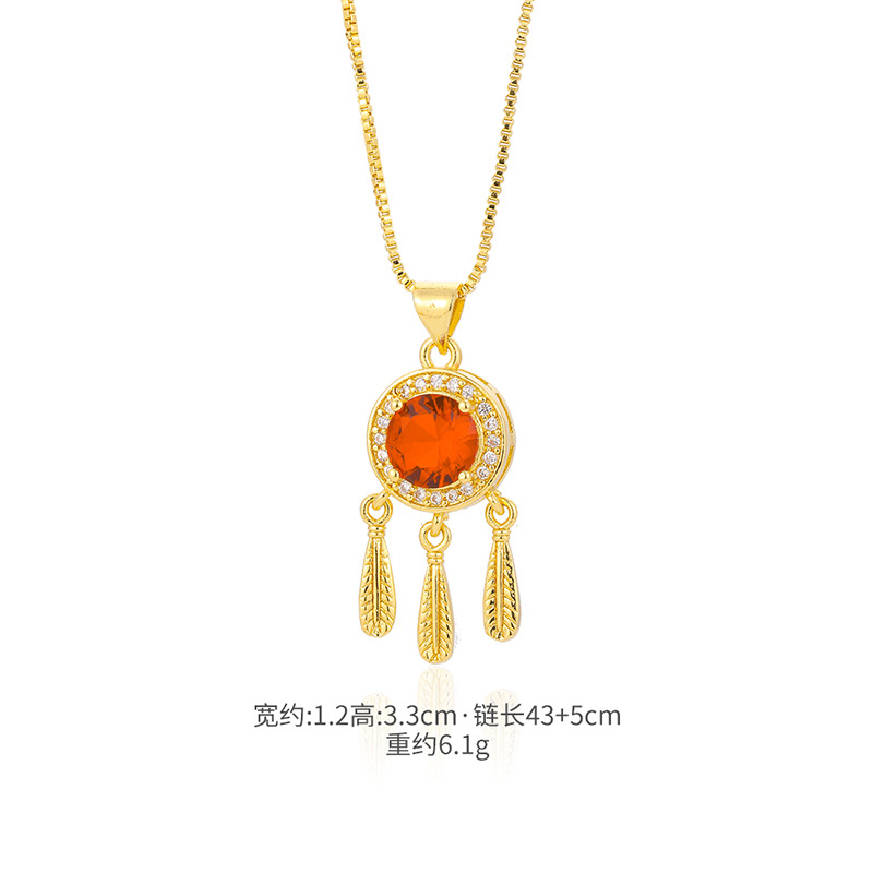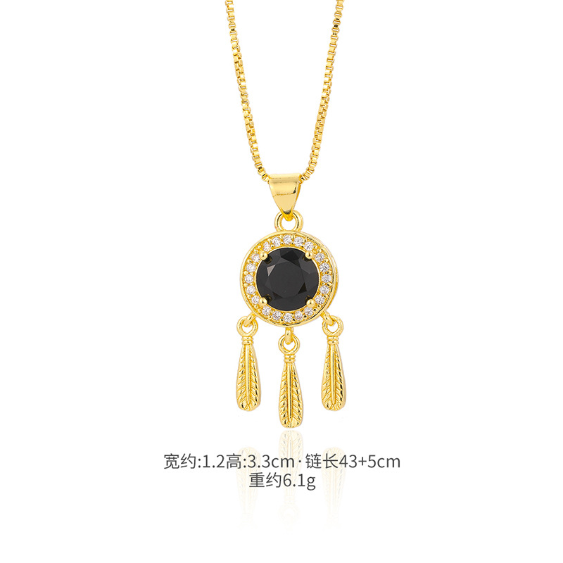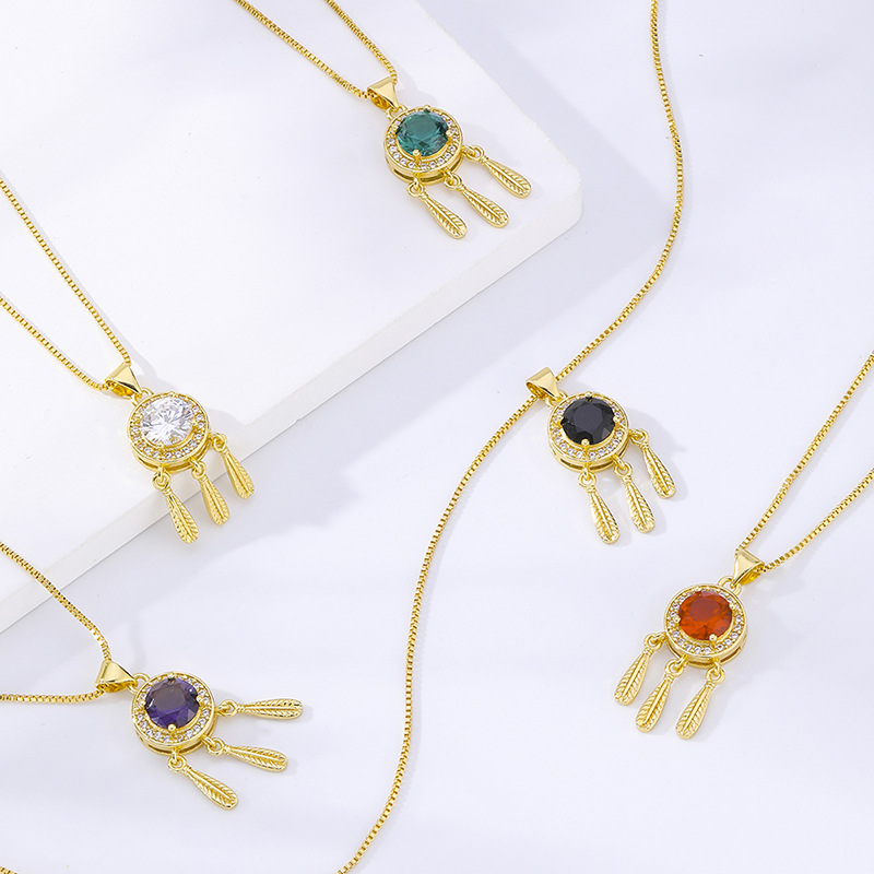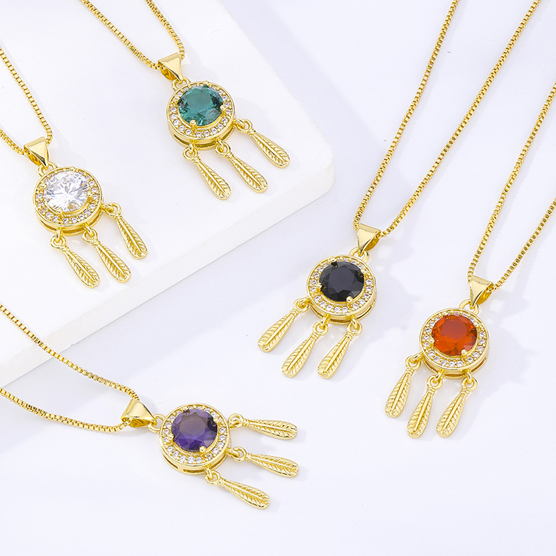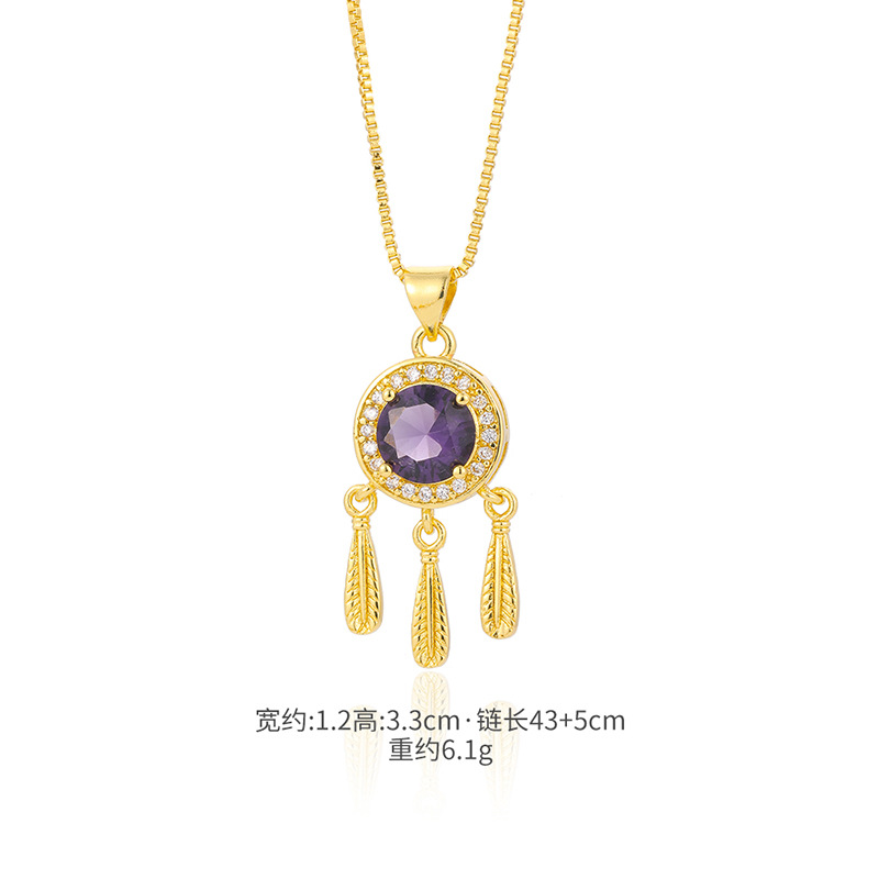 欧美彩色宝石流苏项链黄铜镀金大气高端捕梦网多色水晶锆石项饰女
