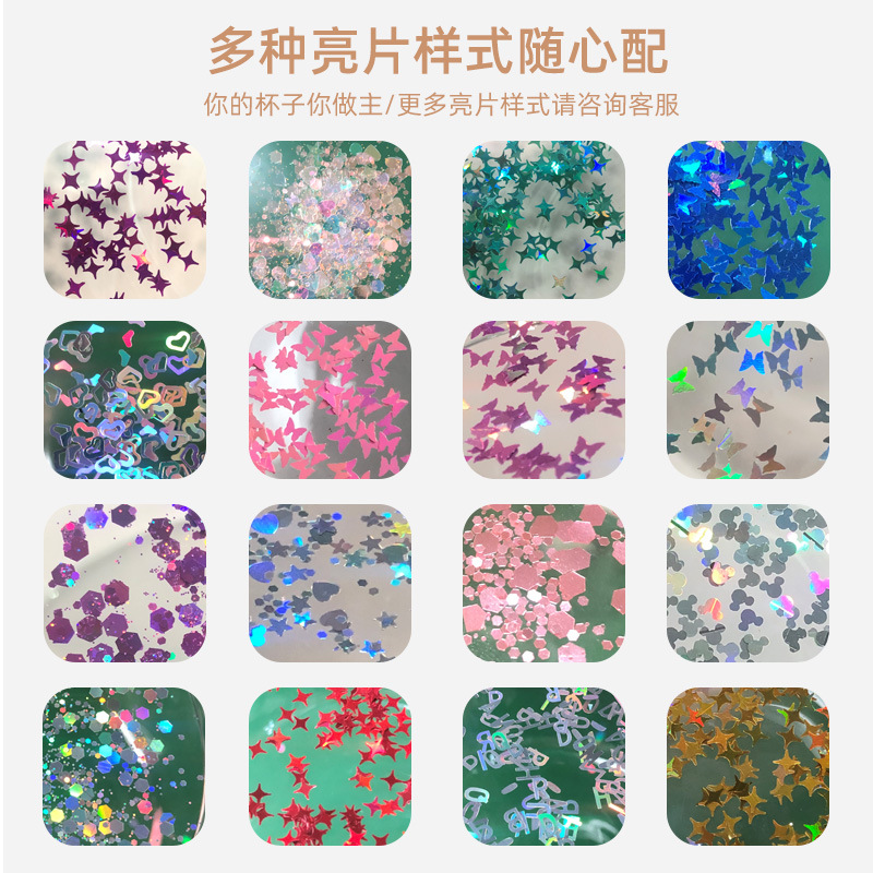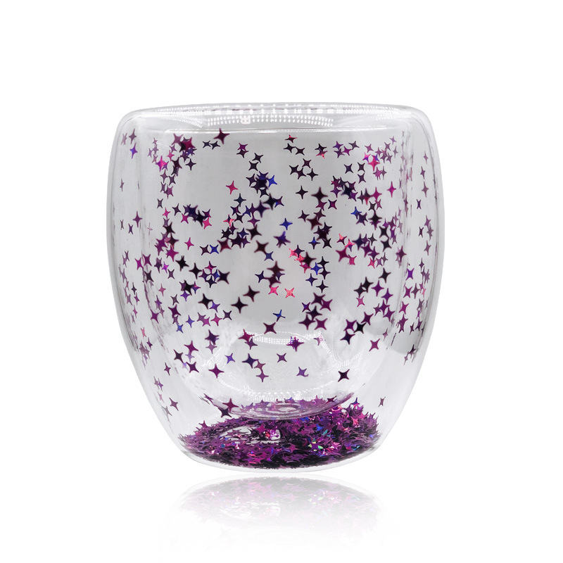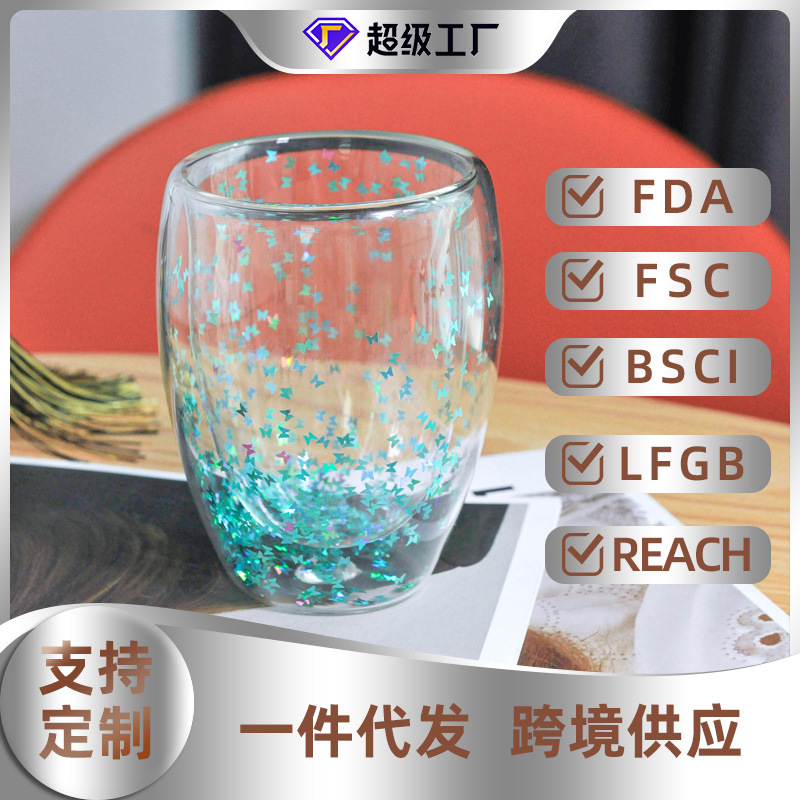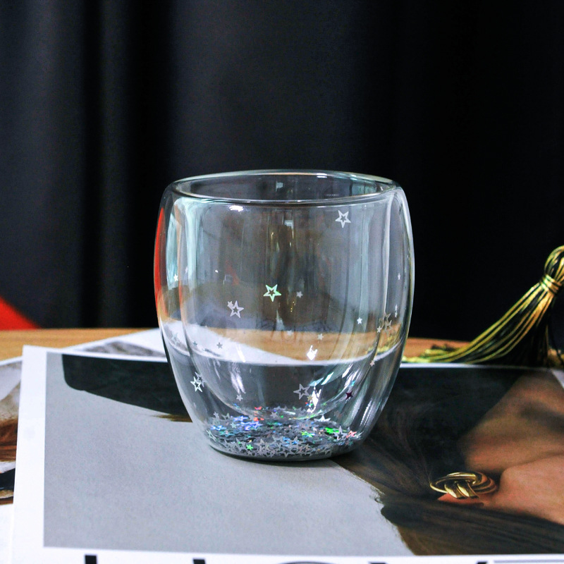 ins玻璃杯双层耐高温可加印logo创意个性亮片流沙果汁牛奶星空杯