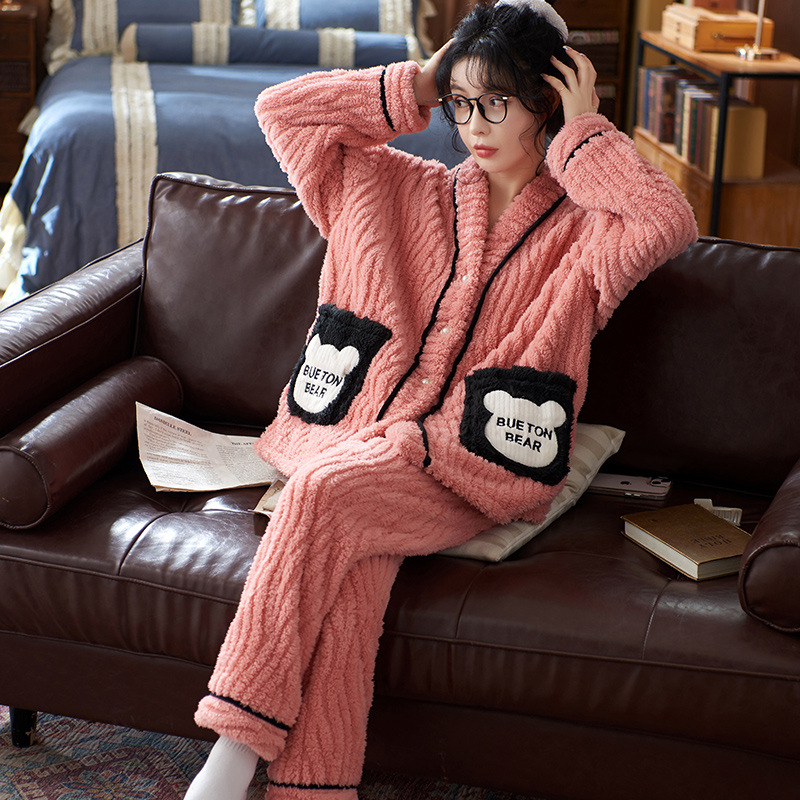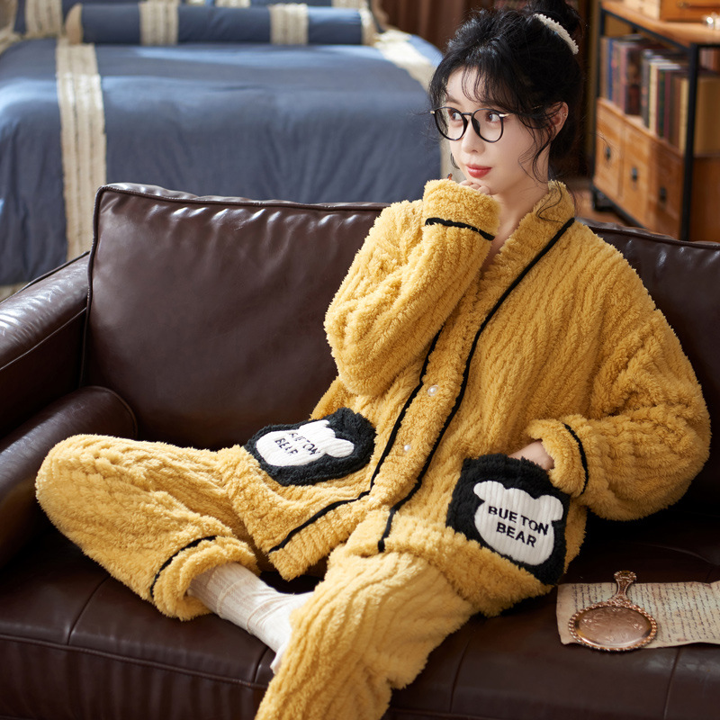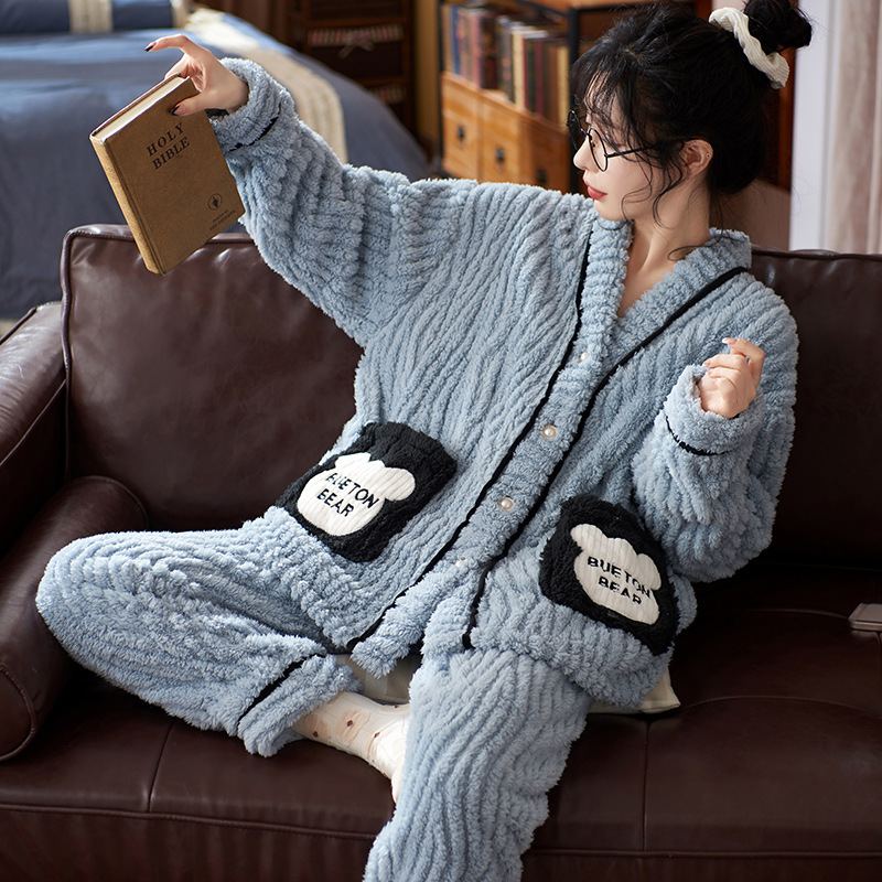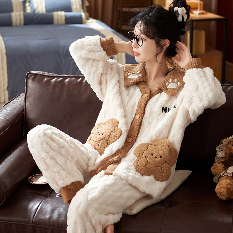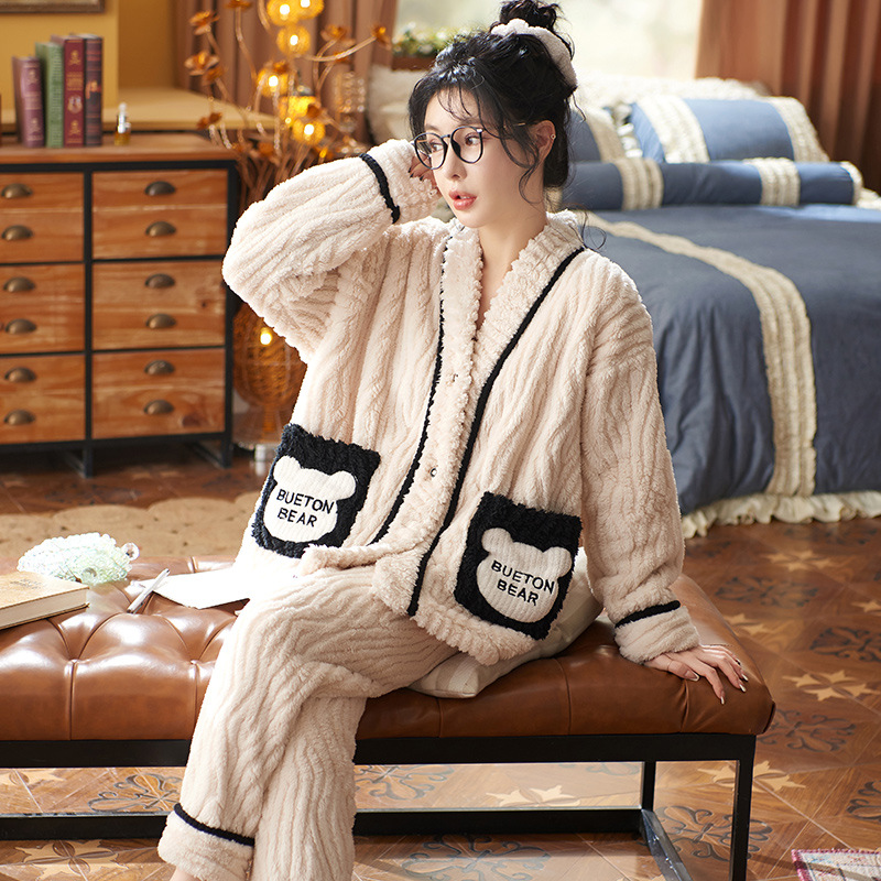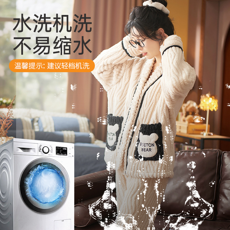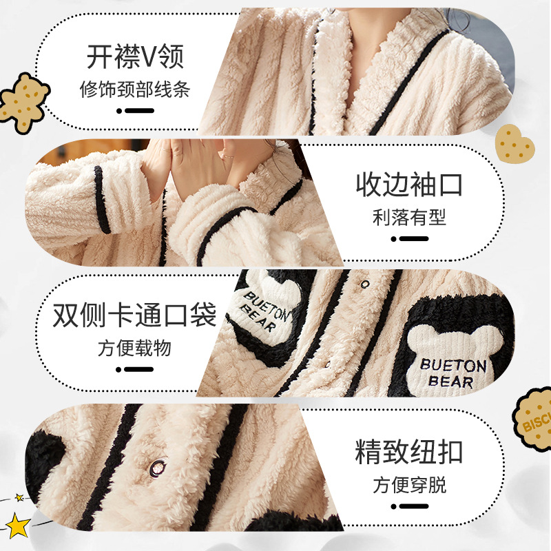 秋冬新款可爱珊瑚绒睡衣女 冬季女款加绒加厚可外穿大码家居服