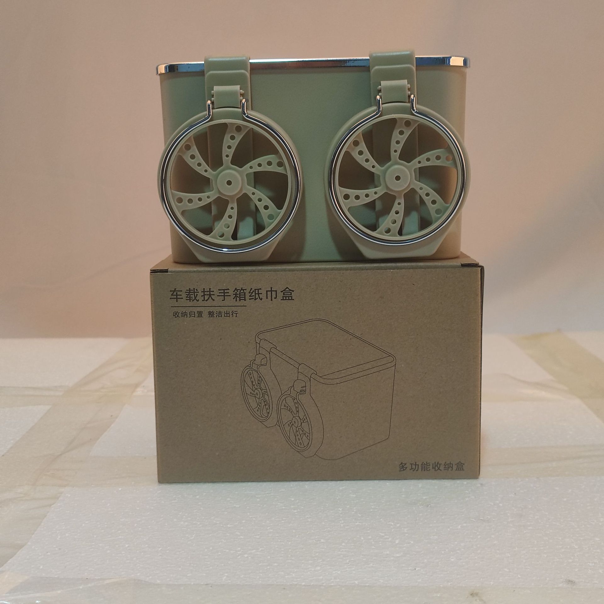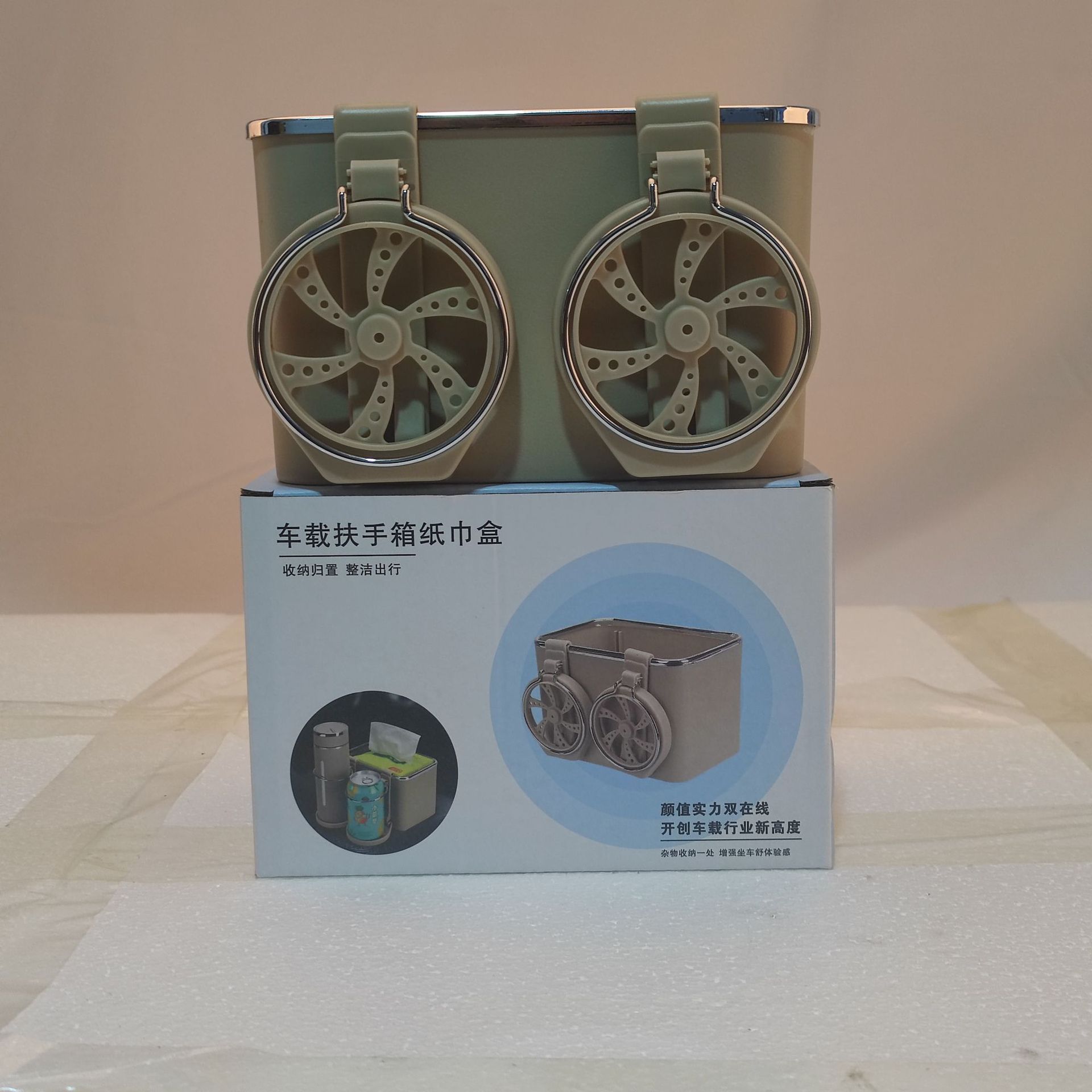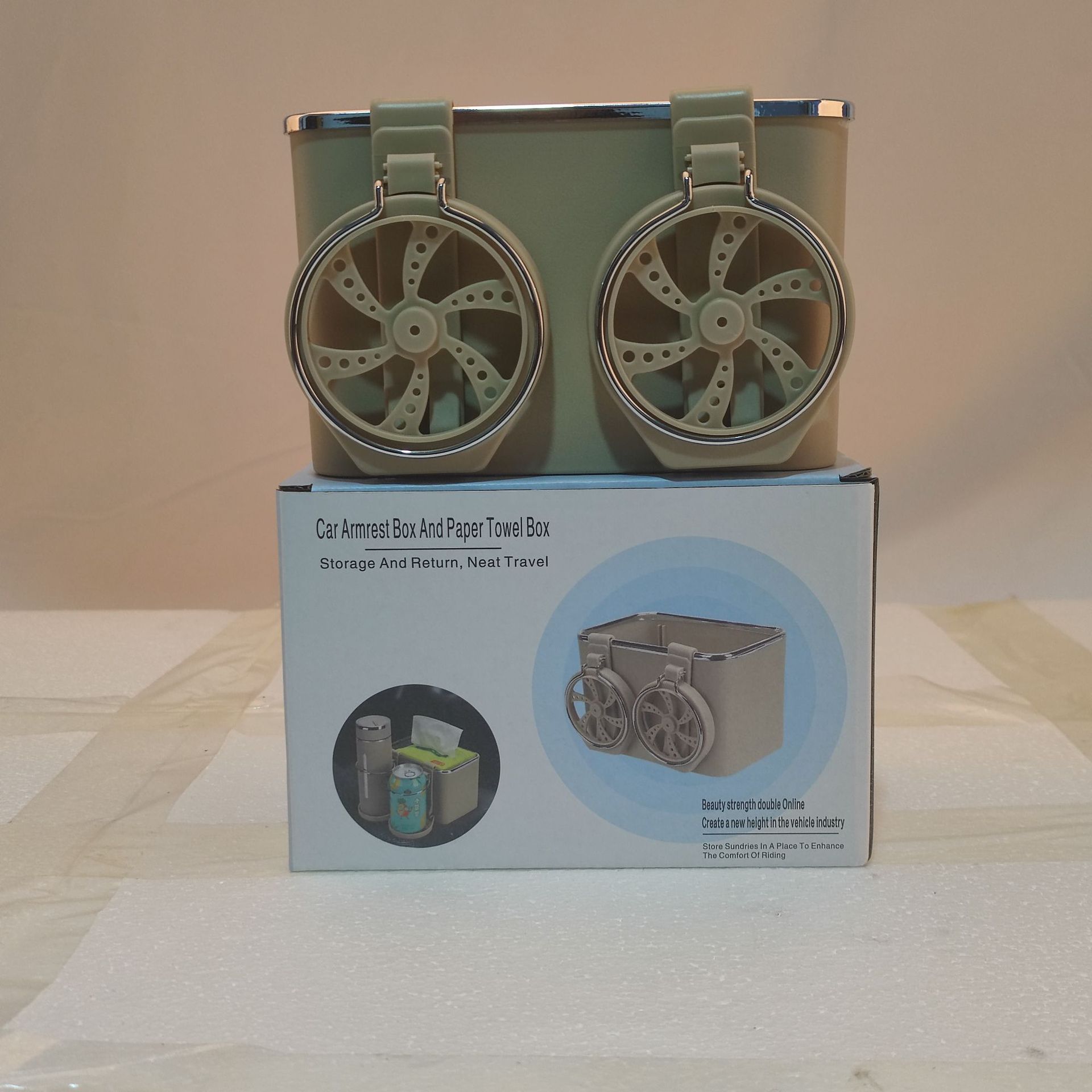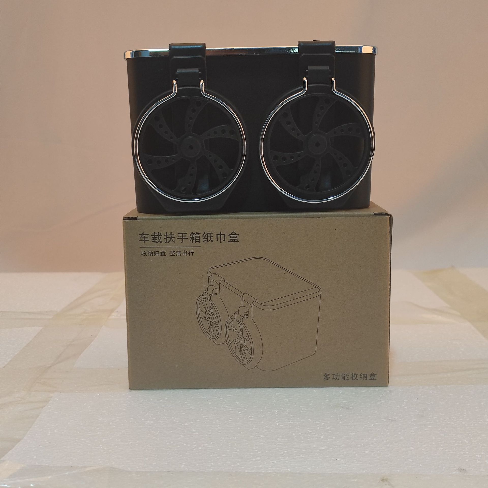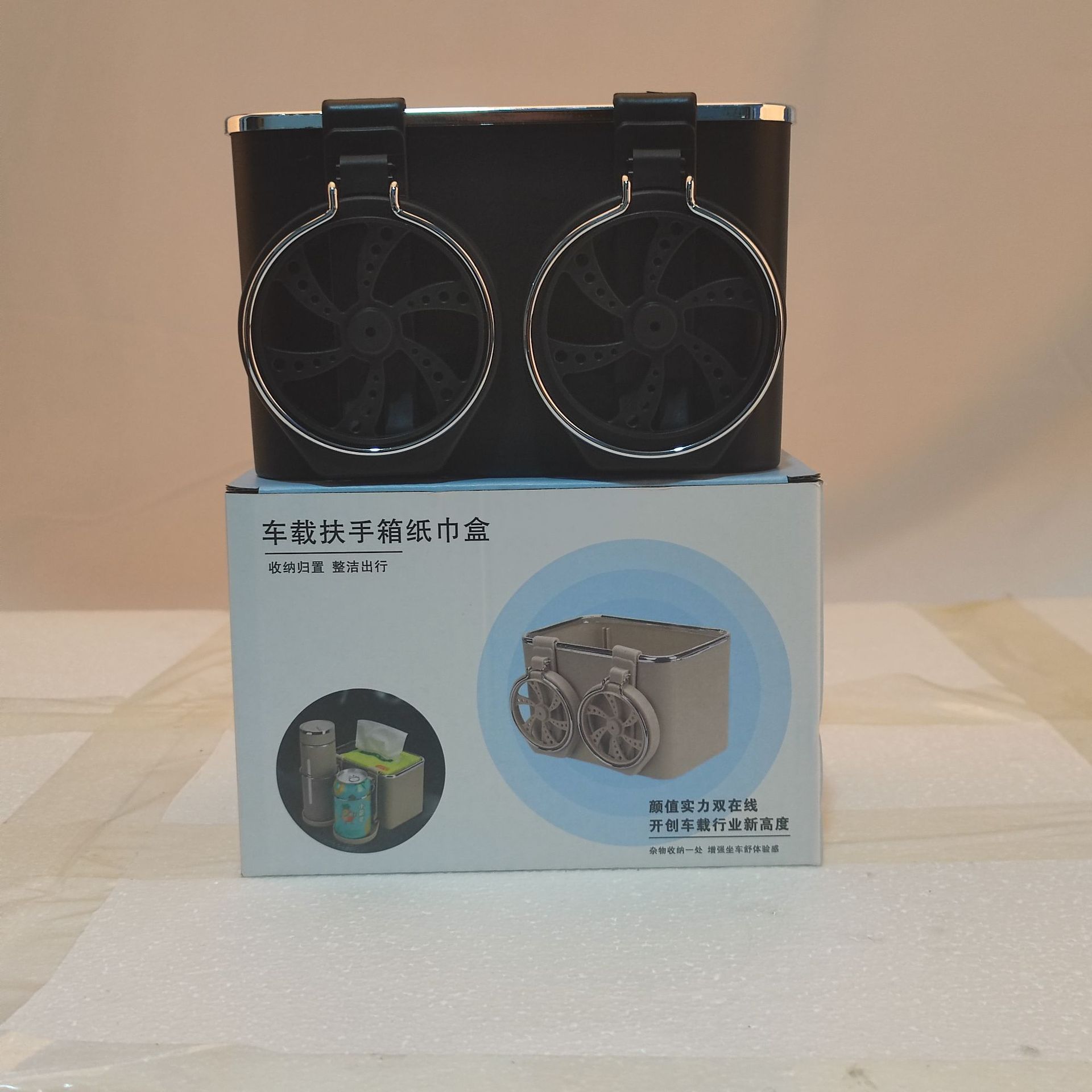 车载纸巾盒带杯架多功能置物架车用创意扶手箱车载收纳盒折叠杯架