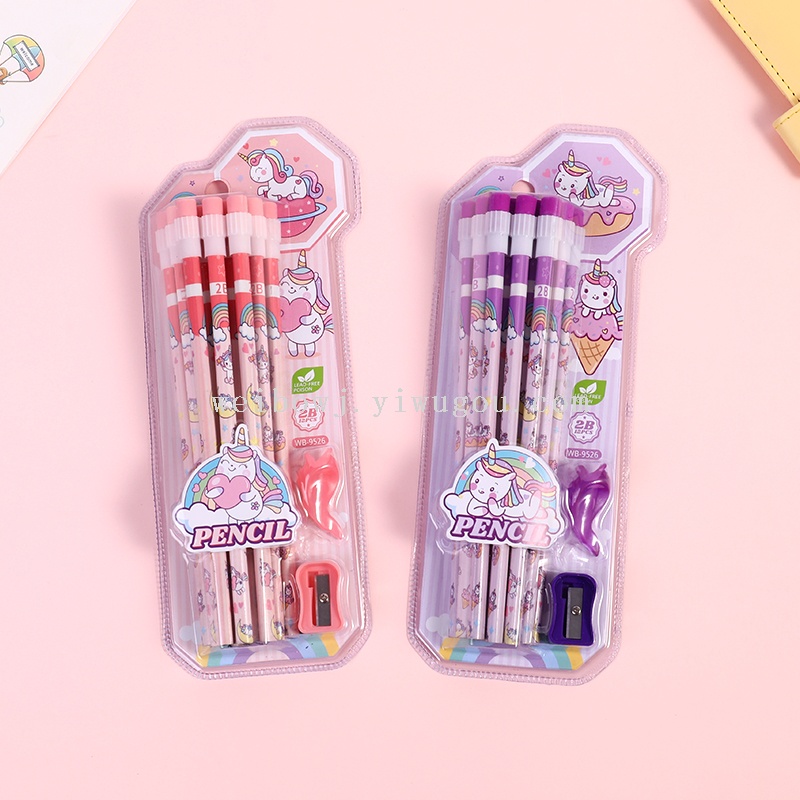weibo炜搏卡通12支盒装HB铅笔学生用品铅笔橡皮素描文具奖品毕业