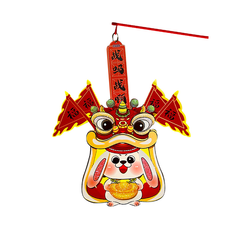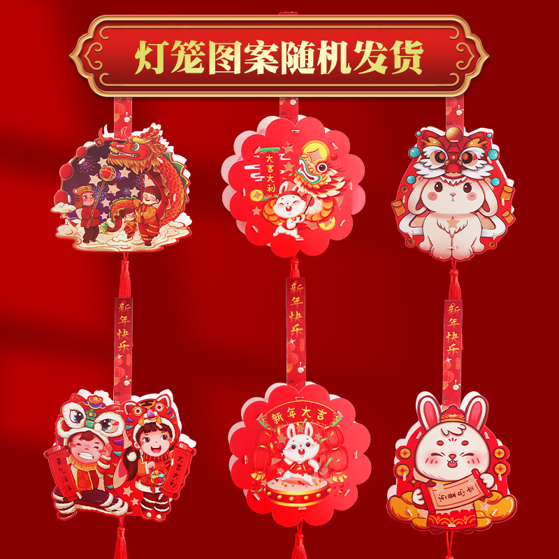 2023新款兔年发光投影灯笼 儿童DIY手提走马灯卡通国潮纸灯笼批发