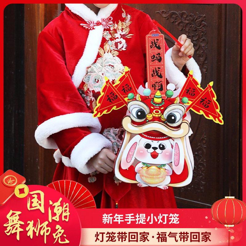 新款国潮兔年LED发光手提灯笼 DIY手工投影灯笼 元宵过年儿
