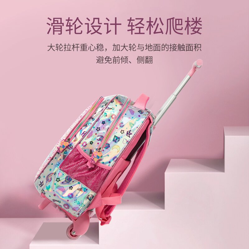 跨境新款珠片可爱卡通小学生女16寸减负拉杆书包儿童幻彩三件套