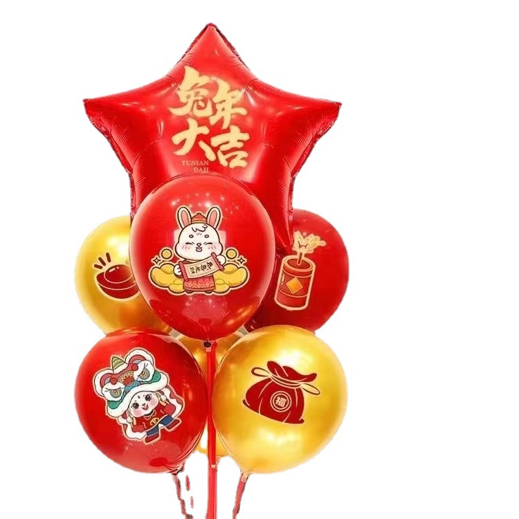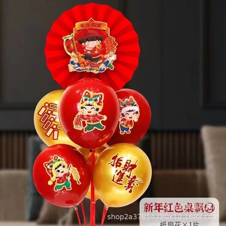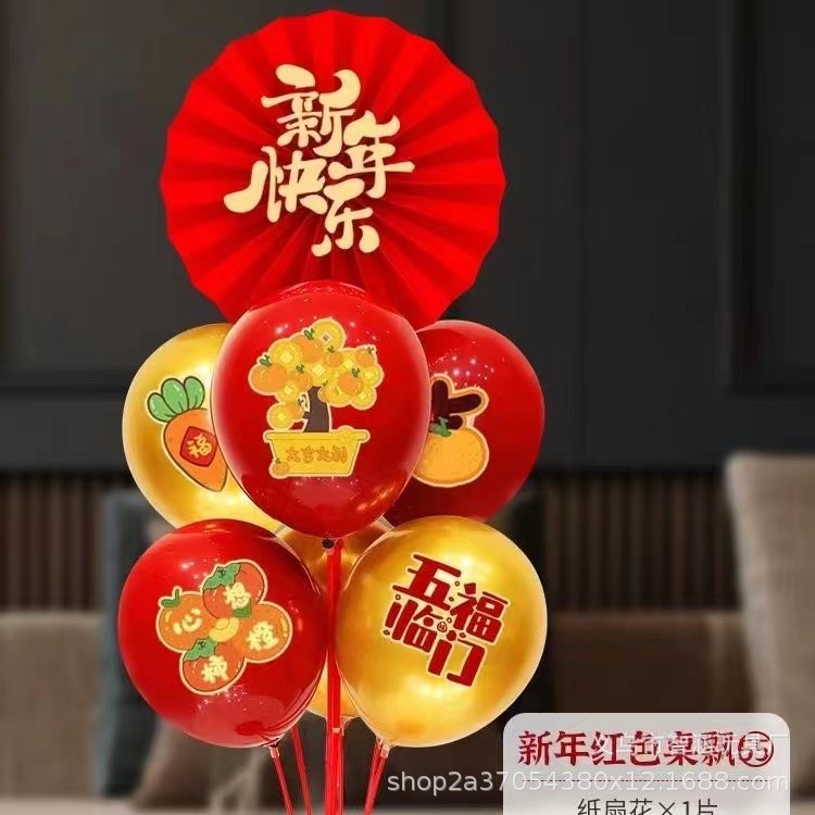新年红色桌飘门店庆祝活动场景布置套装元旦气球新年装饰柜台装饰
