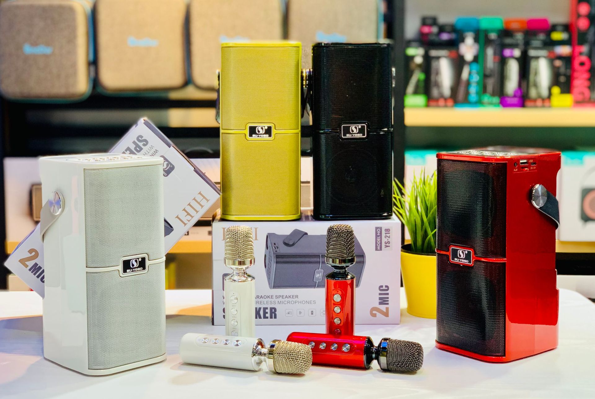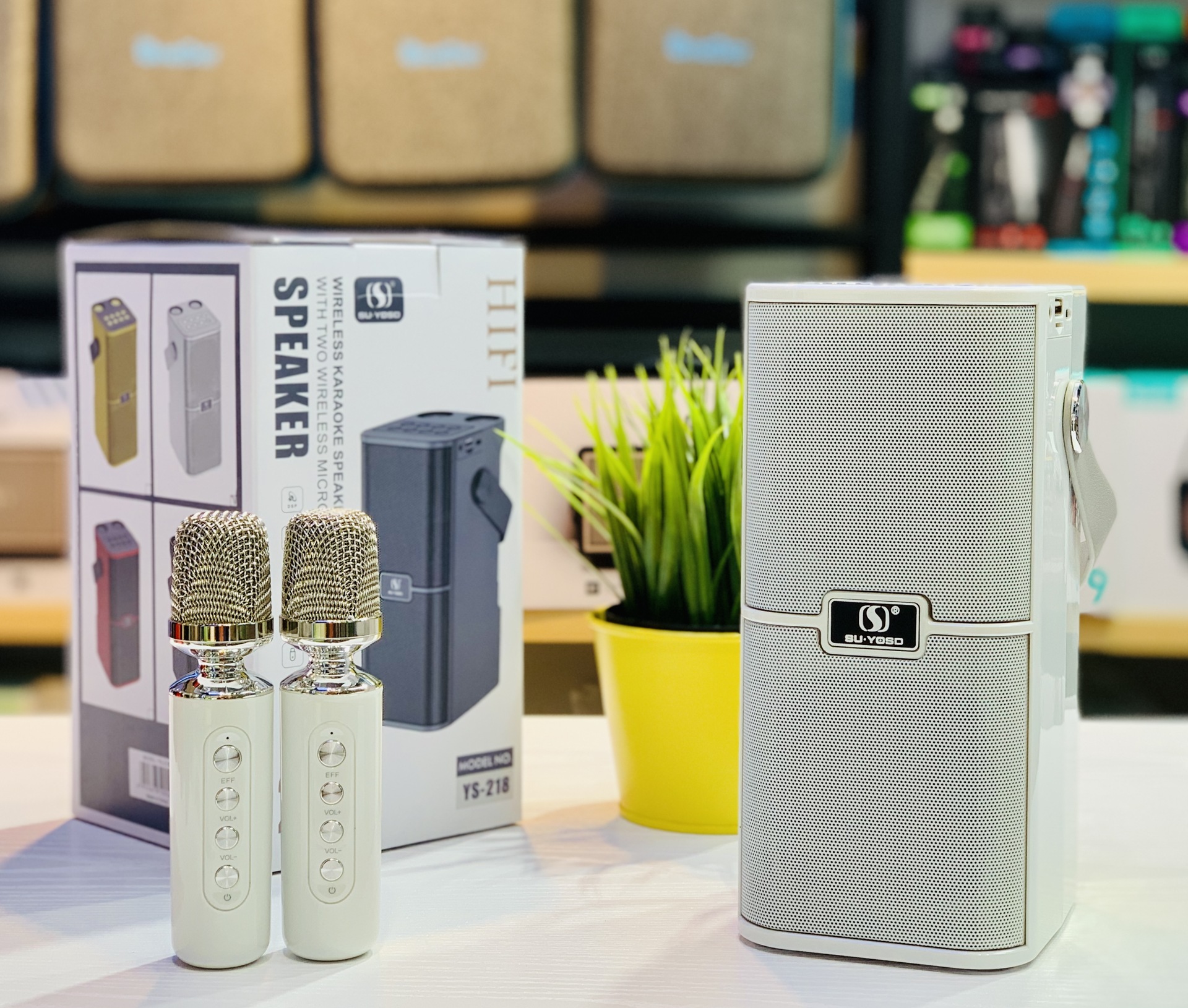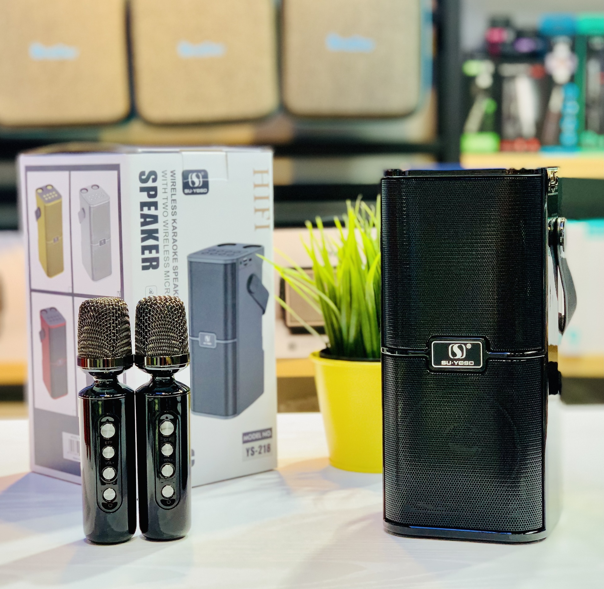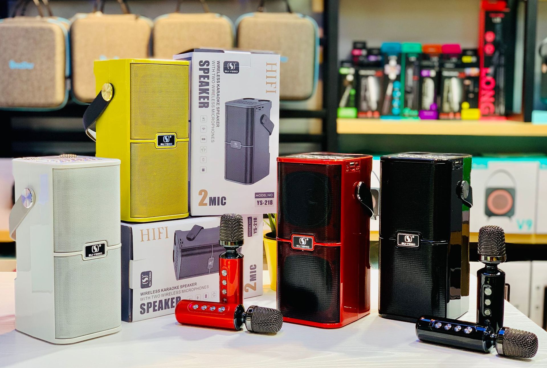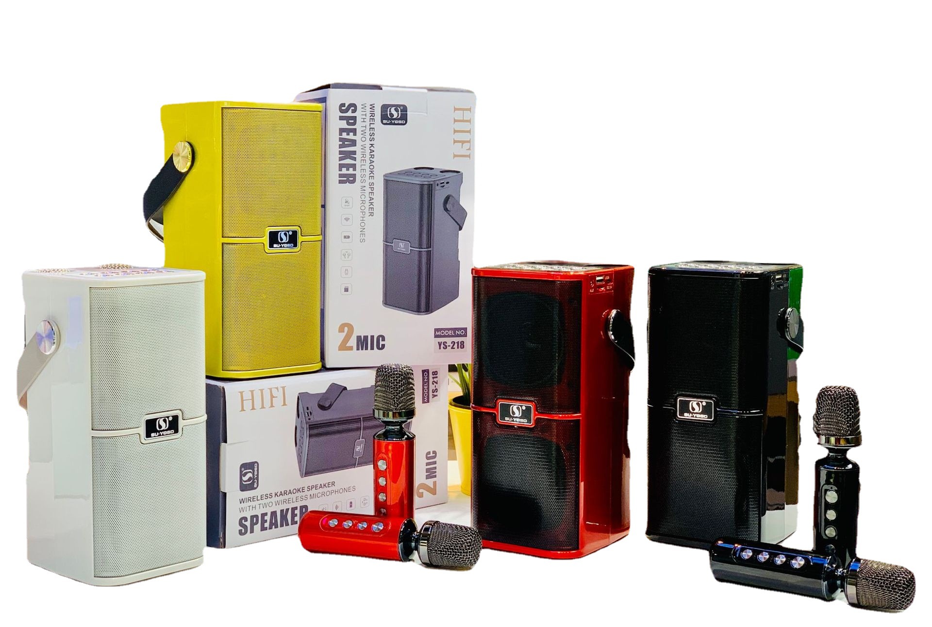 新款麦克风蓝牙音箱音壁双麦家用手提便携户外K歌宝对唱音响YS218
