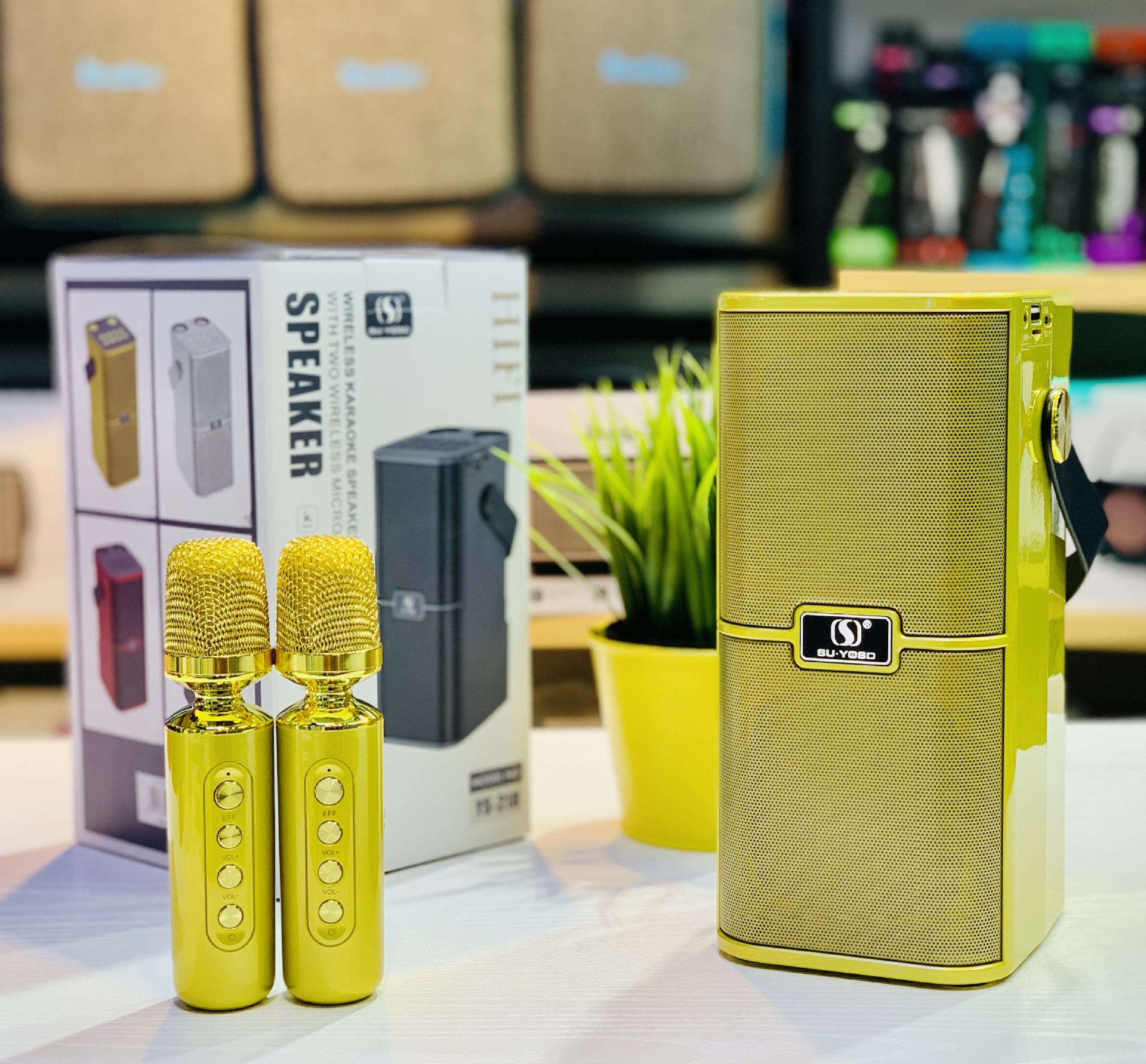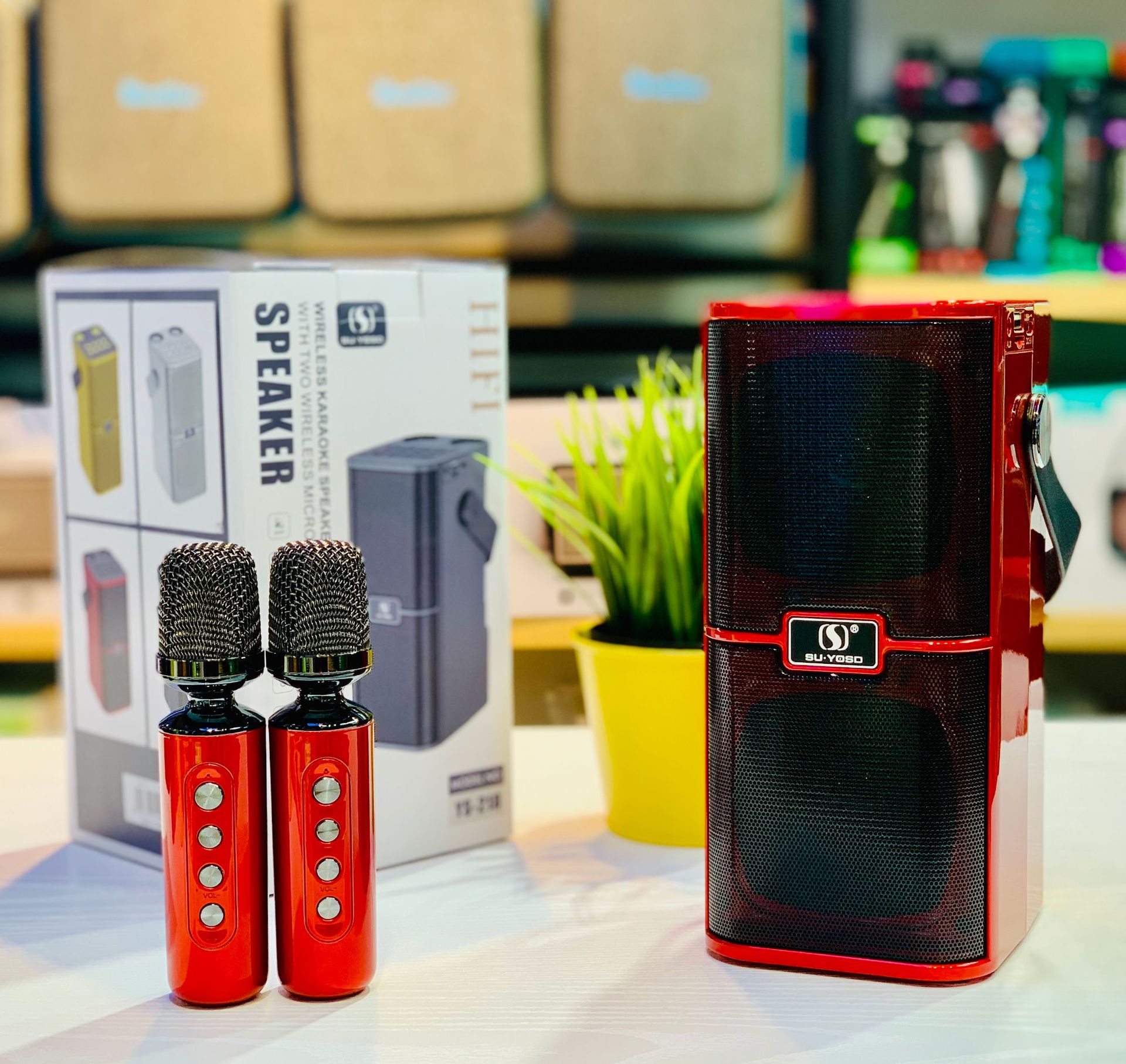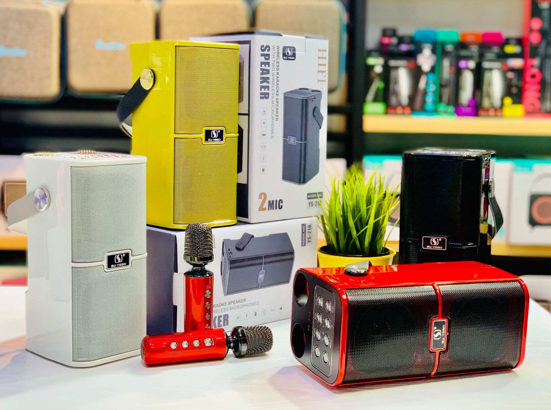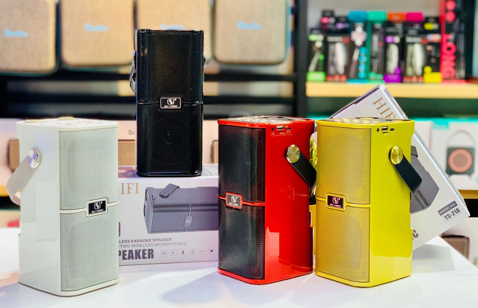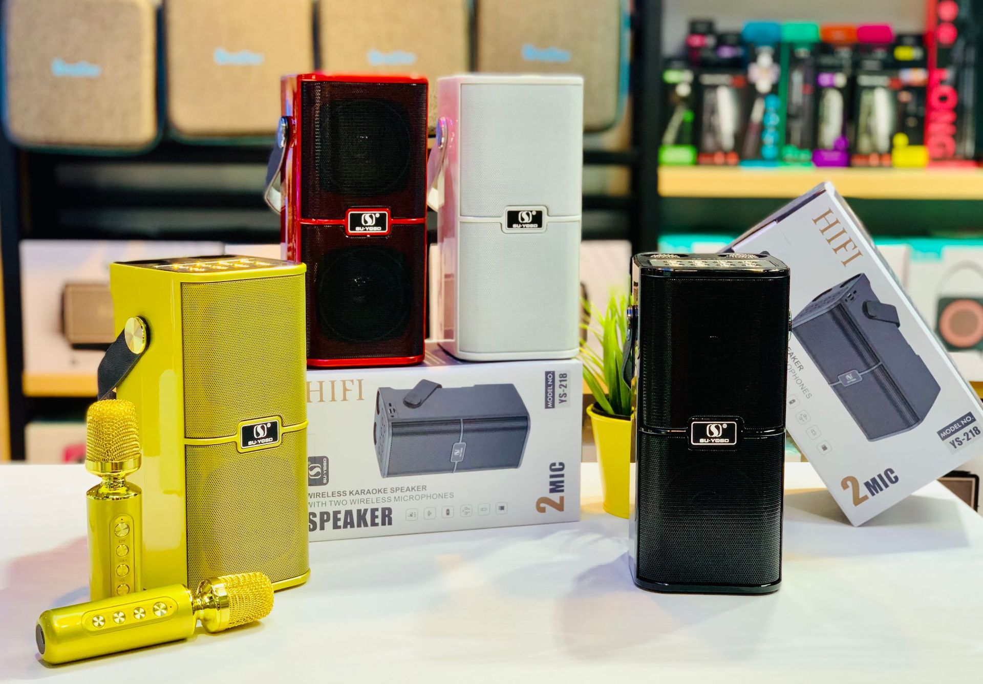 新款麦克风蓝牙音箱音壁双麦家用手提便携户外K歌宝对唱音响YS218