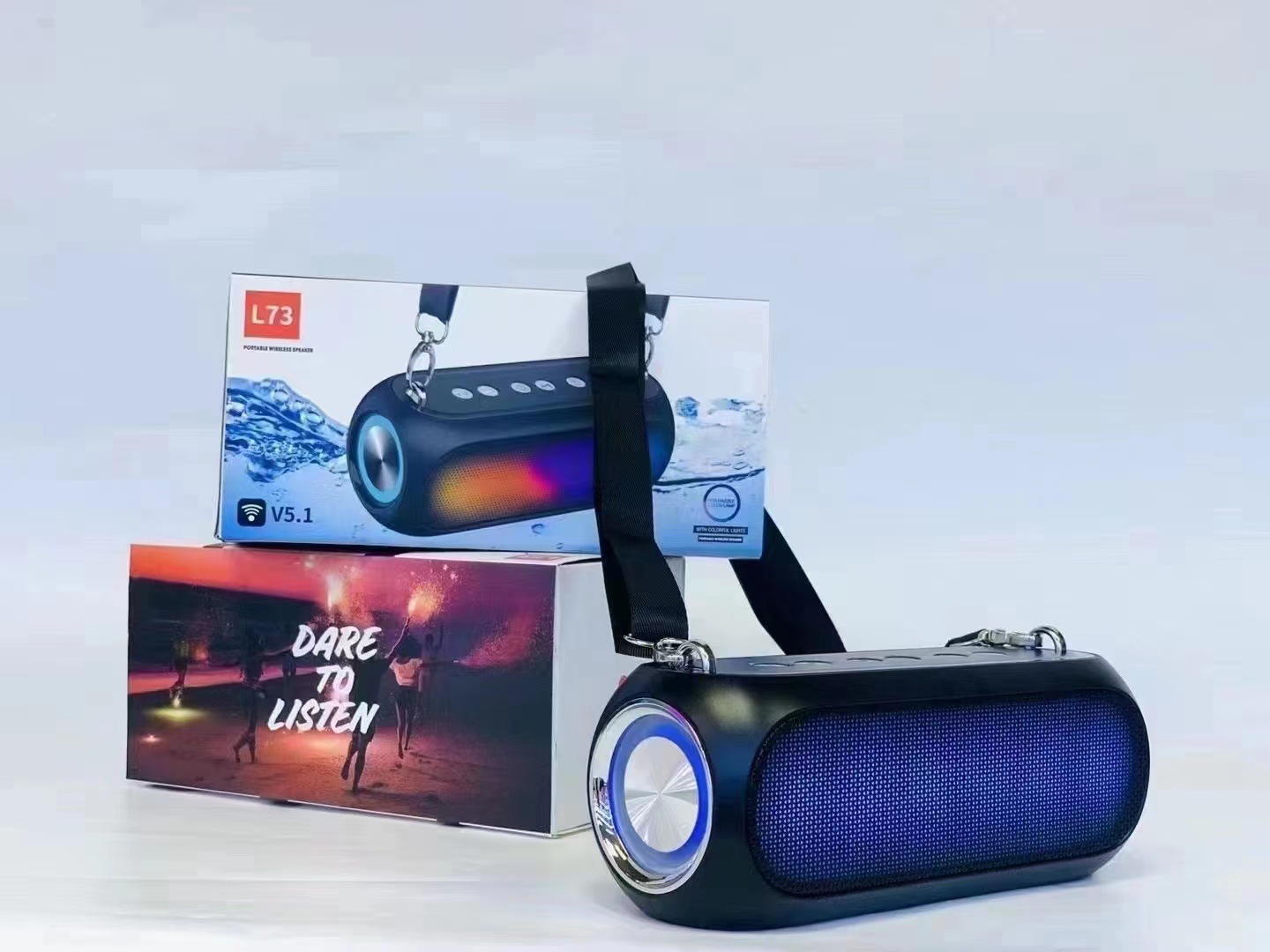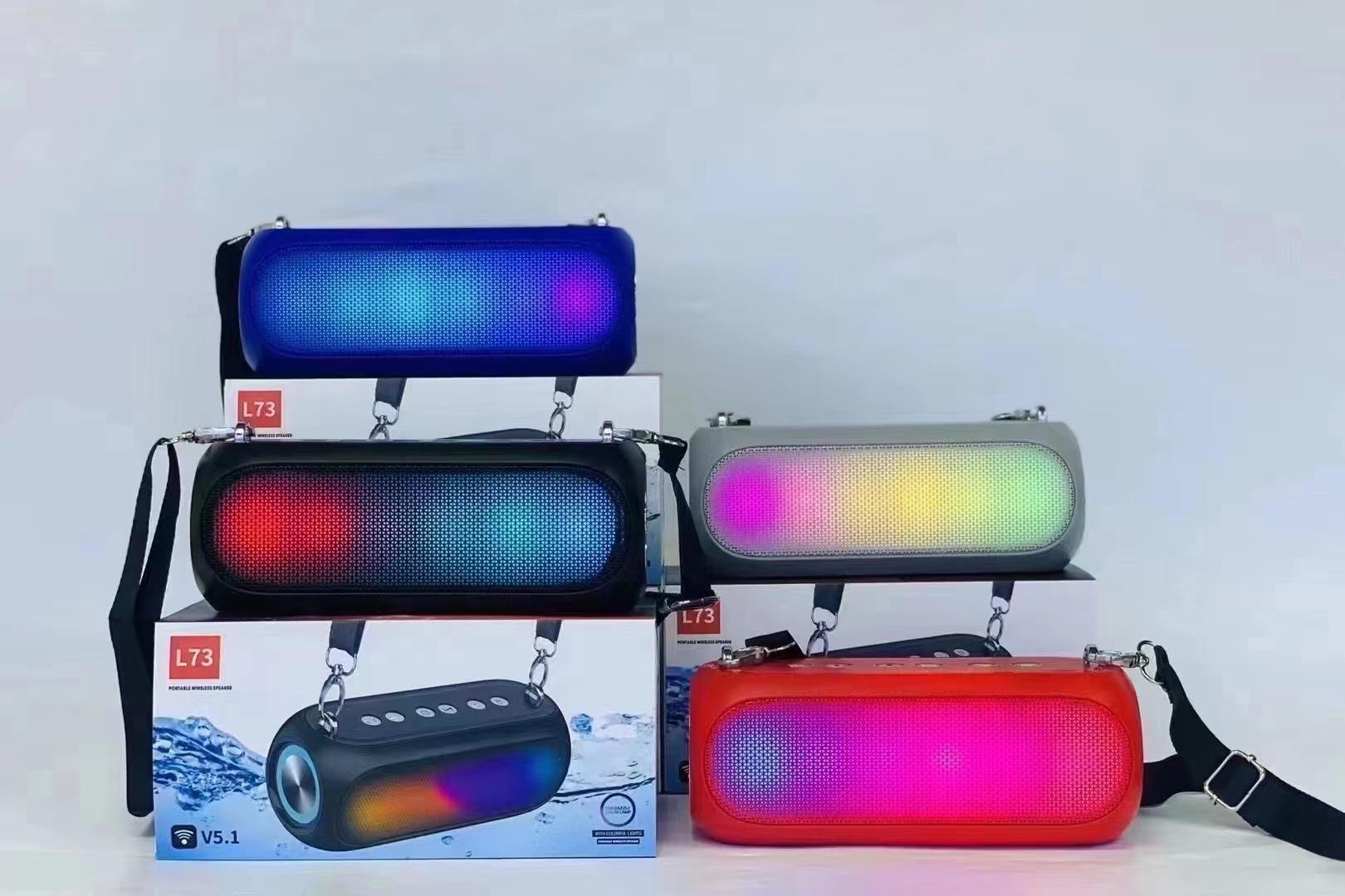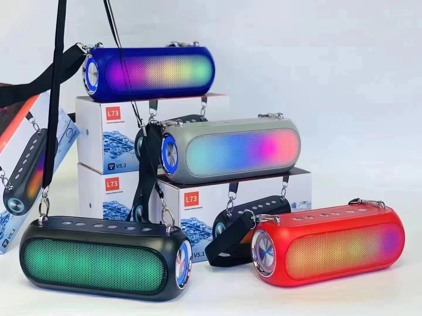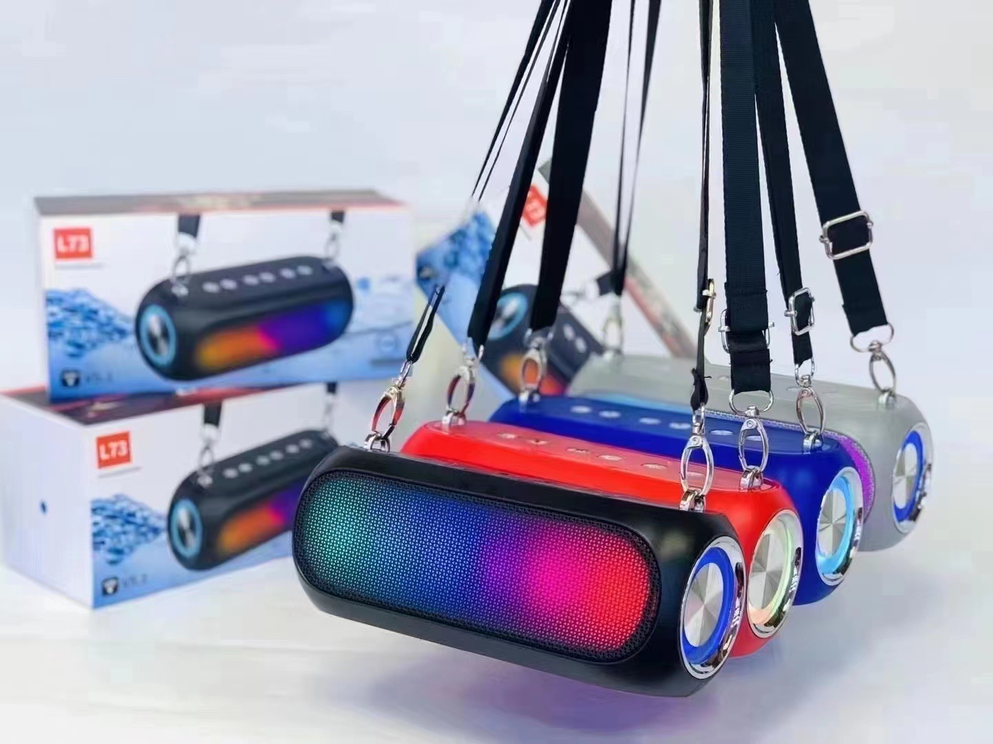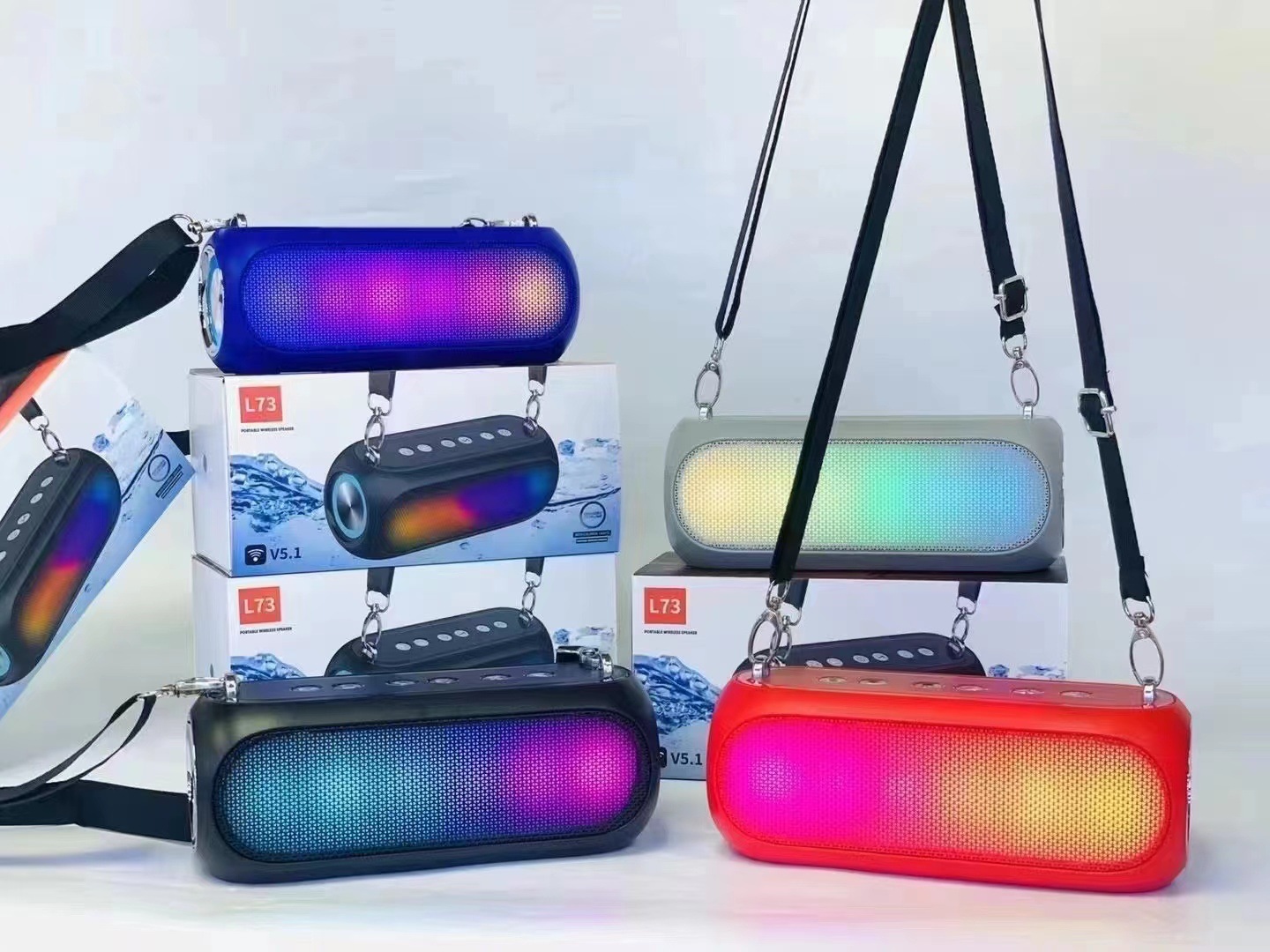 新款肩带蓝牙音响户外运动便携带RGB战鼓重低音防水无线音响L73