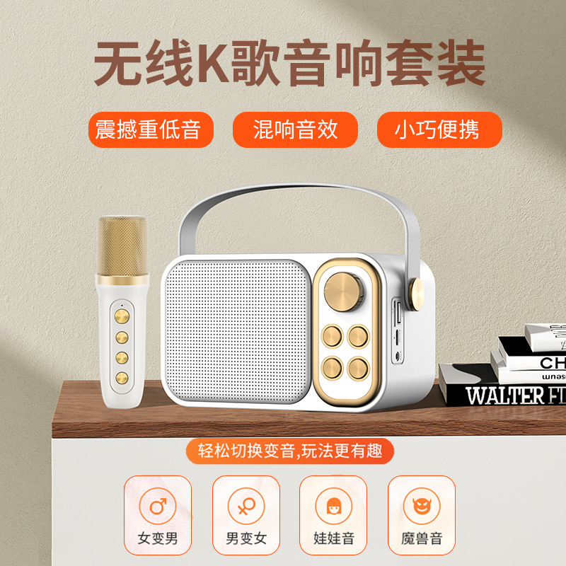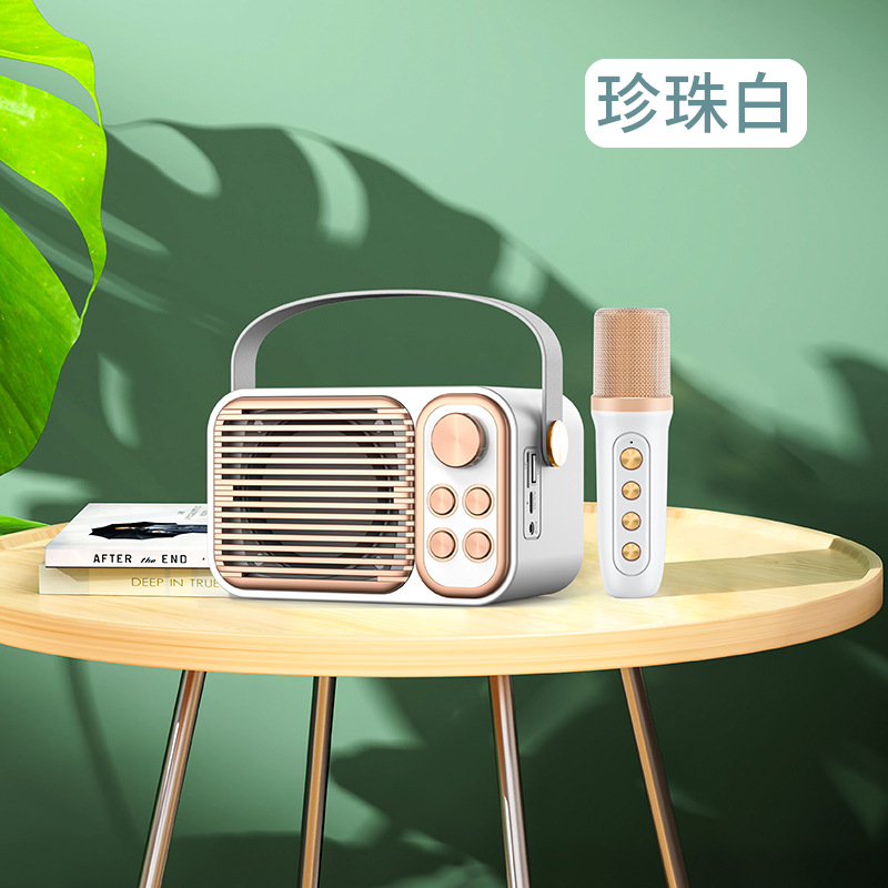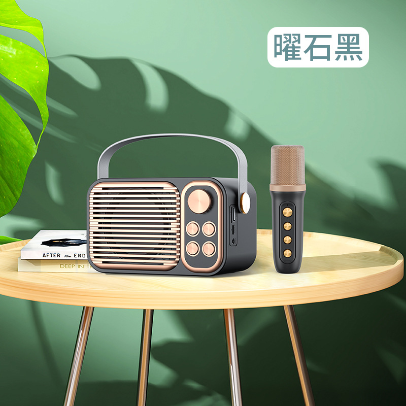 新款麦克风蓝牙音箱复古造型手提便携迷你居家K歌宝户外蓝牙音响