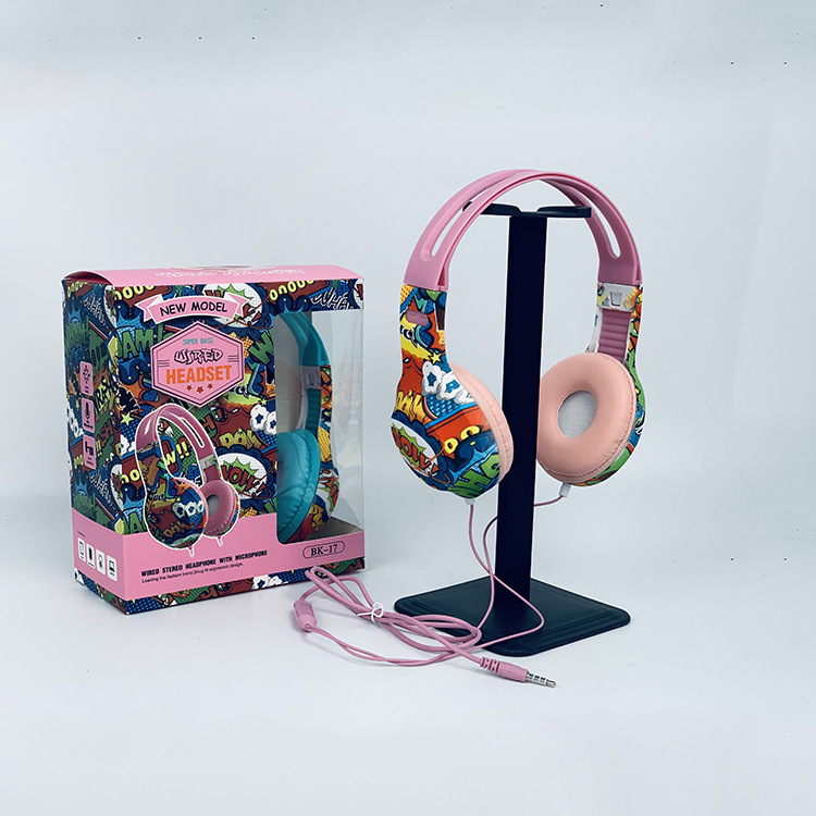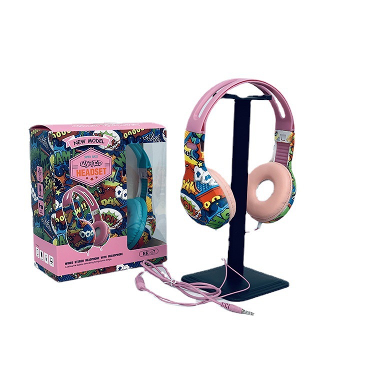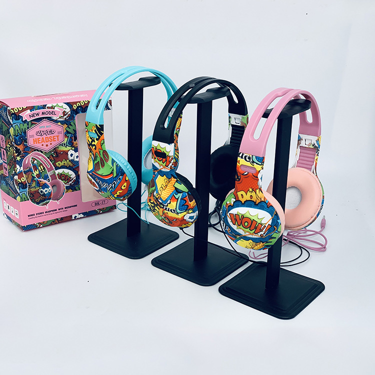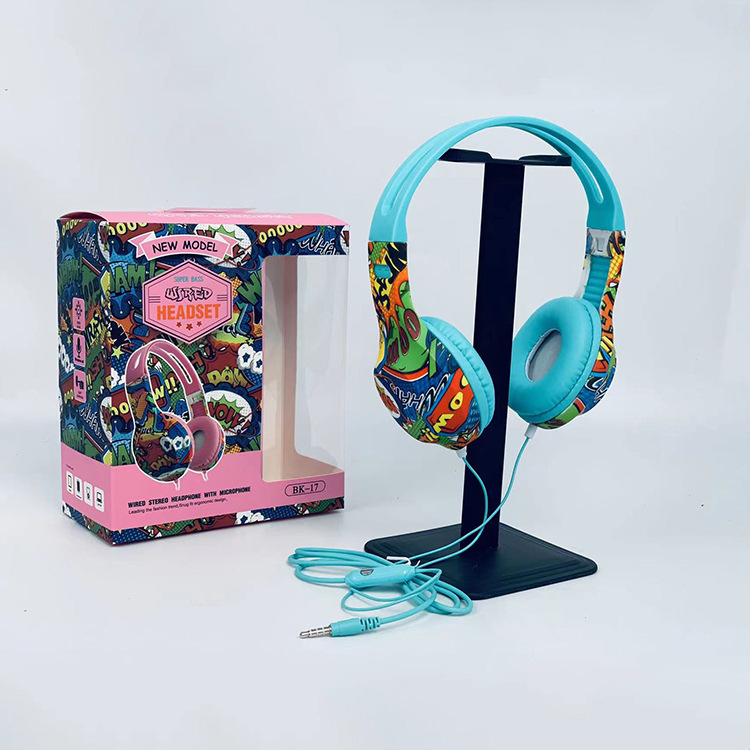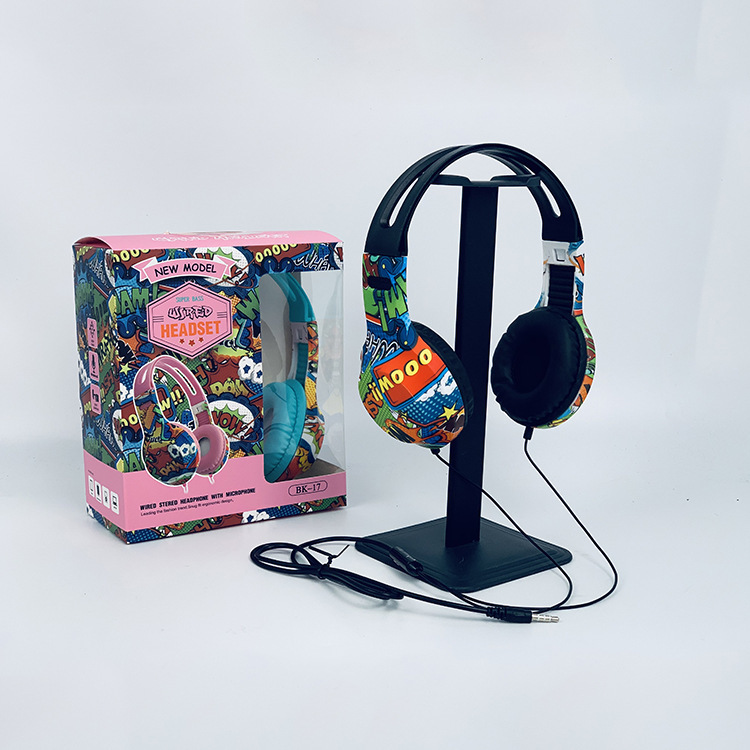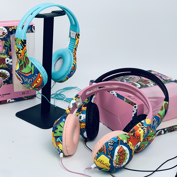 新款BK17头戴式连线涂鸦迷彩色带麦手机线控时尚礼品耳机厂家直销